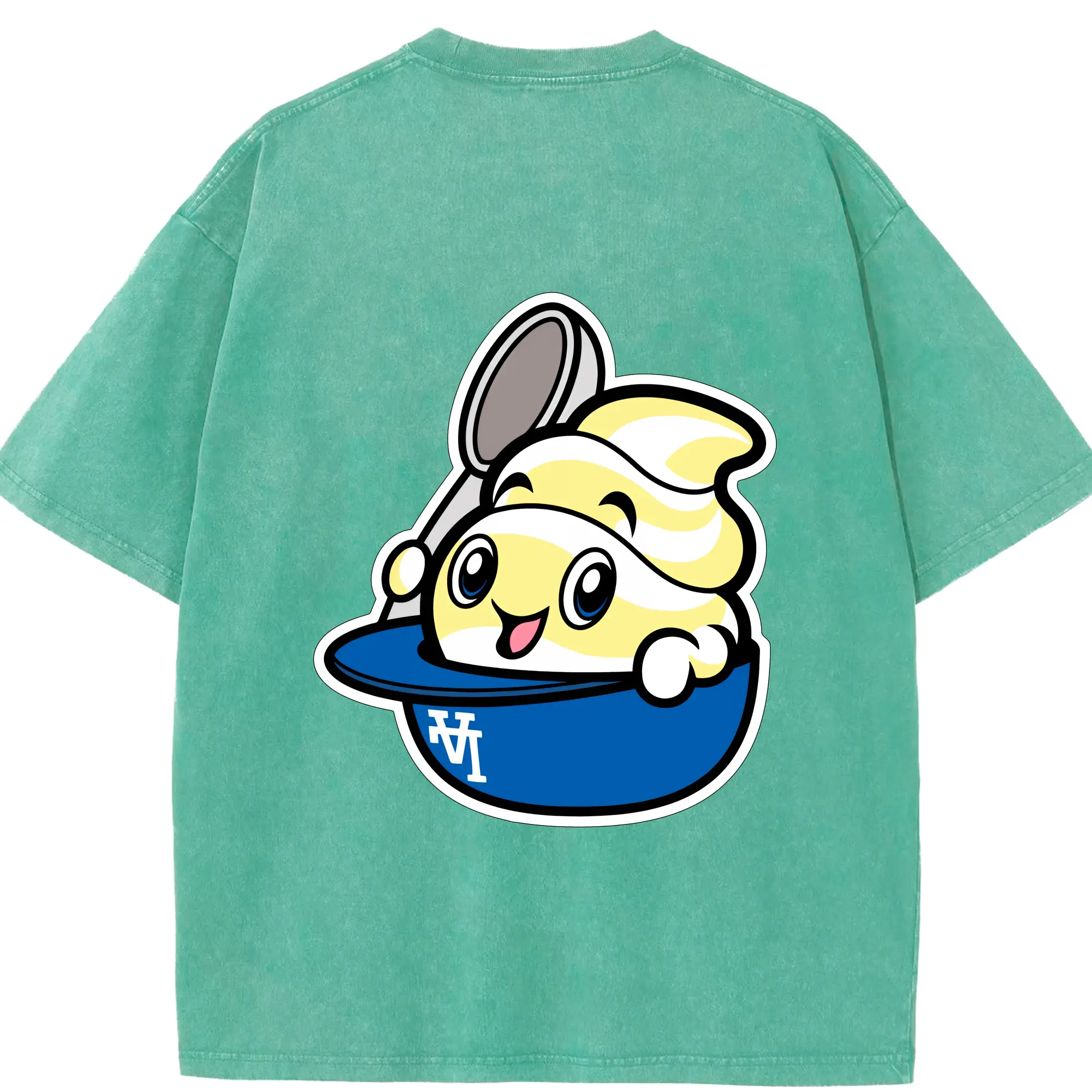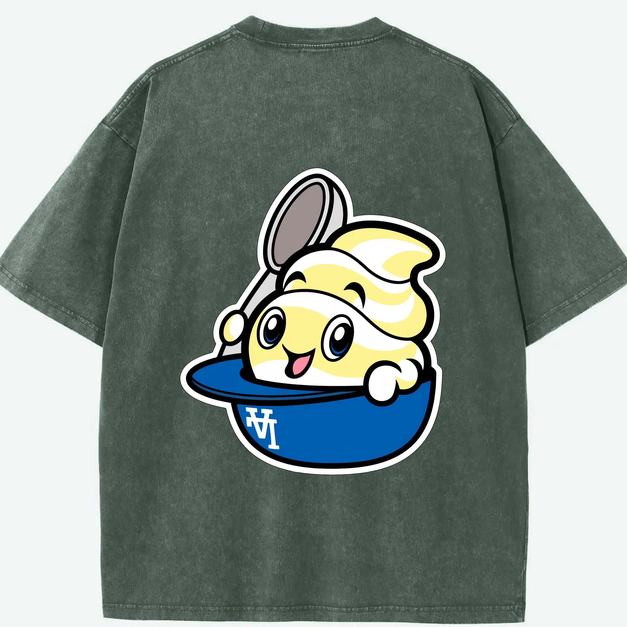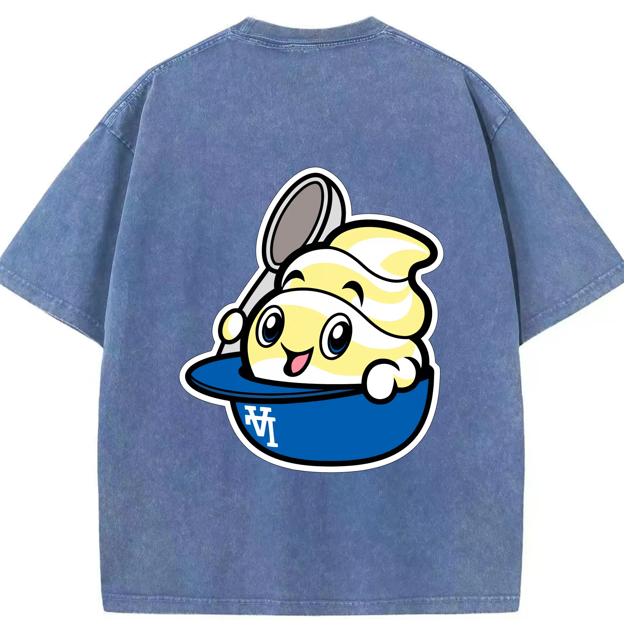 Dole Whip Dodgers Los Angeles Baseball - Washed Vintage 230g Cotton Oversized T-Shirt With Back Heat Transfer Print – Soft, Lightweight & Stylish – Comfortable Casual Wear For Sports & Everyday Use