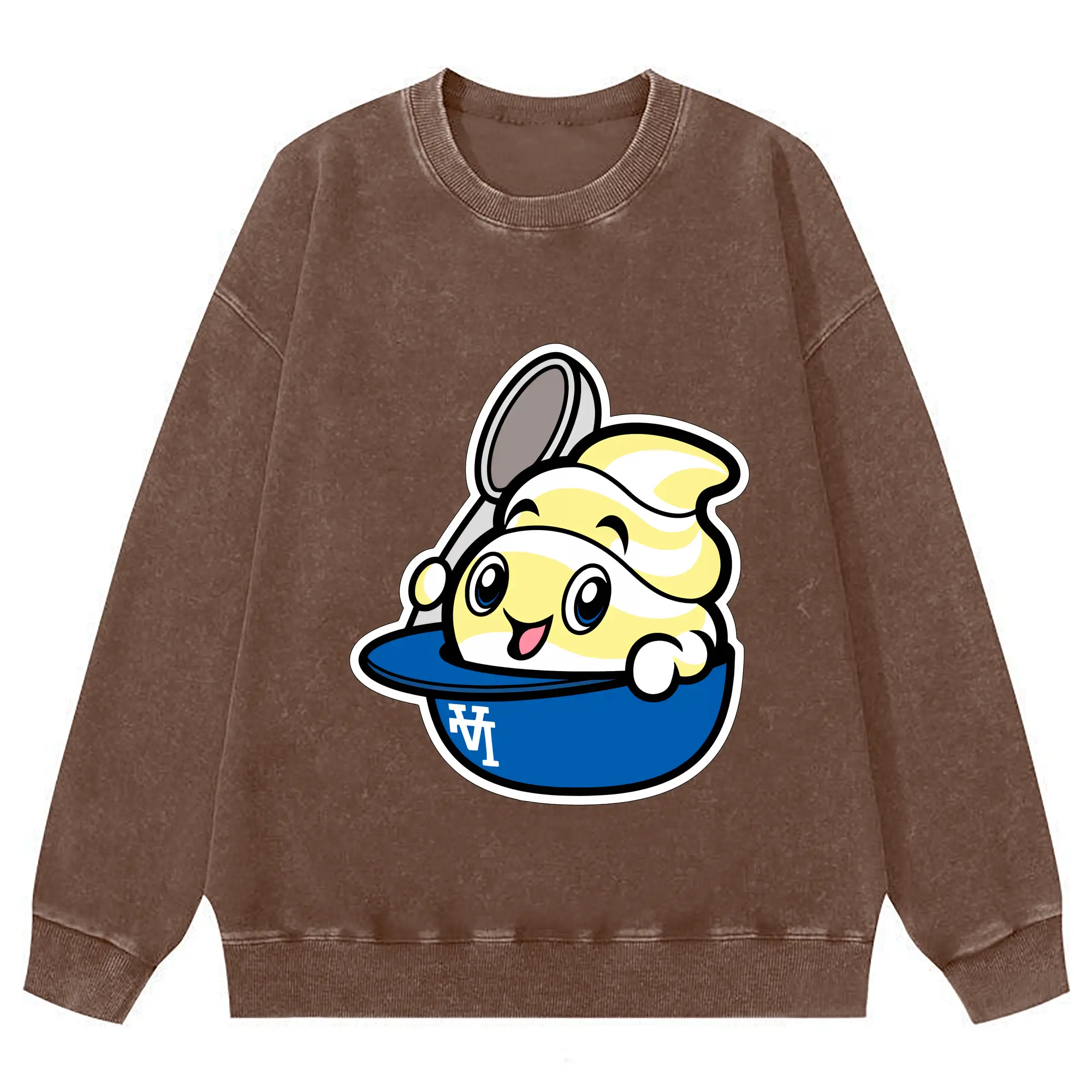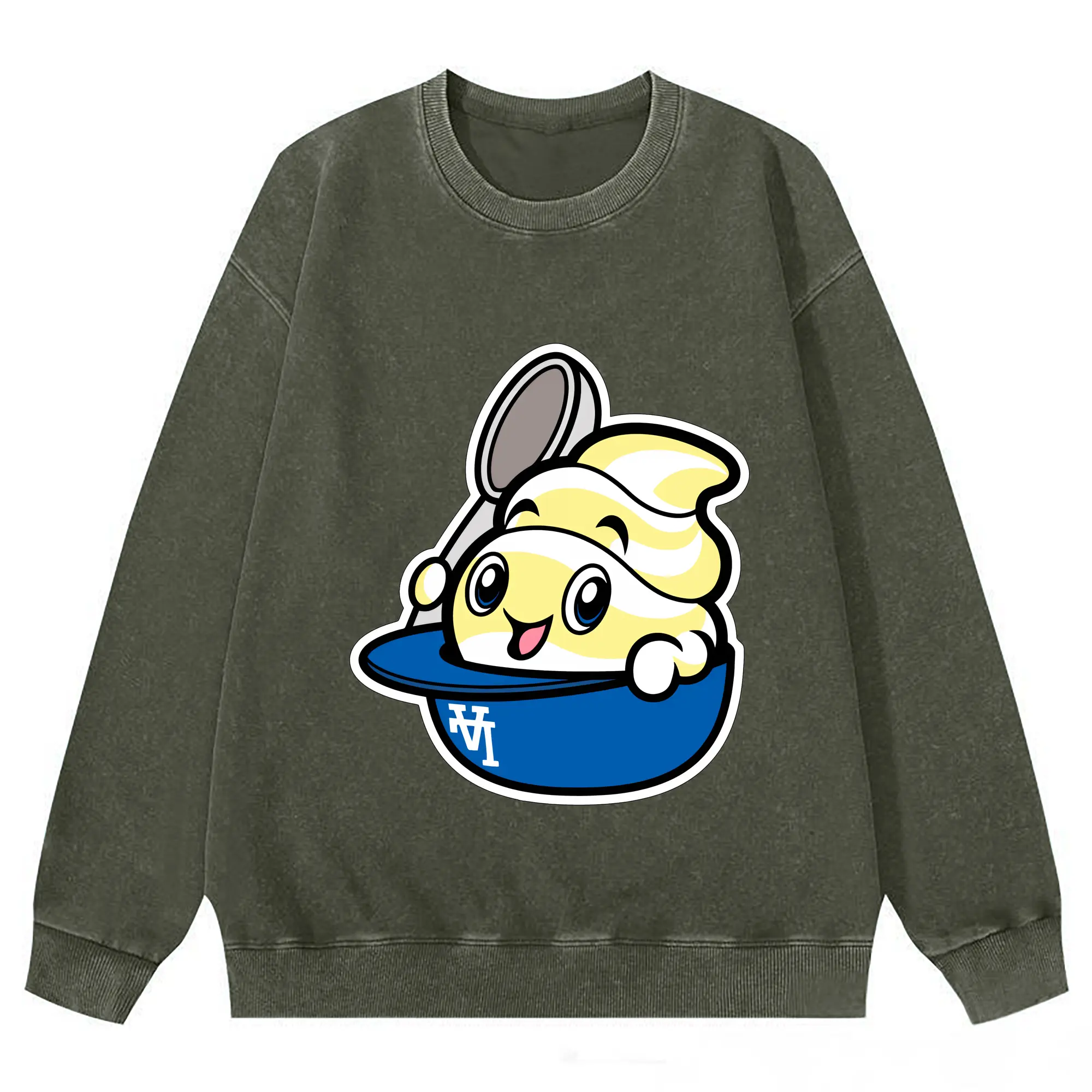 Dole Whip Dodgers Los Angeles Baseball - Washed Wax-Dyed Vintage Crewneck Sweatshirt – 80% Cotton, 20% Polyester – Soft, Durable & Stylish – Ideal For Sports, Casual & Everyday Wear