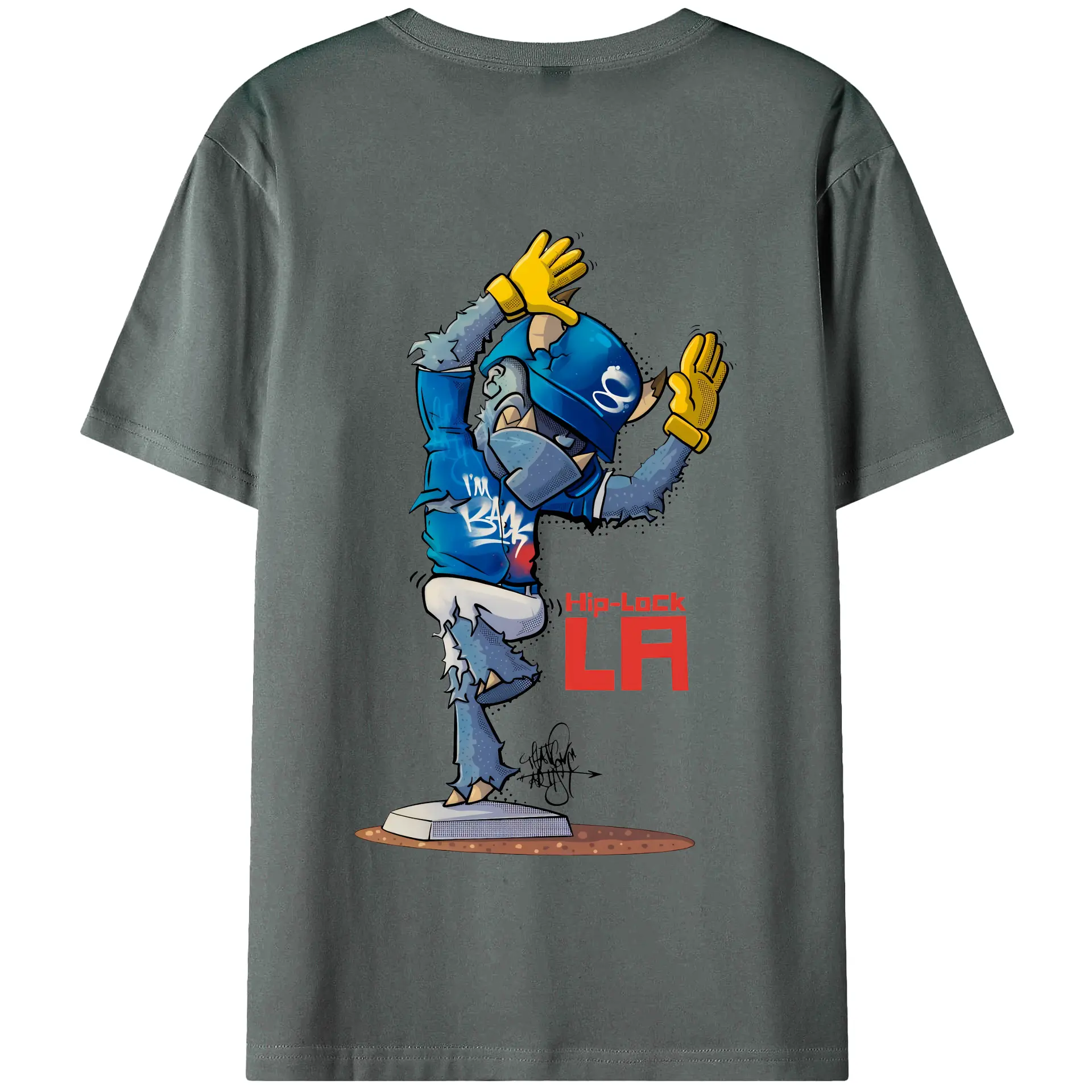 Funny Los Angeles Dodgers Monster Celebration Hip Lock - 180g Combed Cotton T-Shirt With Back Heat Transfer Print – Soft, Lightweight, Fitted Design – Stylish Casual Wear For Sports & Everyday Use