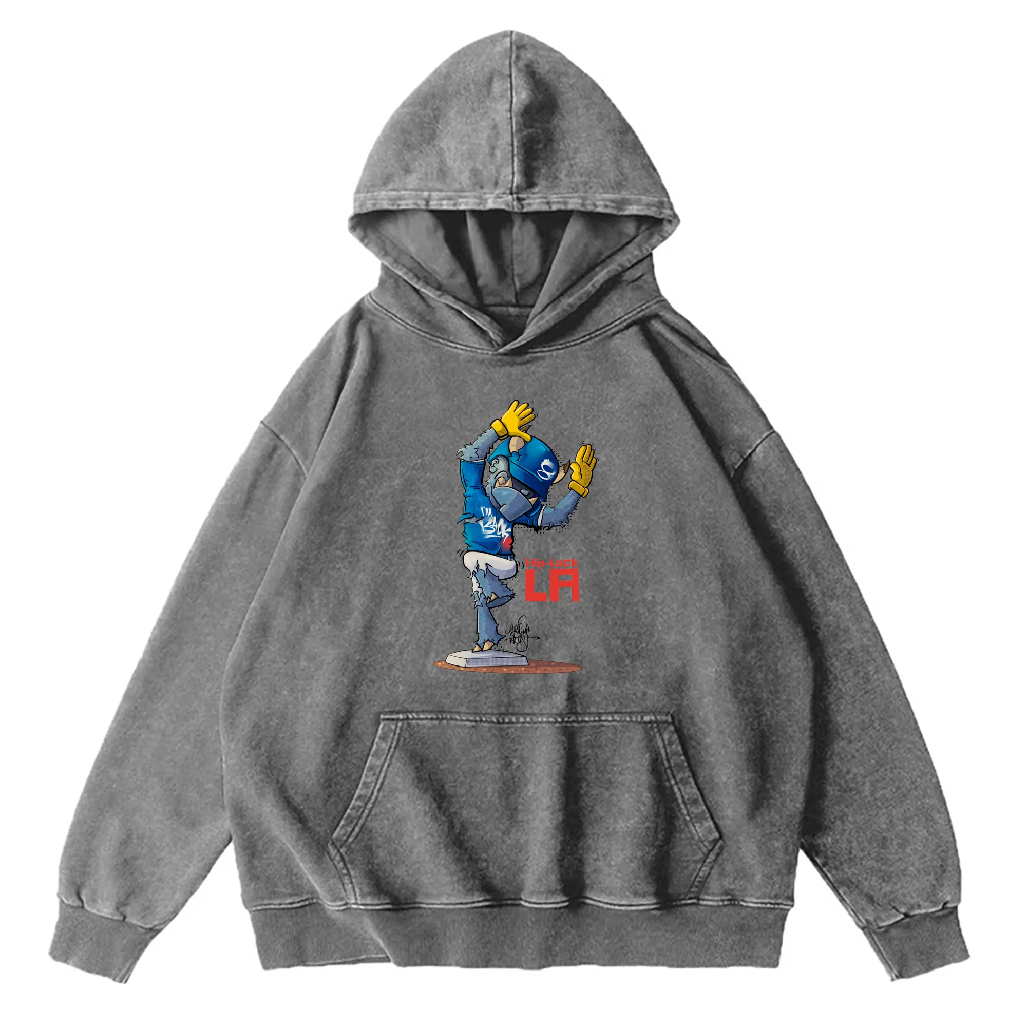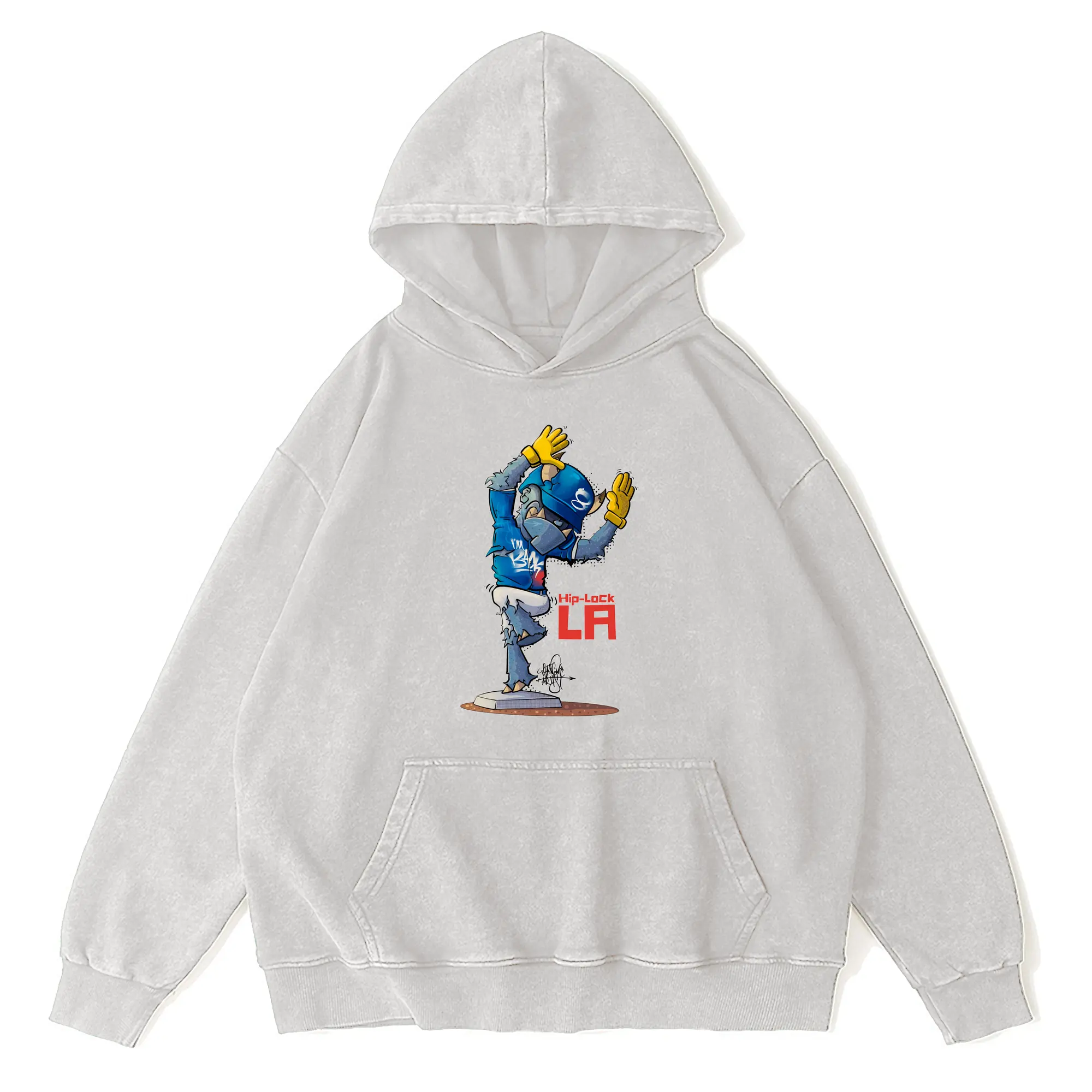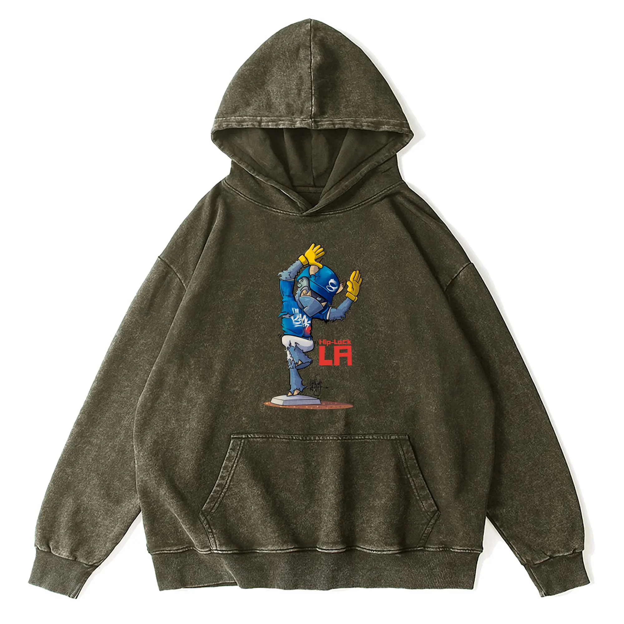 Funny Los Angeles Dodgers Monster Celebration Hip Lock - Vintage Washed Wax-Dyed Hoodie – 80% Cotton, 20% Polyester – Soft, Durable & Stylish – Perfect For Sports, Casual & Everyday Wear