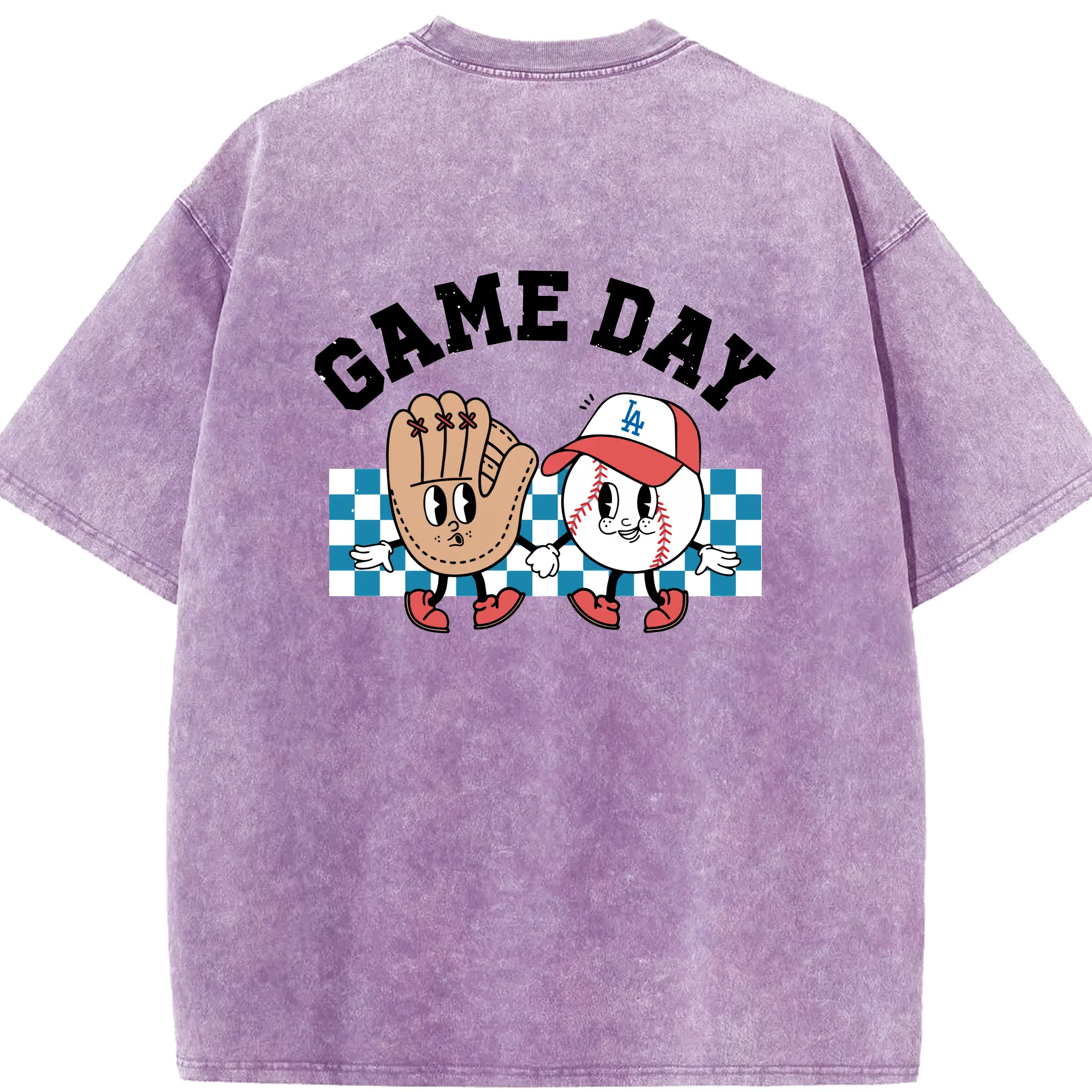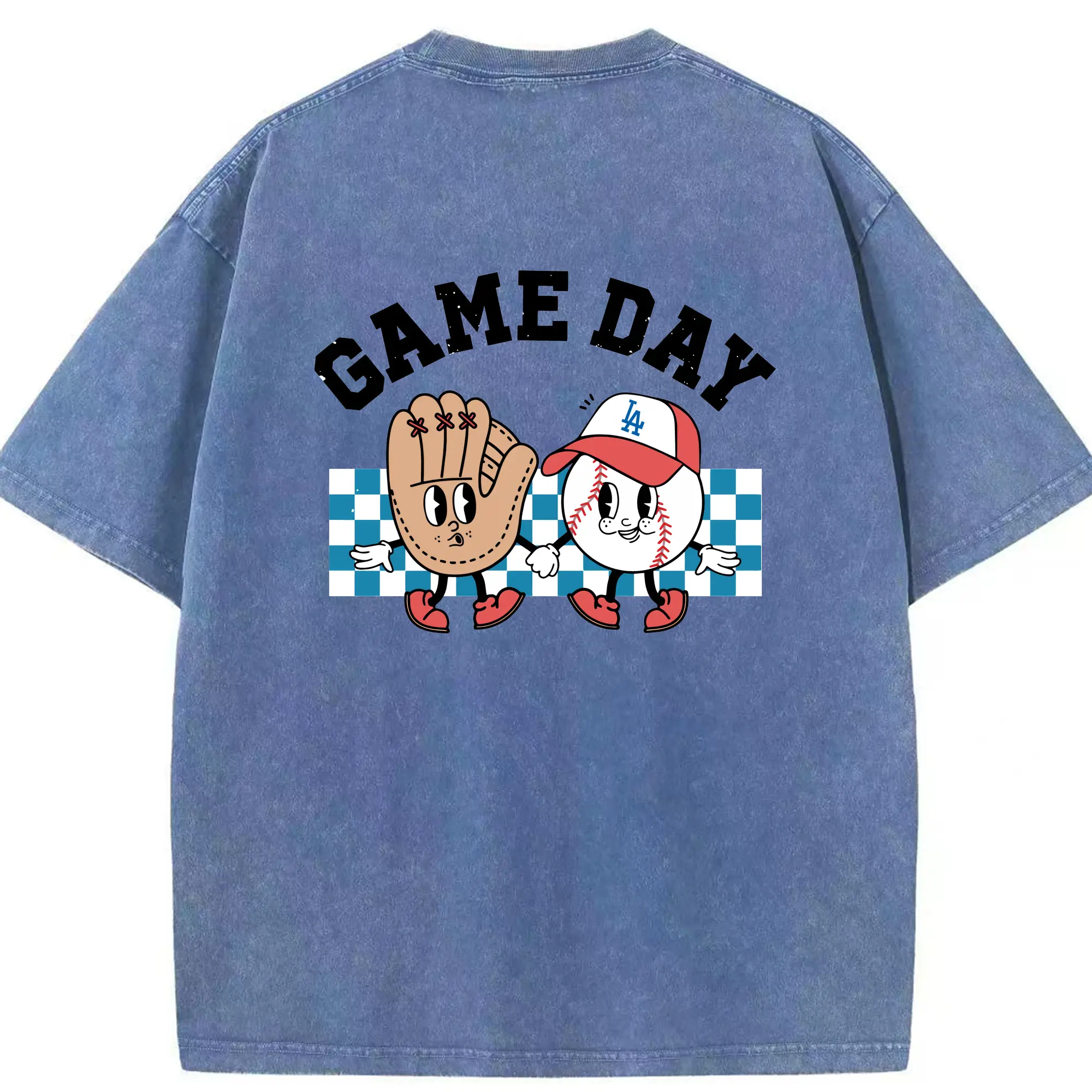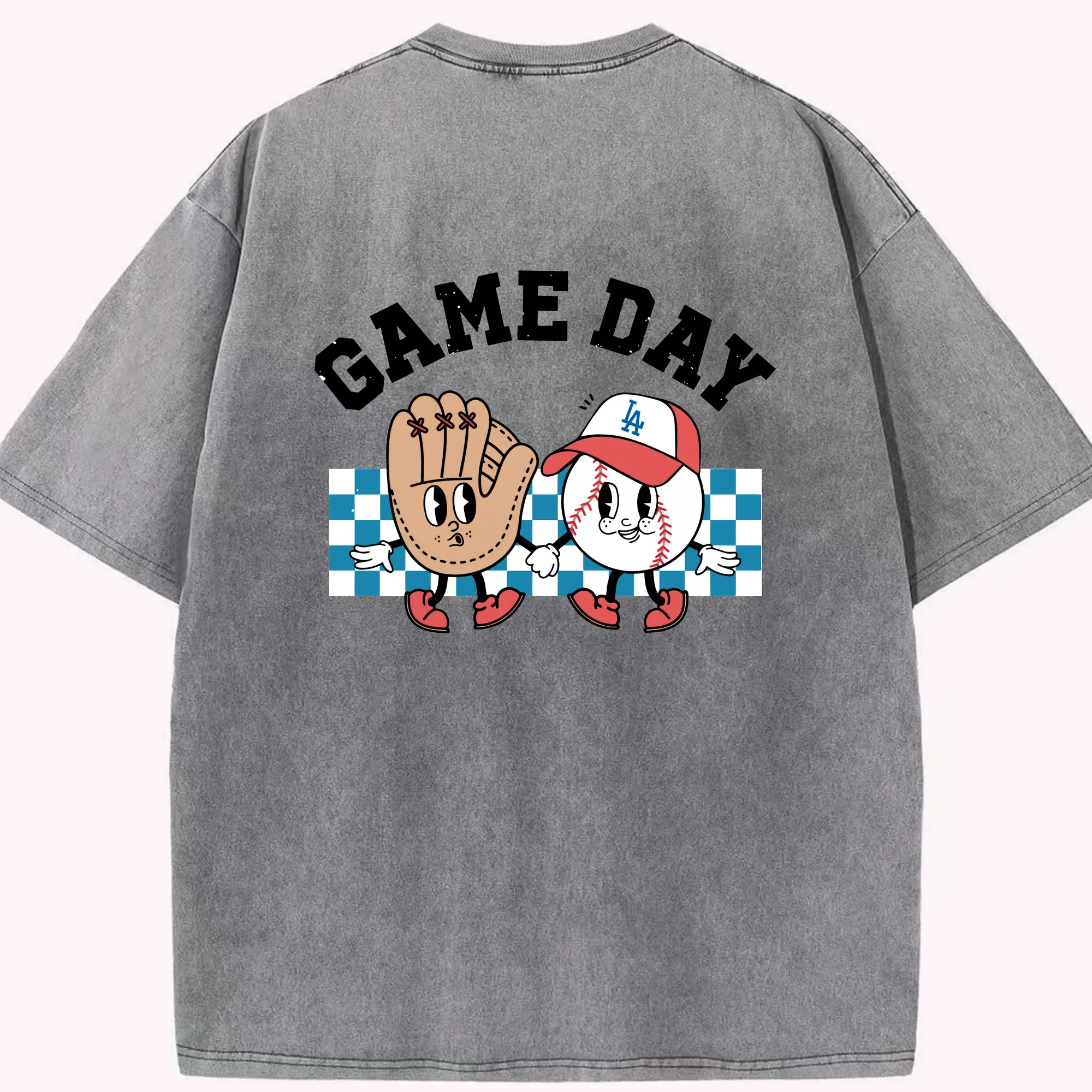 Game Day Los Angeles Dodgers Baseball - Washed Vintage 230g Cotton Oversized T-Shirt With Back Heat Transfer Print – Soft, Lightweight & Stylish – Comfortable Casual Wear For Sports & Everyday Use