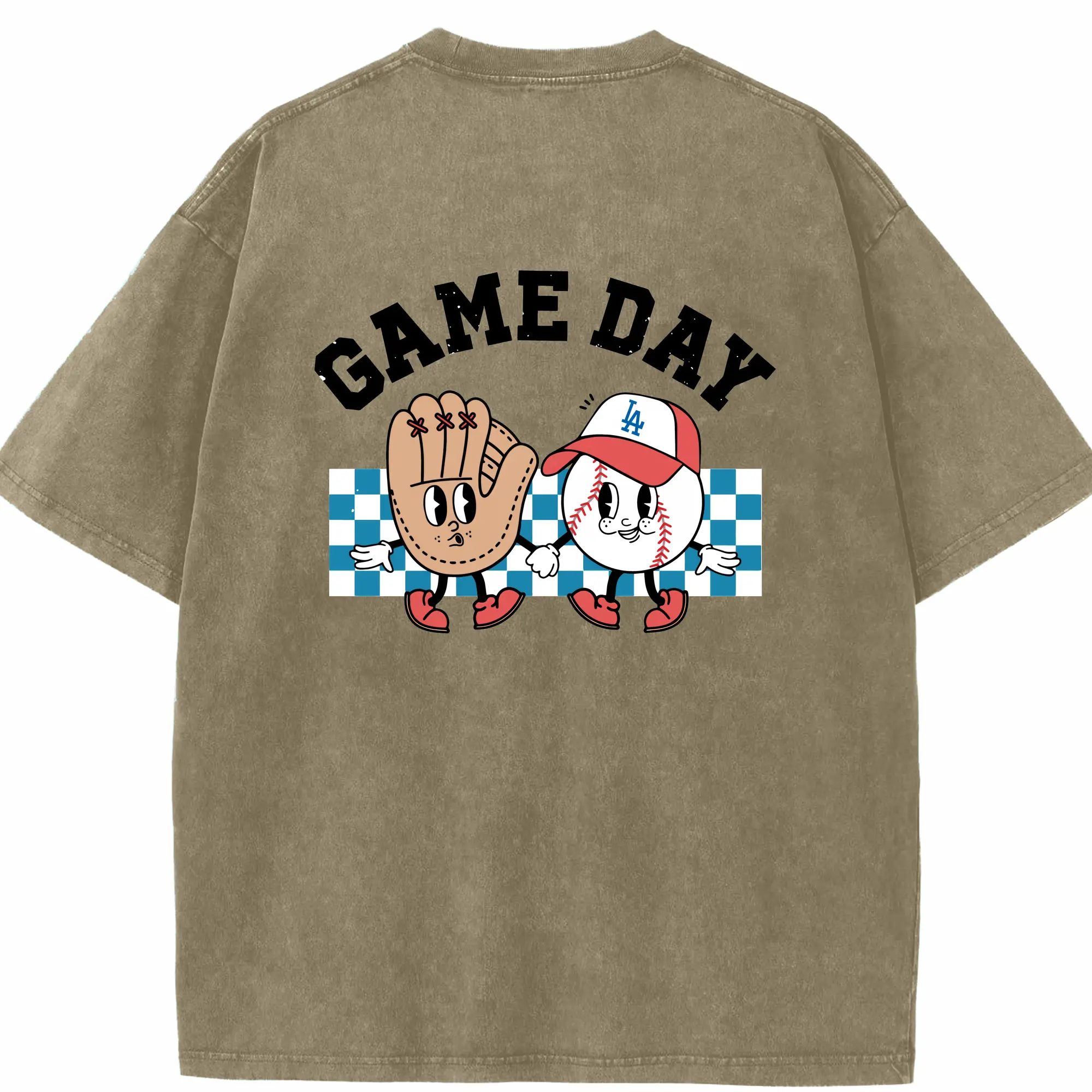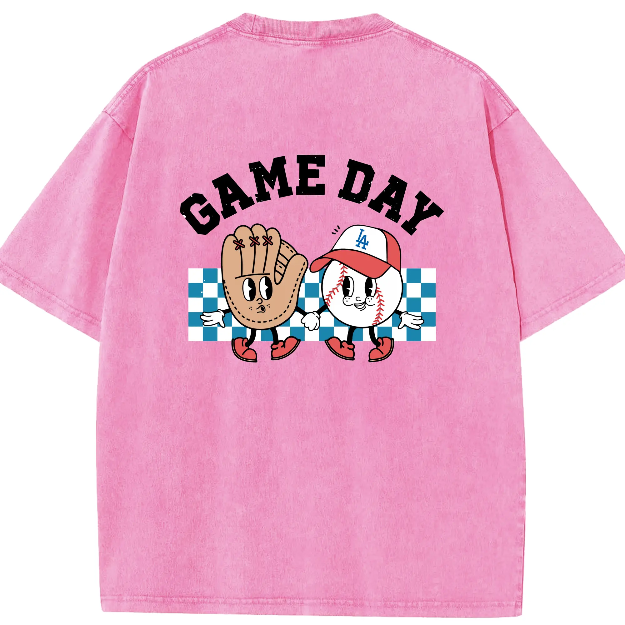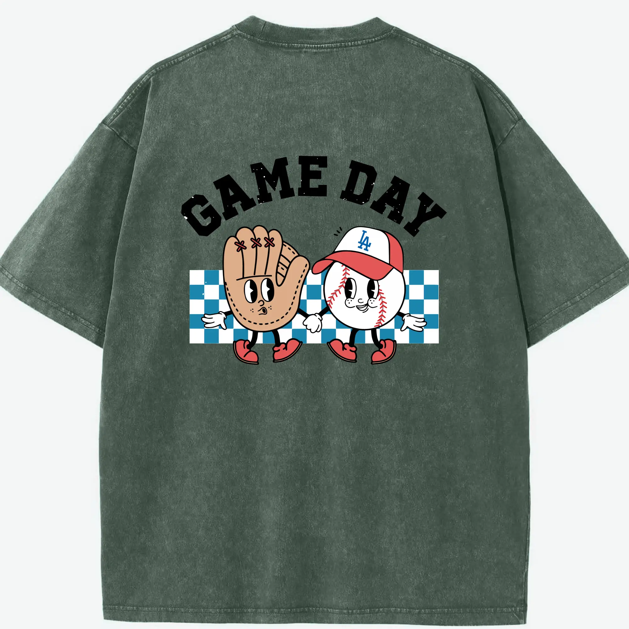 Game Day Los Angeles Dodgers Baseball - Washed Vintage 230g Cotton Oversized T-Shirt With Back Heat Transfer Print – Soft, Lightweight & Stylish – Comfortable Casual Wear For Sports & Everyday Use