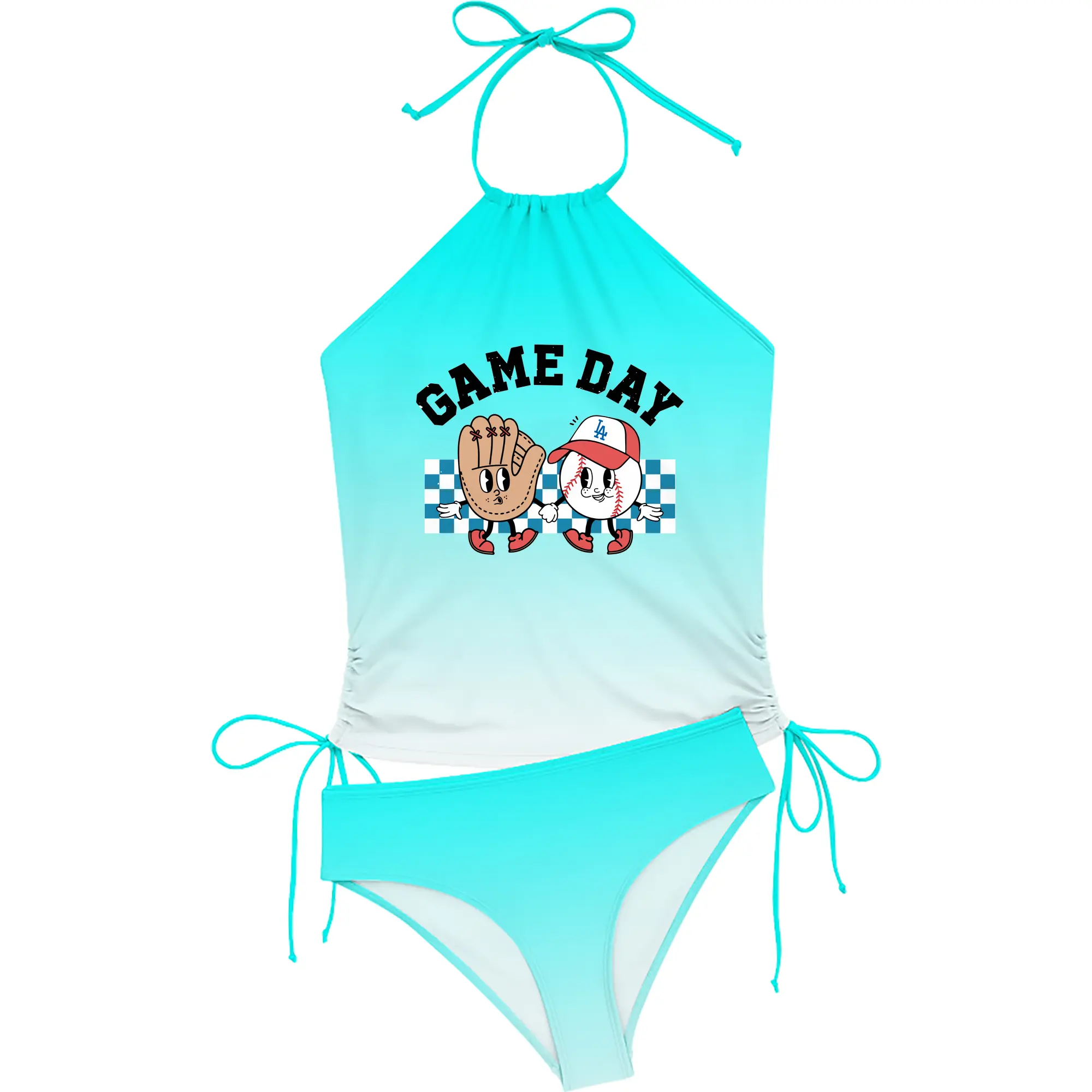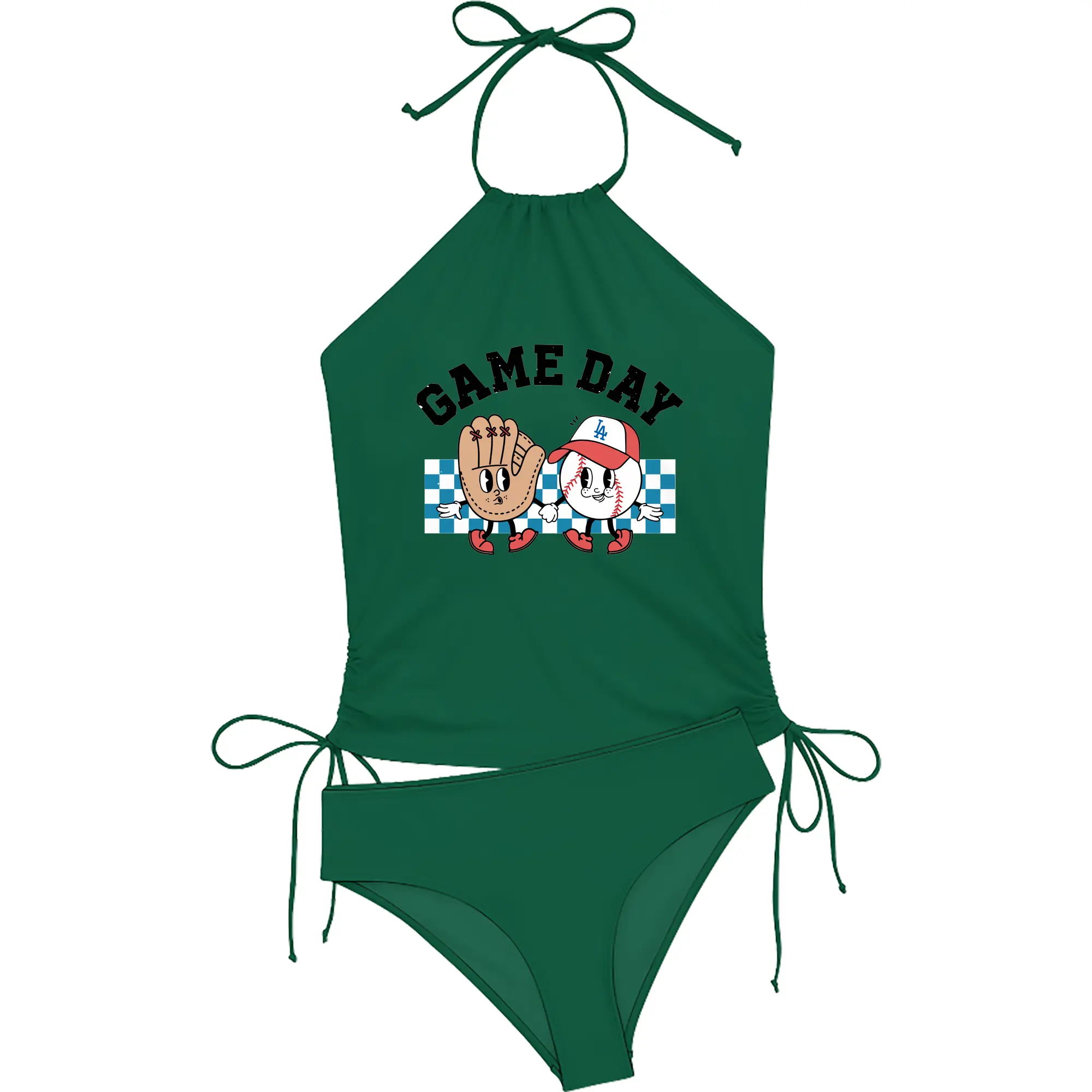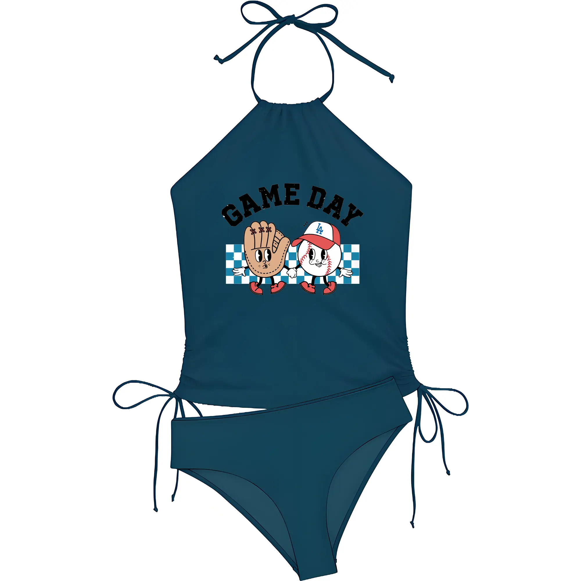 Game Day Los Angeles Dodgers Baseball - Women's Heat Transfer Printed Two-Piece Bikini Set – Sexy One-Shoulder Top & Triangle Bottom, Soft Nylon-Spandex – Perfect for Beach, Pool & Vacation