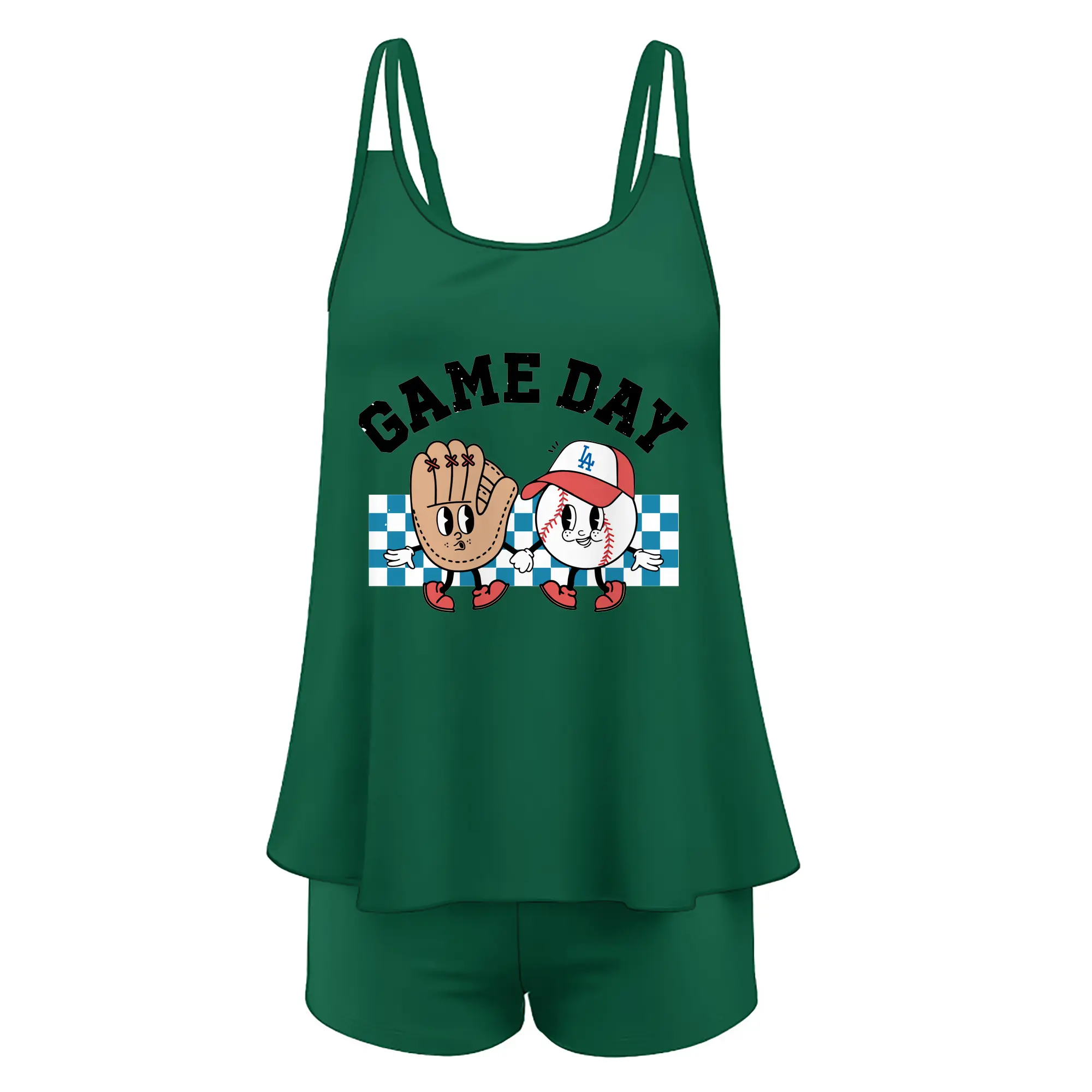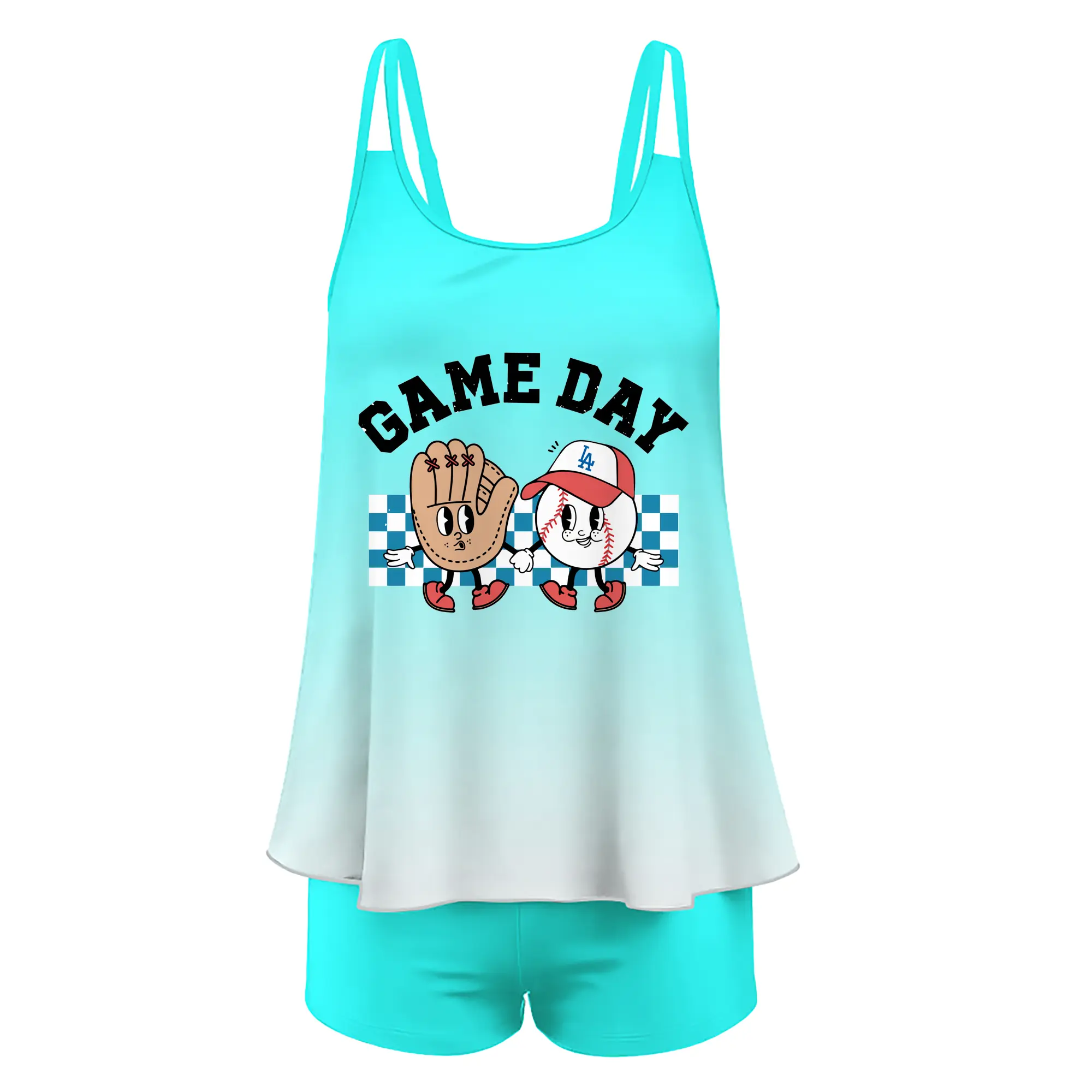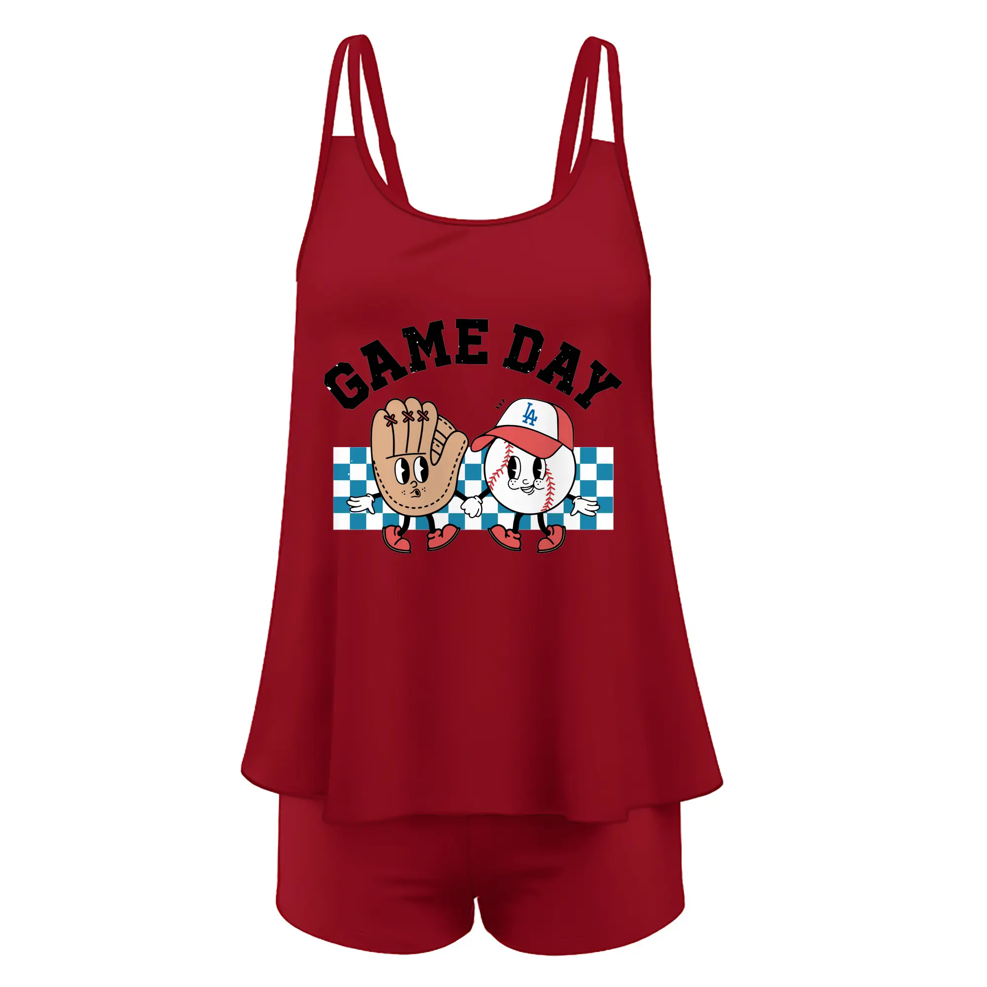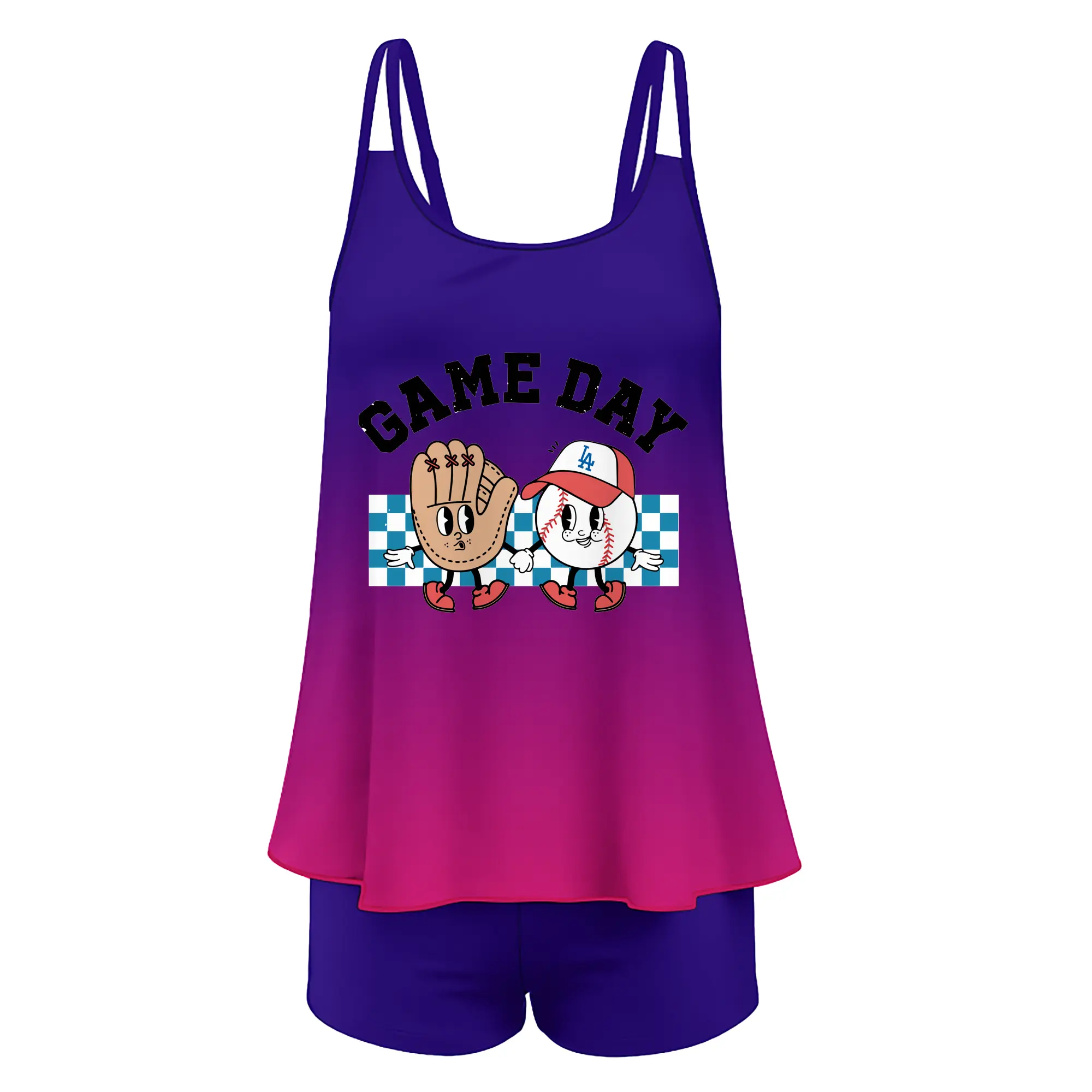 Game Day Los Angeles Dodgers Baseball - Women’s Heat Transfer Printed Two-Piece Swimsuit Set – Sexy Double Strap Bandeau Top & Boyshort Bottoms, Soft Nylon-Spandex – Perfect for Beach, Pool & Vacation