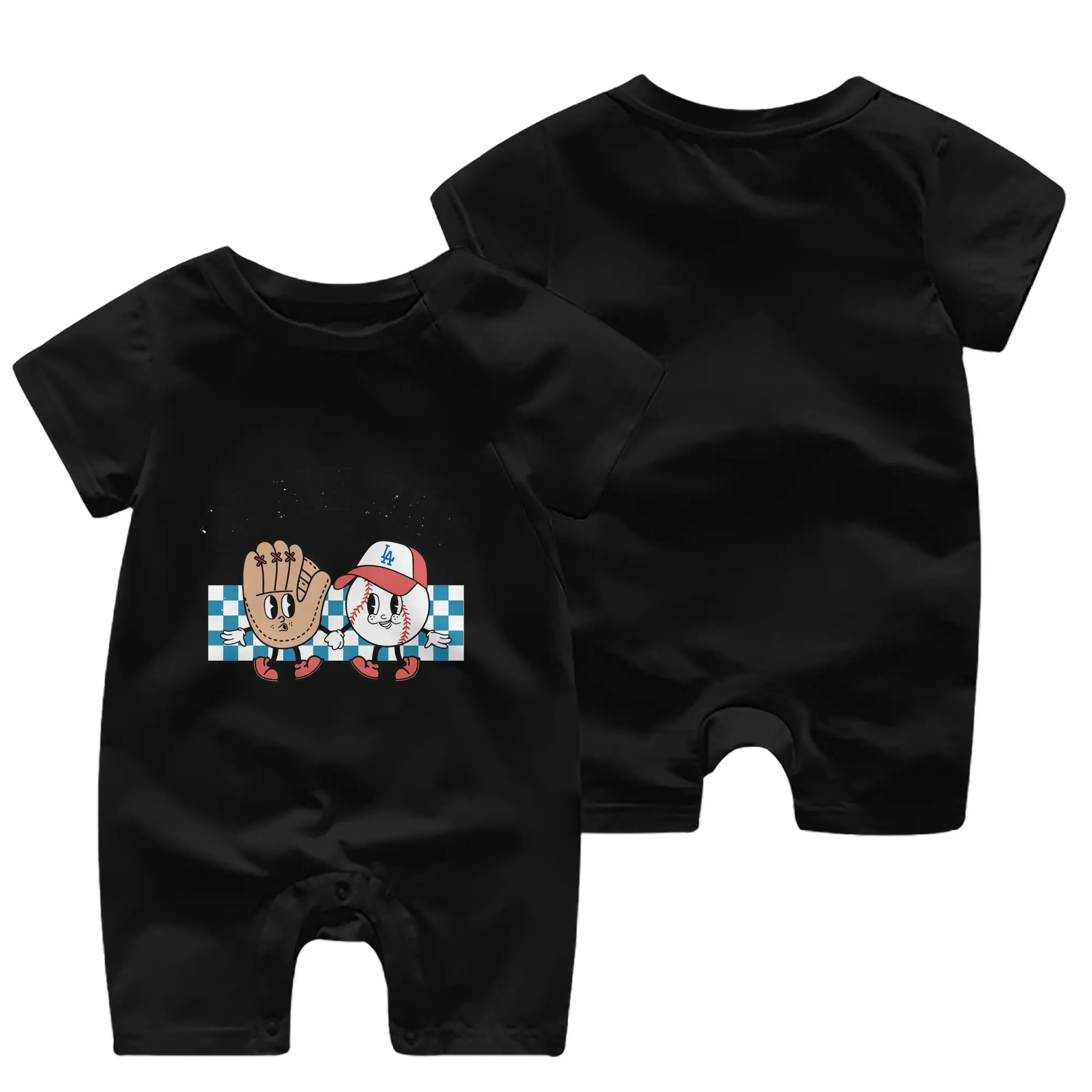 Game Day Los Angeles Dodgers Baseball - Baby Short Sleeve Onesie – 100% Cotton Soft & Breathable Digital Print Romper – Double-Sided Print, Snap Closure For Easy Diaper Changes – Comfortable For Boys & Girls
