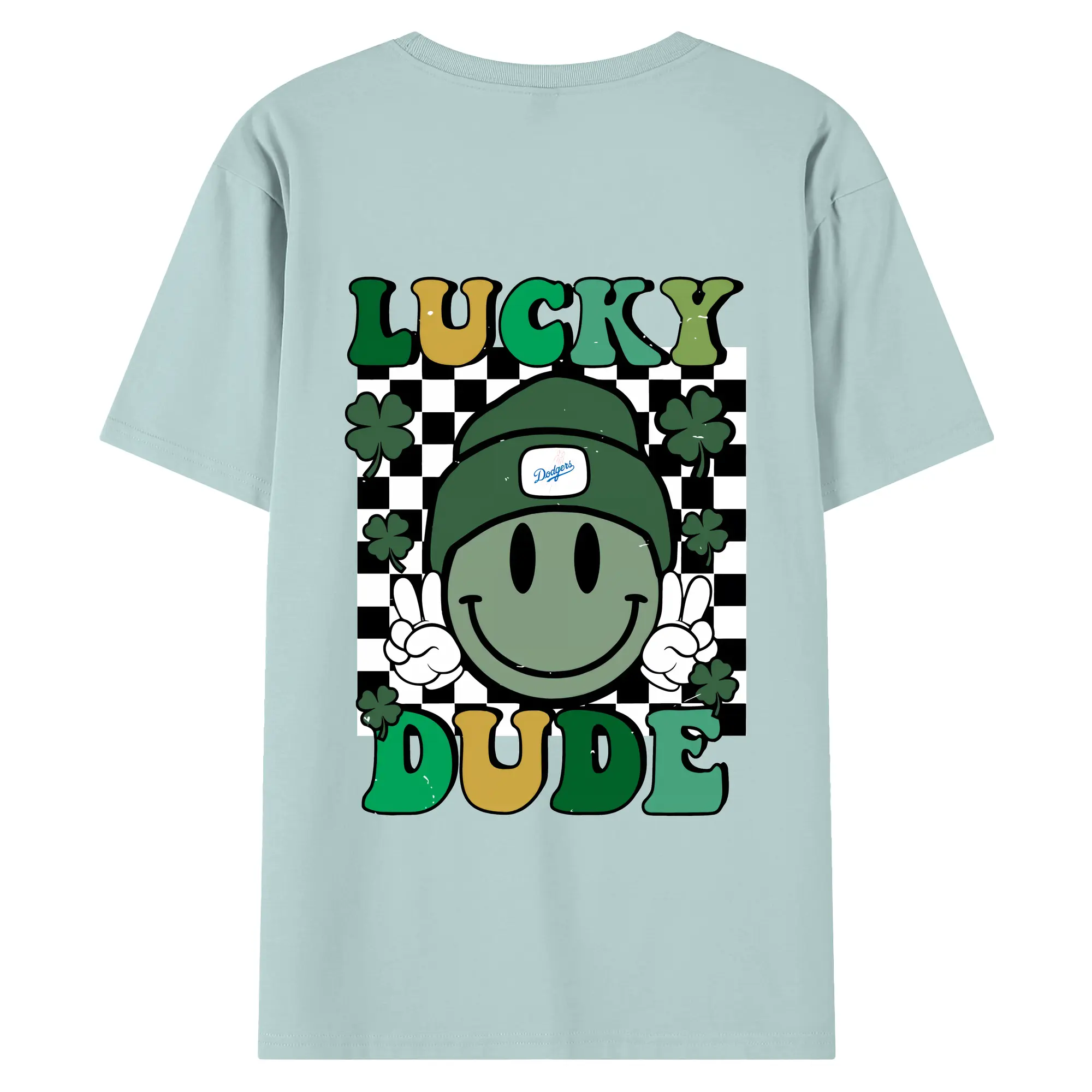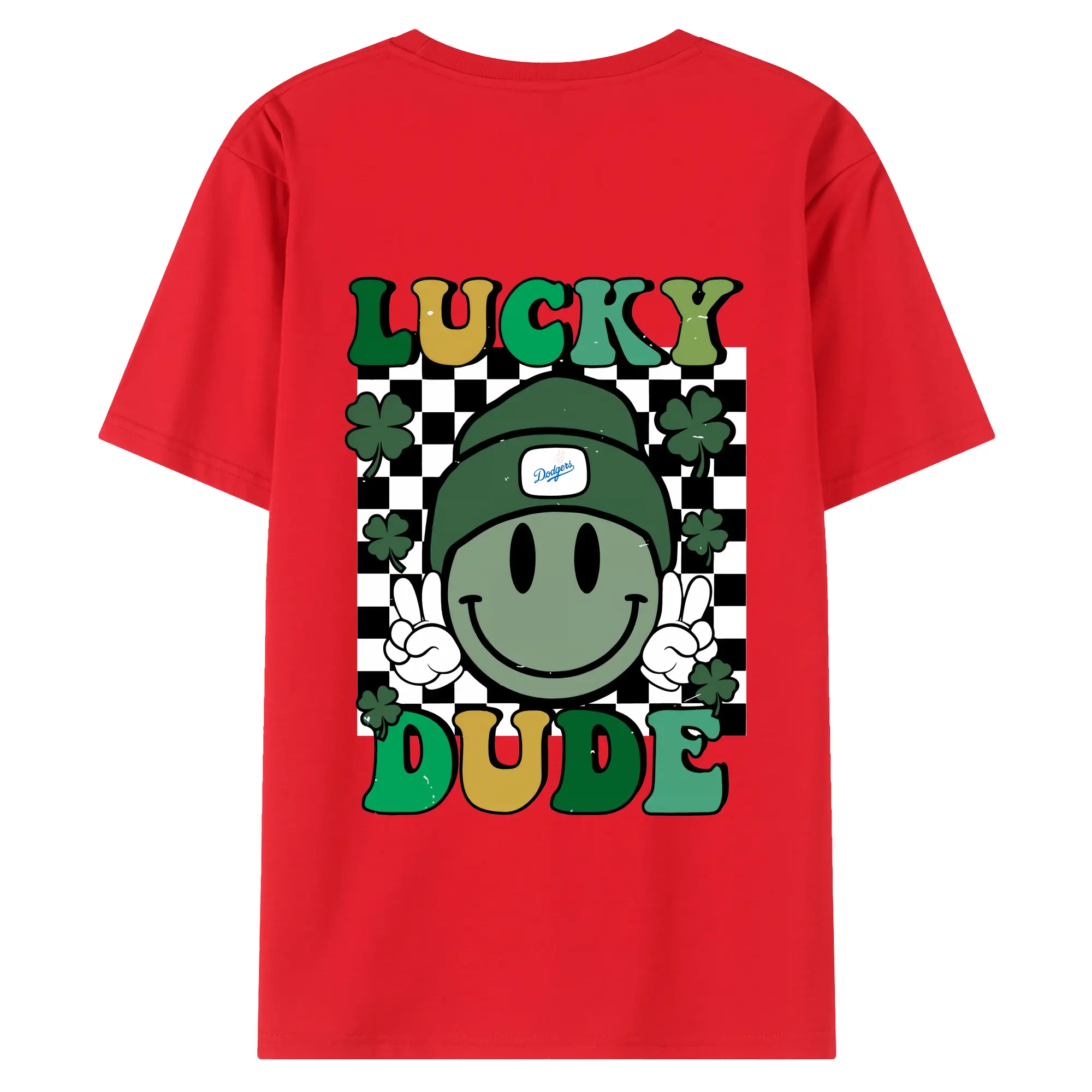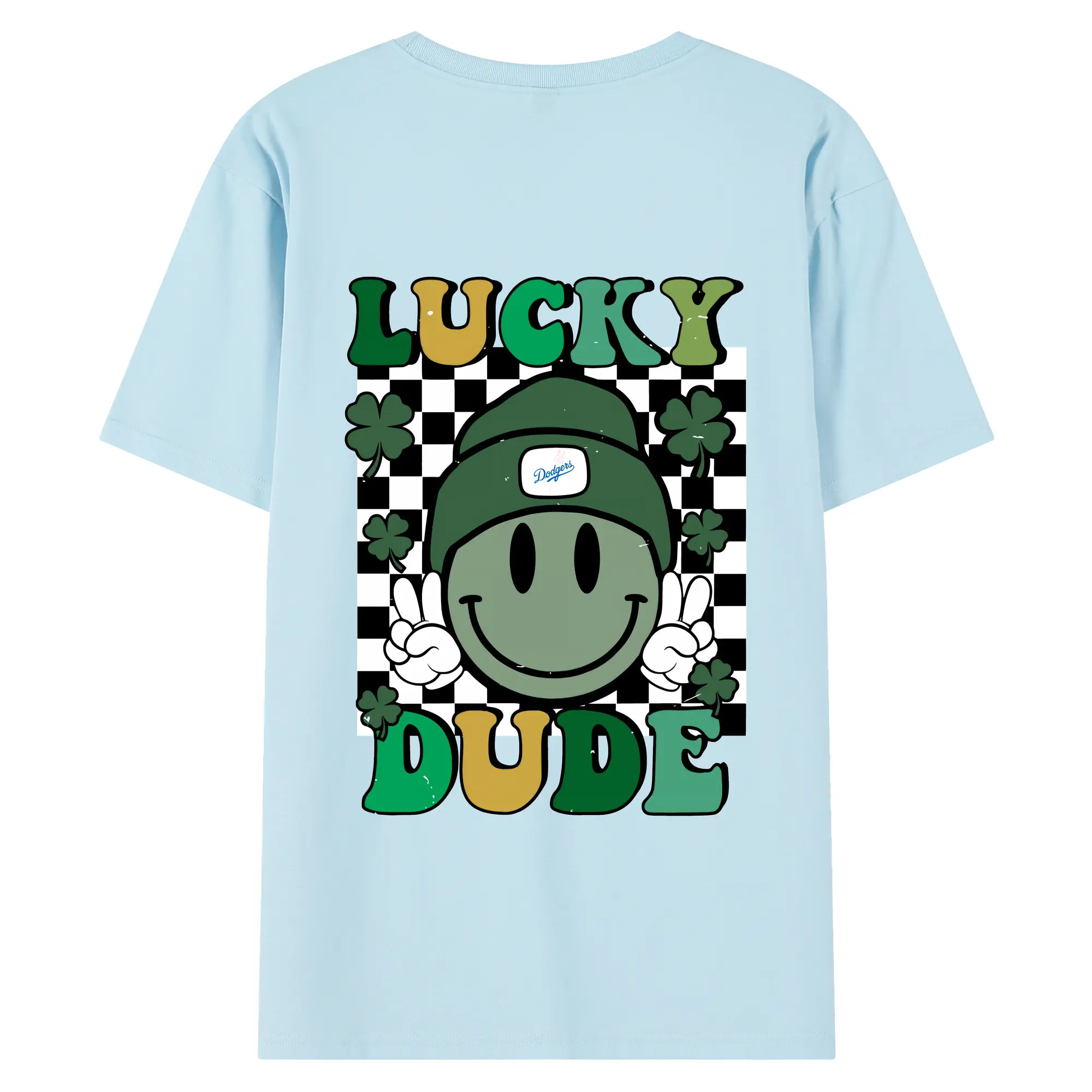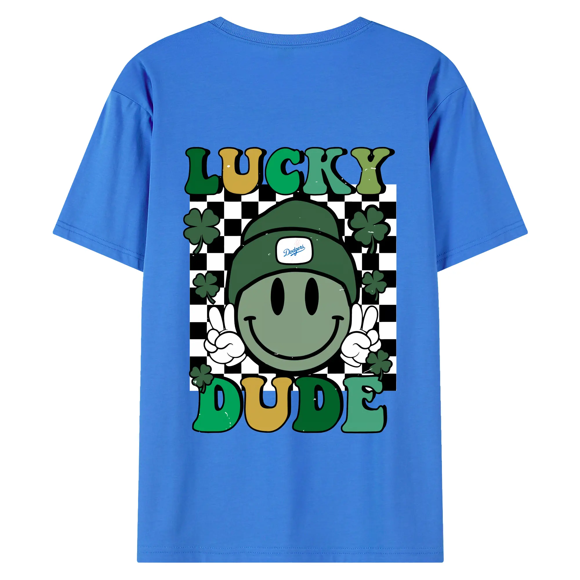 Happy Face Lucky Dude Los Angeles Dodgers - 180g Combed Cotton T-Shirt With Back Heat Transfer Print – Soft, Lightweight, Fitted Design – Stylish Casual Wear For Sports & Everyday Use