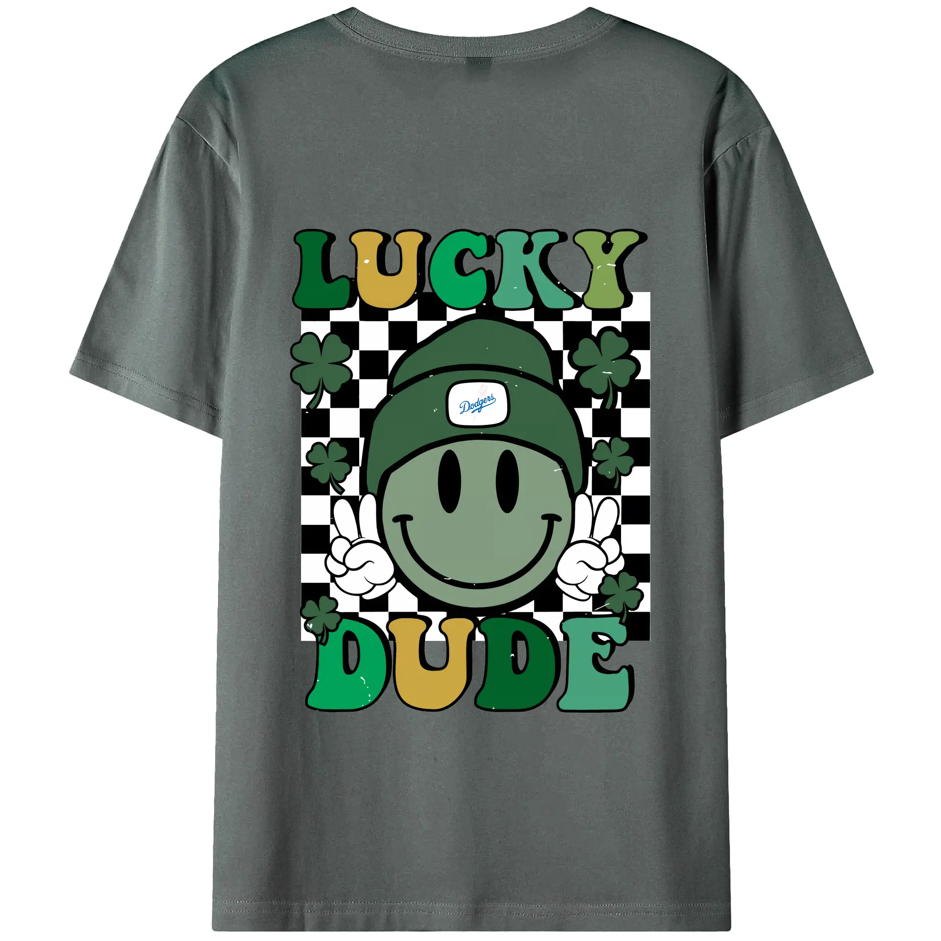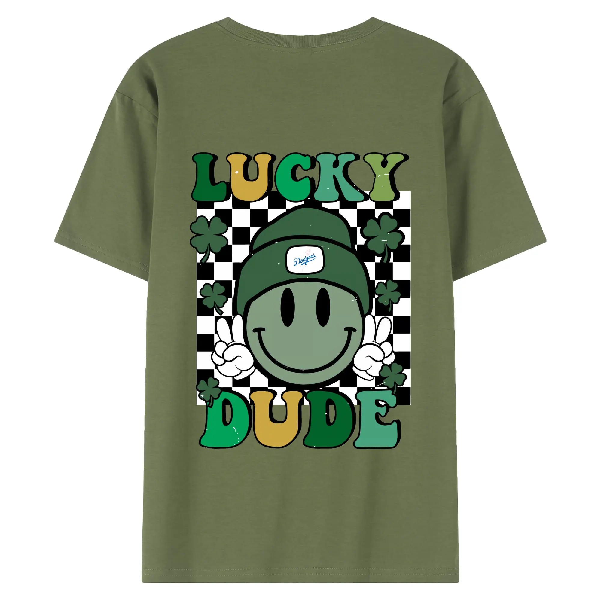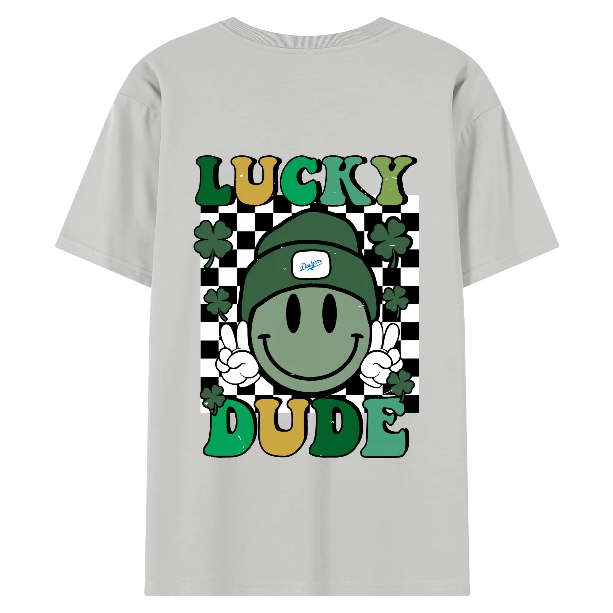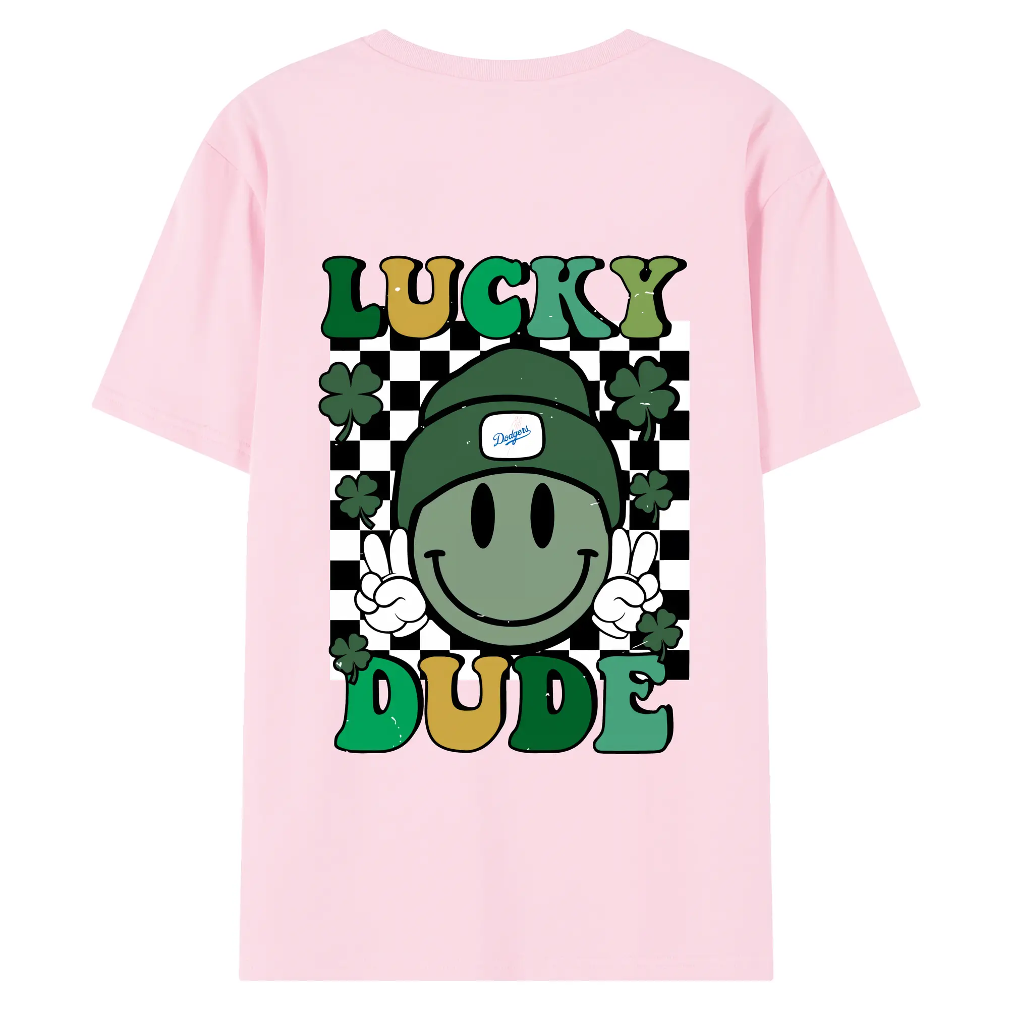 Happy Face Lucky Dude Los Angeles Dodgers - 180g Combed Cotton T-Shirt With Back Heat Transfer Print – Soft, Lightweight, Fitted Design – Stylish Casual Wear For Sports & Everyday Use