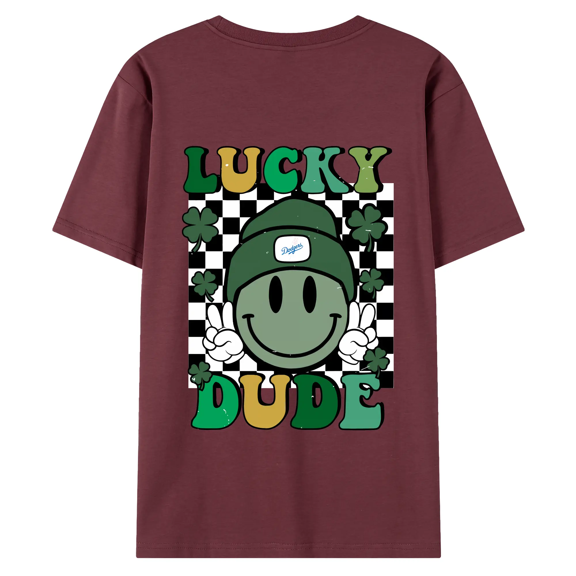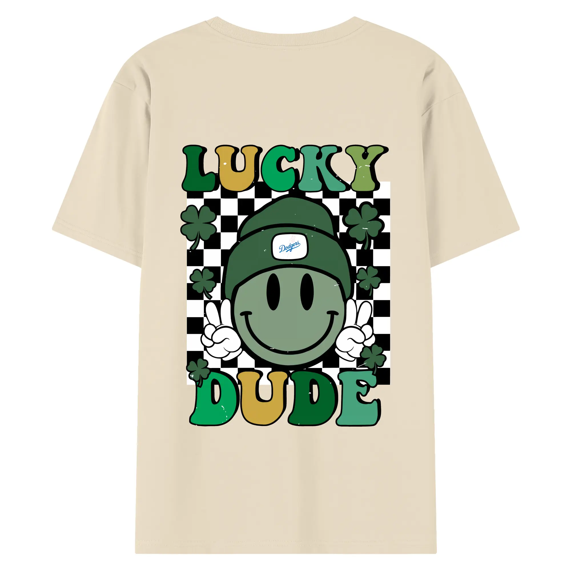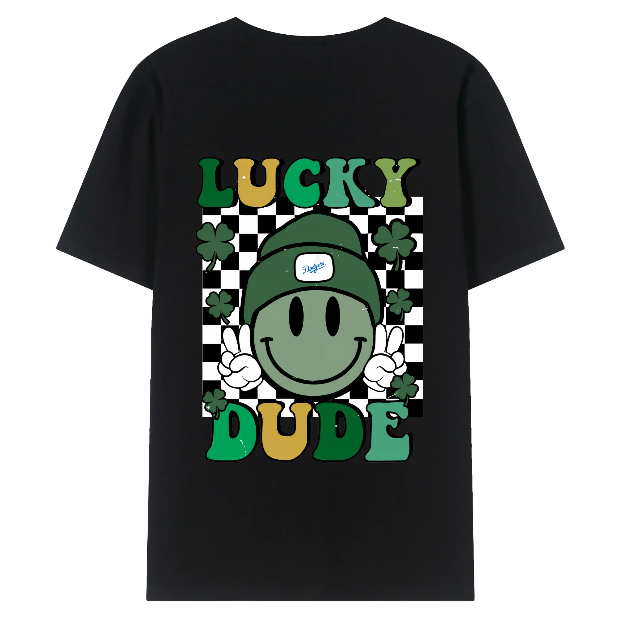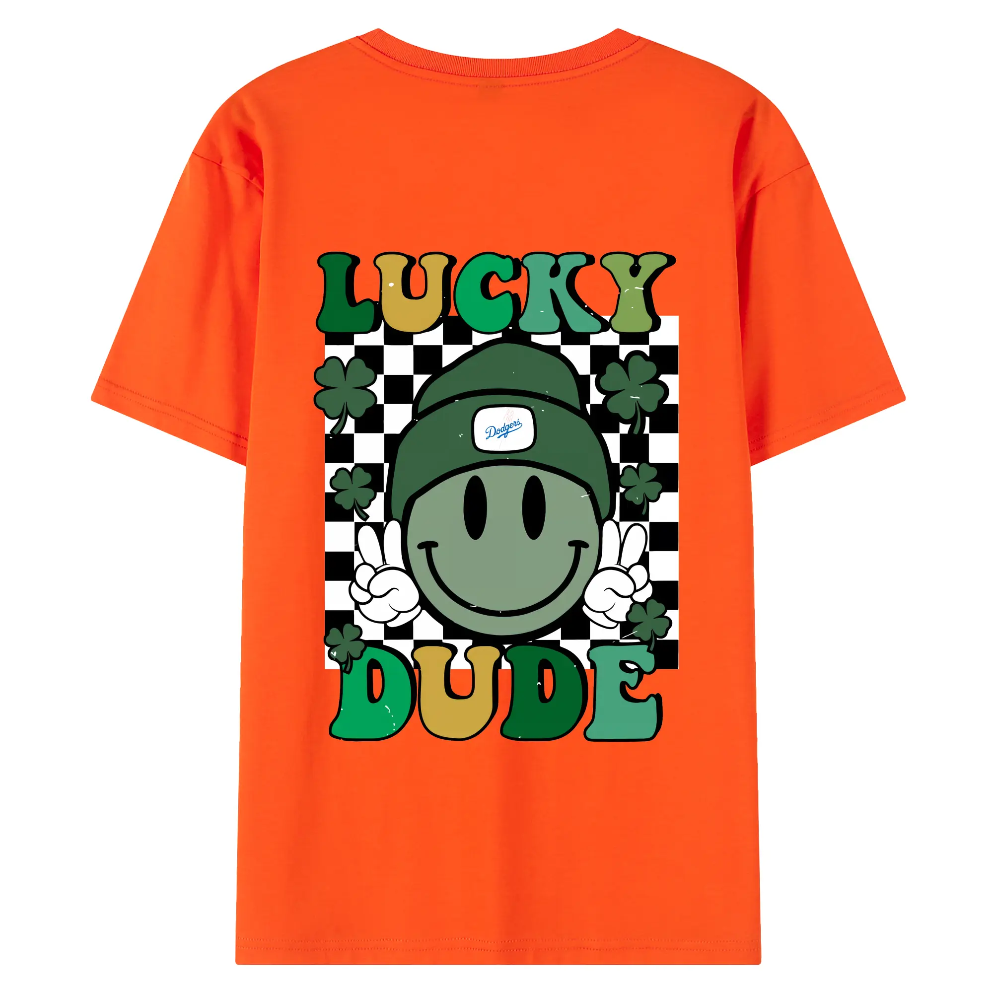 Happy Face Lucky Dude Los Angeles Dodgers - 180g Combed Cotton T-Shirt With Back Heat Transfer Print – Soft, Lightweight, Fitted Design – Stylish Casual Wear For Sports & Everyday Use