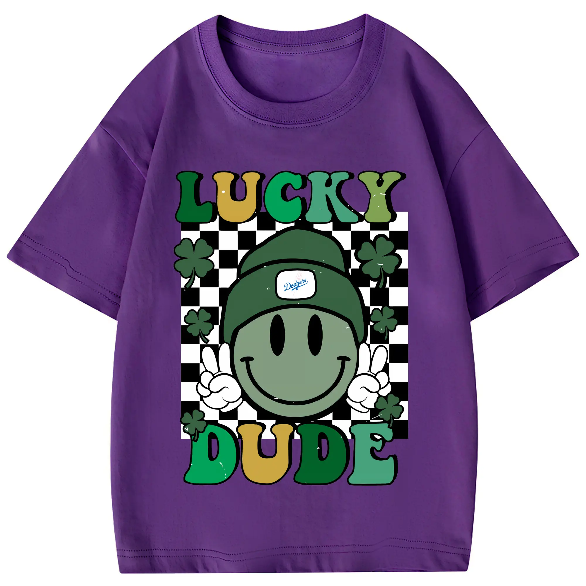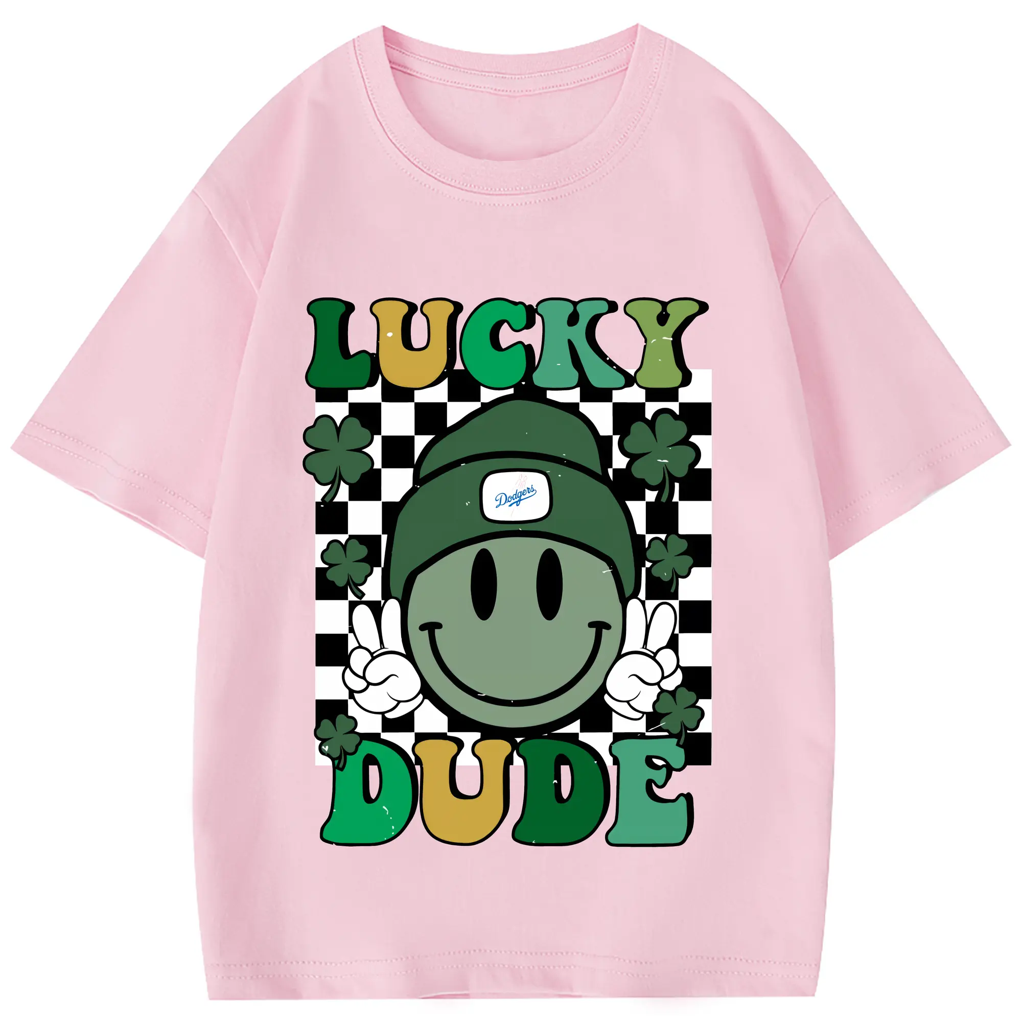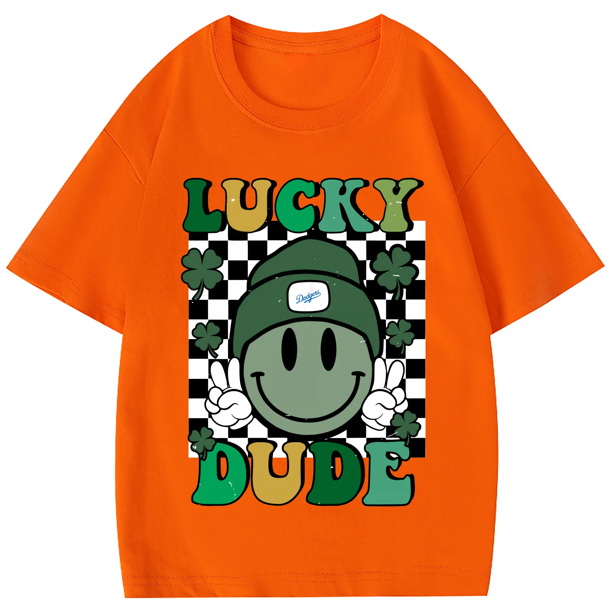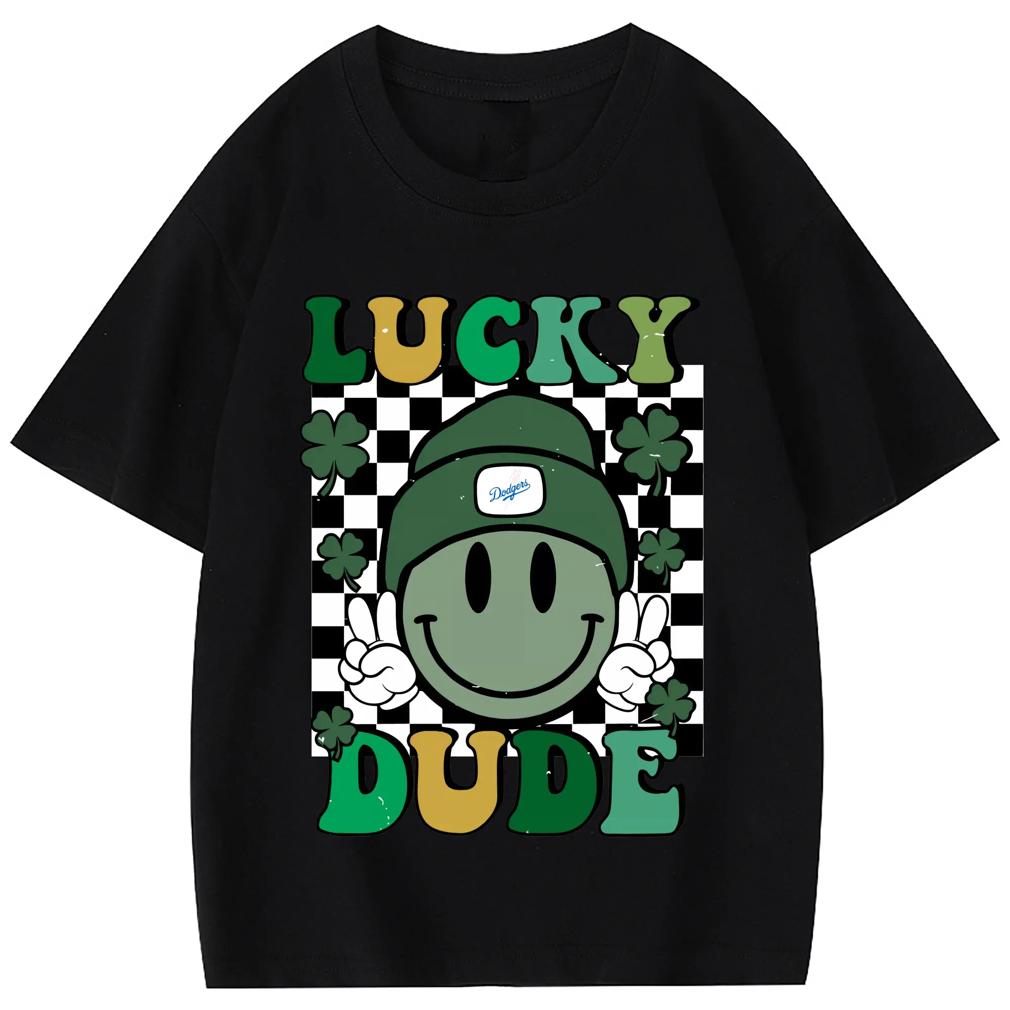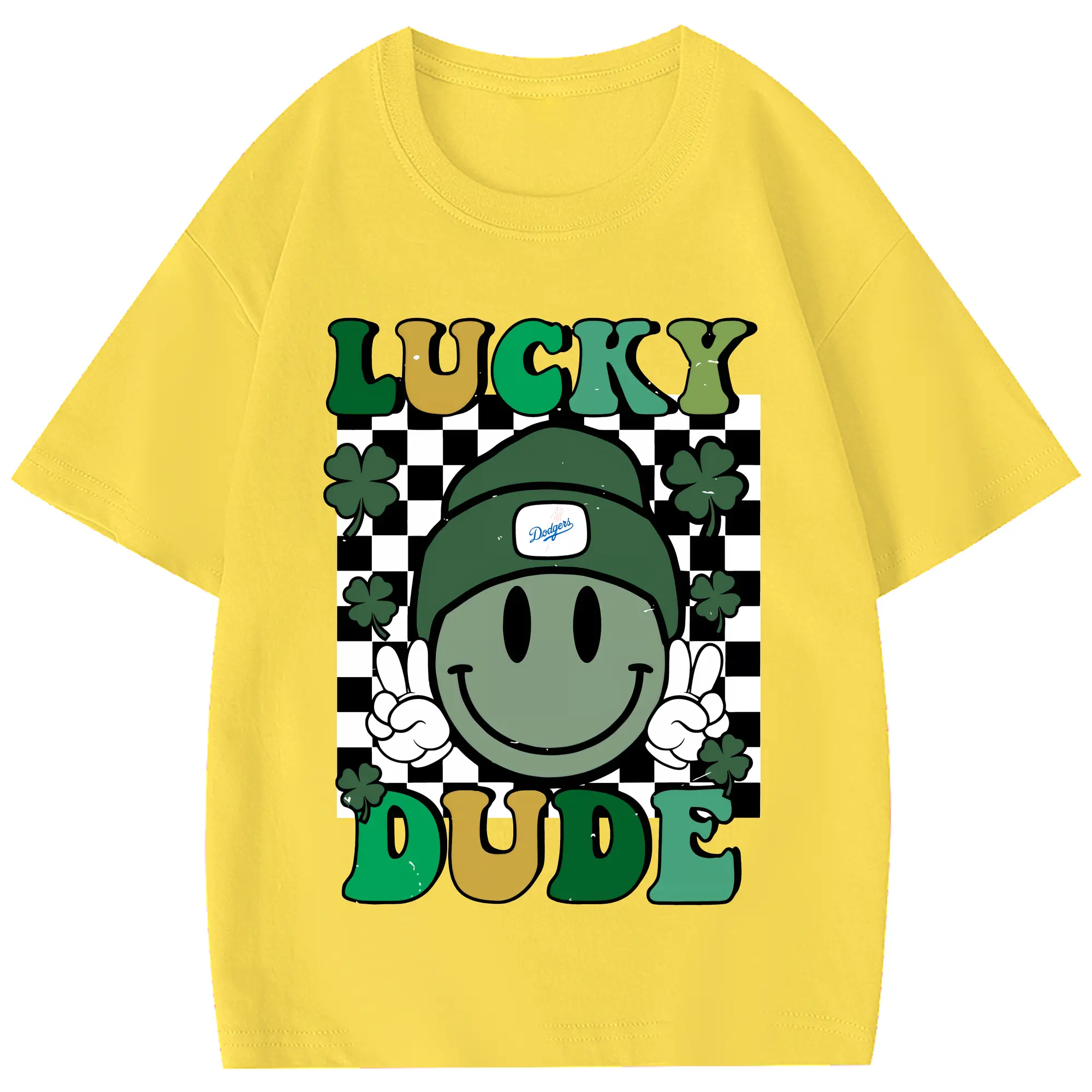 Happy Face Lucky Dude Los Angeles Dodgers - Combed Cotton Kids T-Shirt 180g With Front Heat Transfer Print – Soft, Lightweight, Side-Seamed Design – Stylish And Comfortable Casual Wear For Everyday Activities