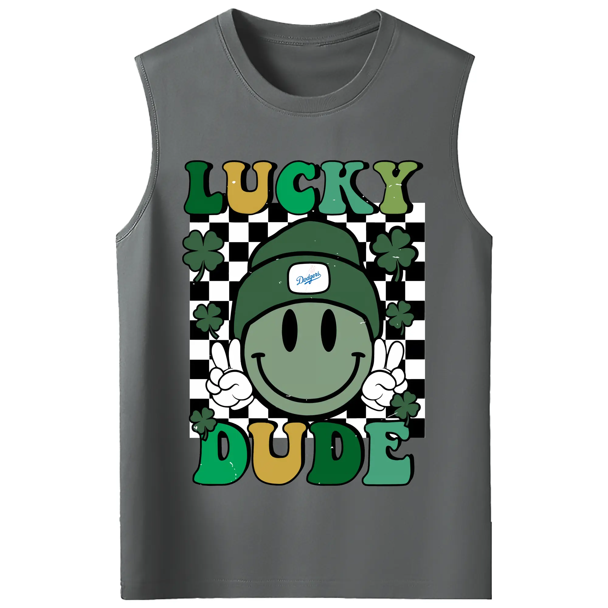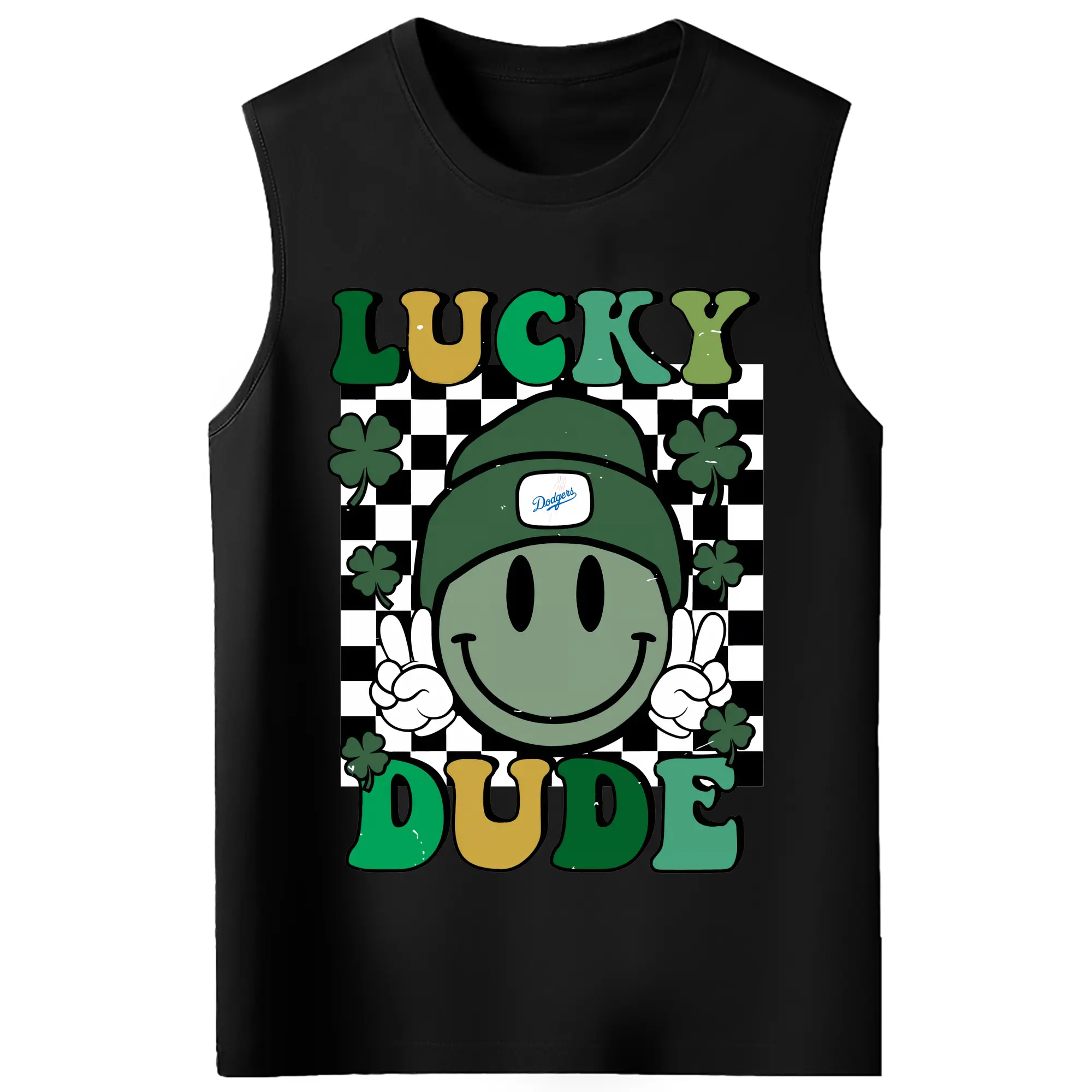 Happy Face Lucky Dude Los Angeles Dodgers - 210g Combed Cotton Tank Top With Front Heat Transfer Print – Soft, Lightweight, Fitted Design – Stylish & Comfortable Casual Wear For Sports & Everyday Use