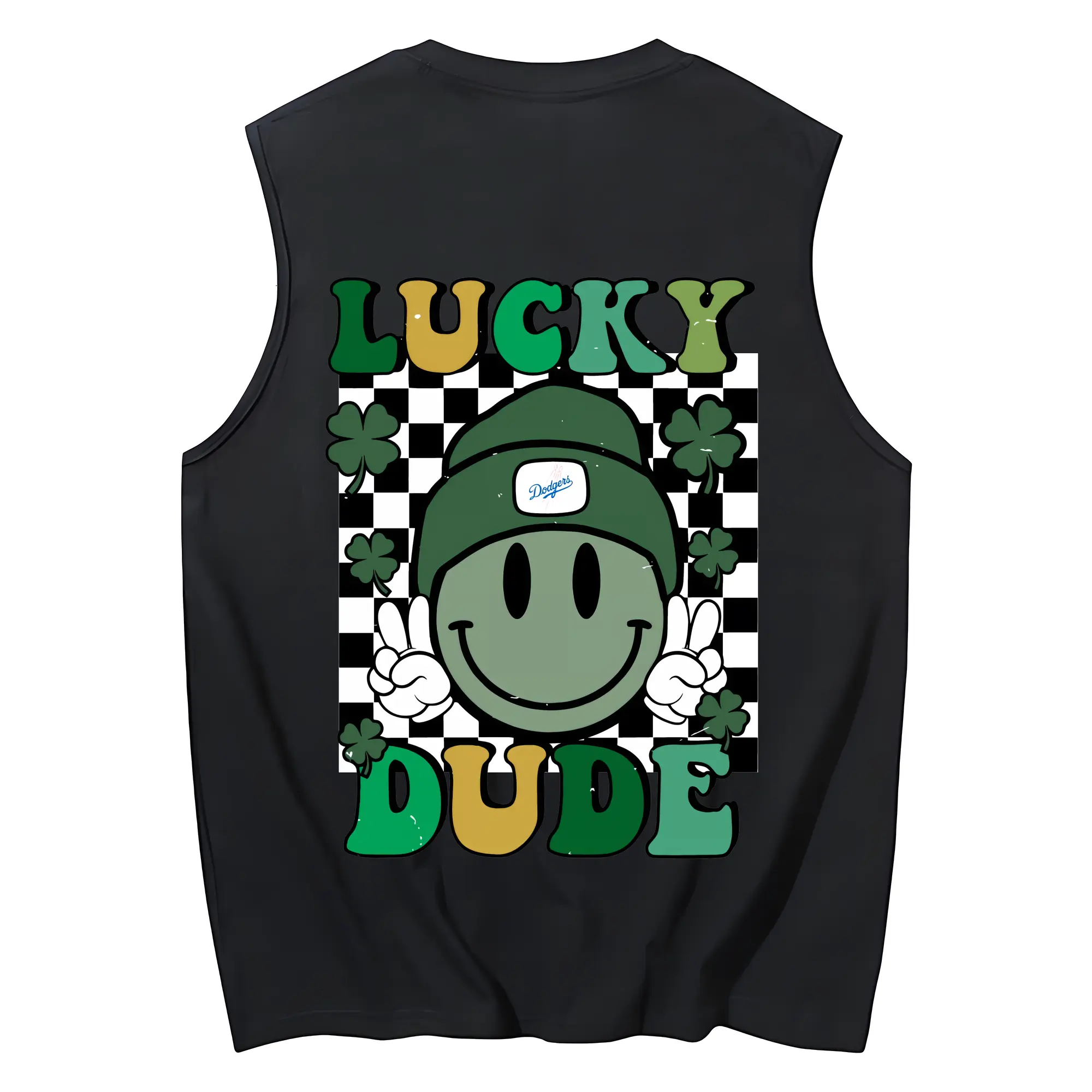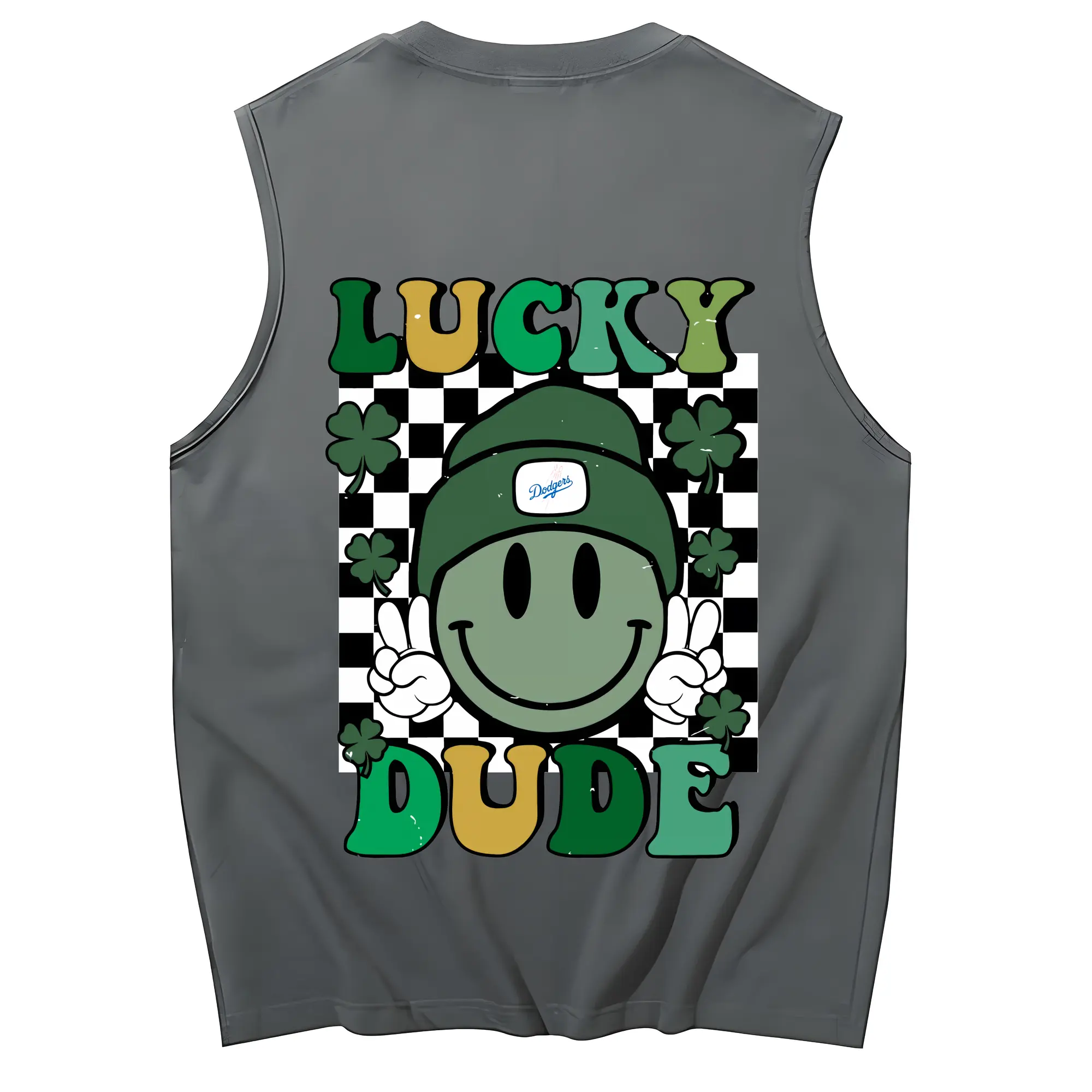 Happy Face Lucky Dude Los Angeles Dodgers - 230g Pure Cotton Tank Top With Back Heat Transfer Print – Soft, Lightweight, Fitted Design – Stylish & Comfortable Casual Wear For Sports & Everyday Use