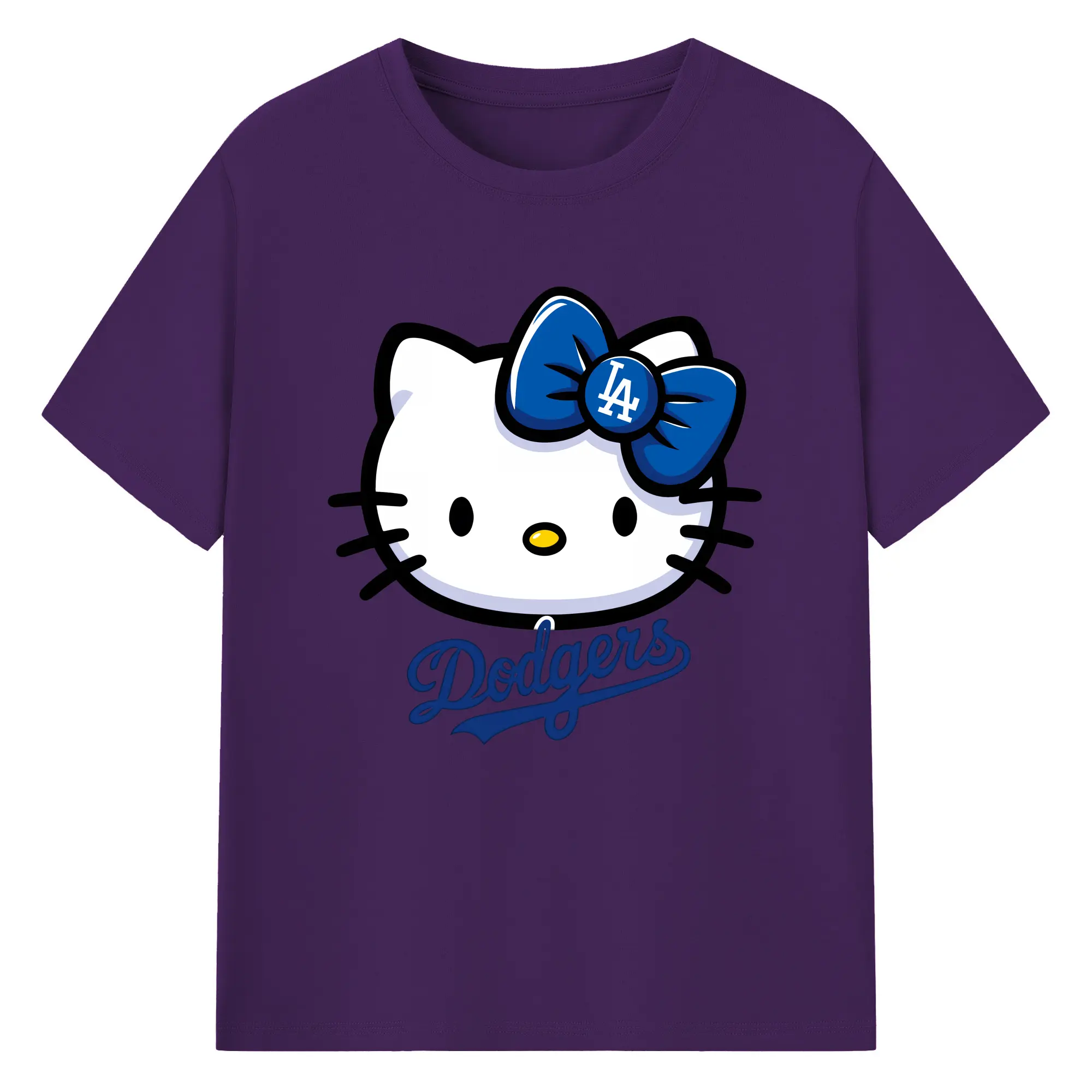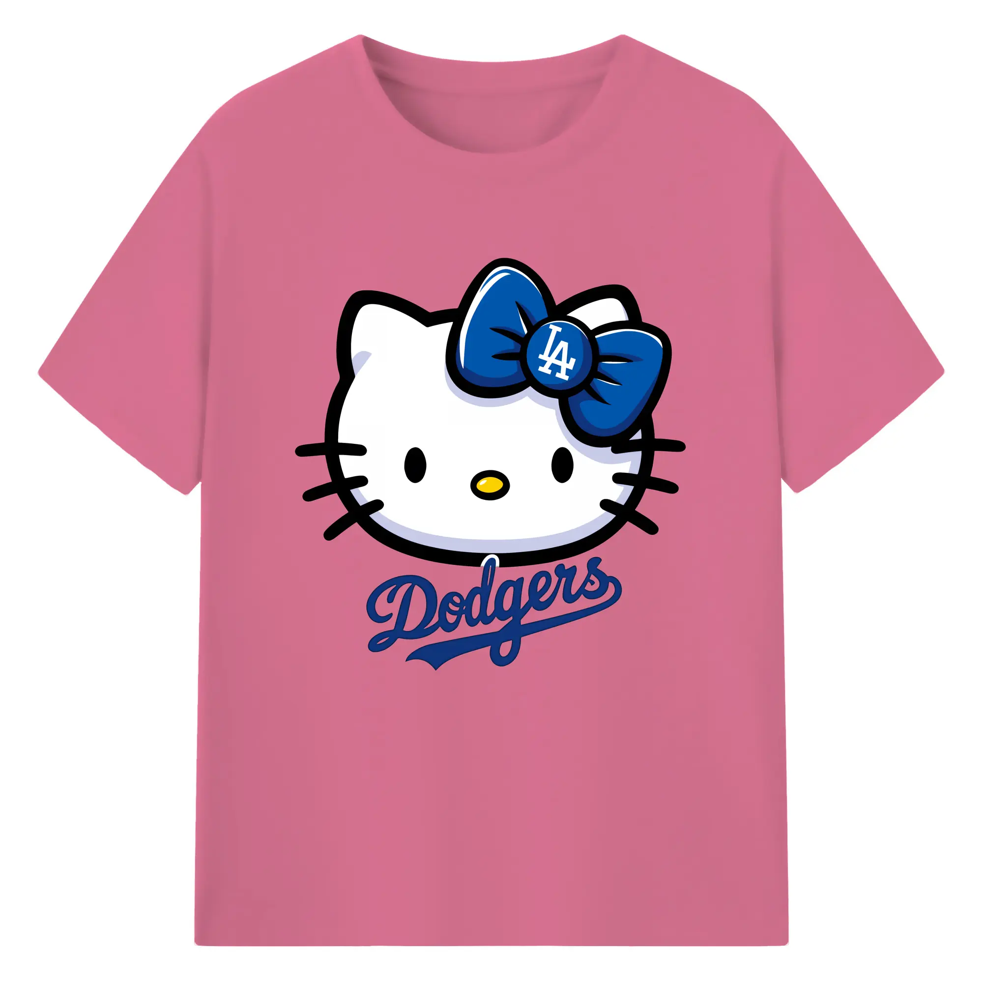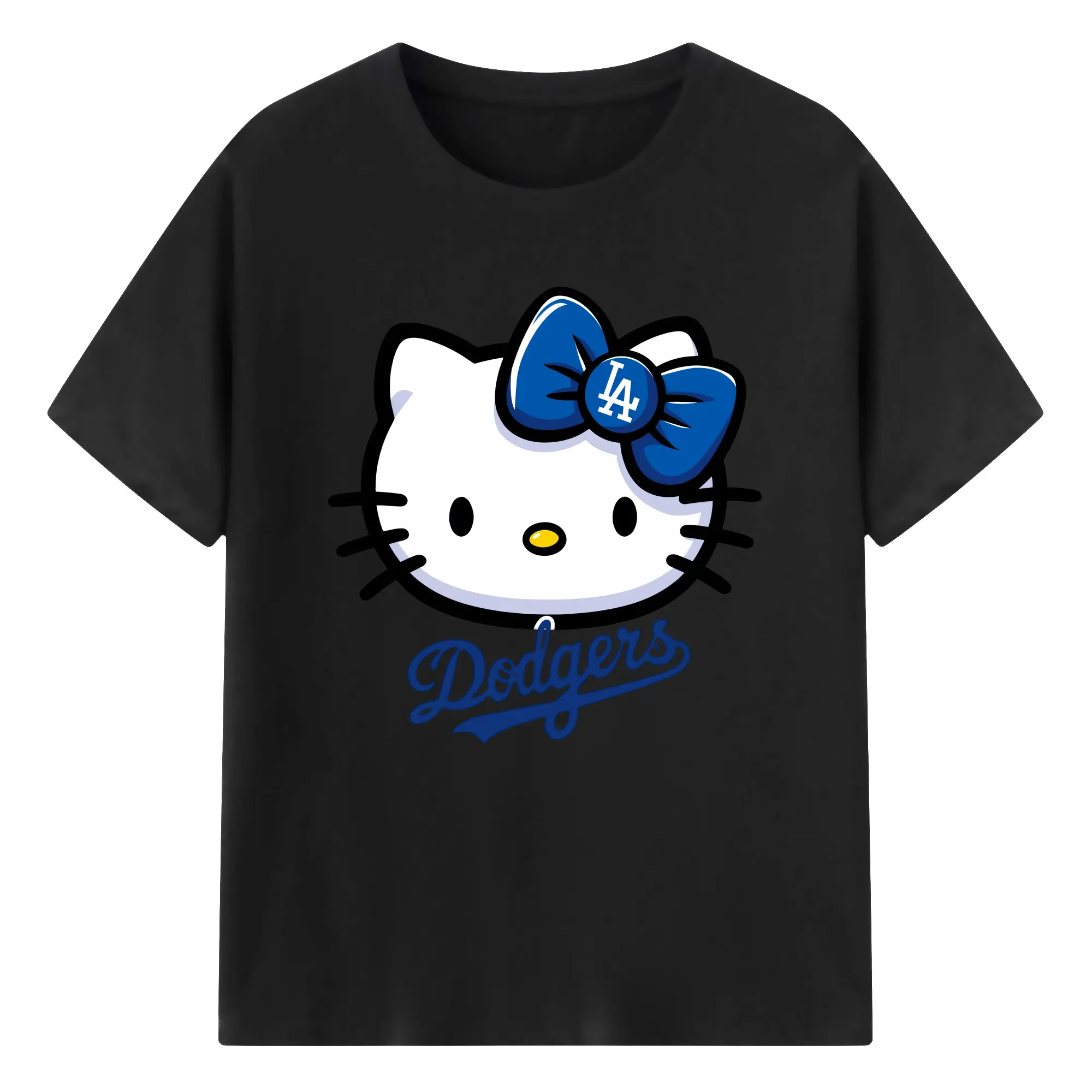 Hello Kitty Baseball LA Dodgers - 180g Cotton T-Shirt With Front Heat Transfer Print – Soft, Lightweight, Fitted Design – Comfortable Casual Wear For Sports & Everyday Use
