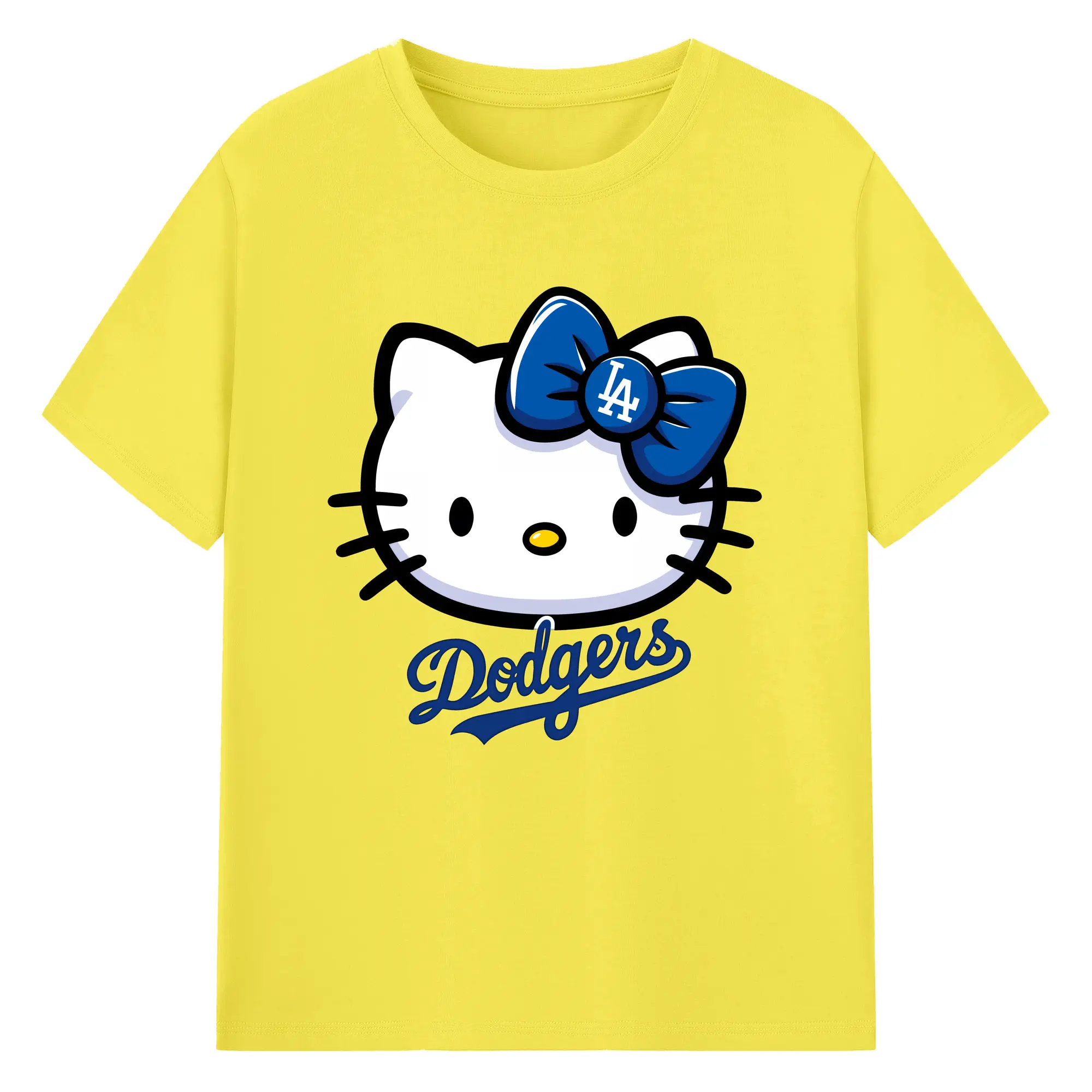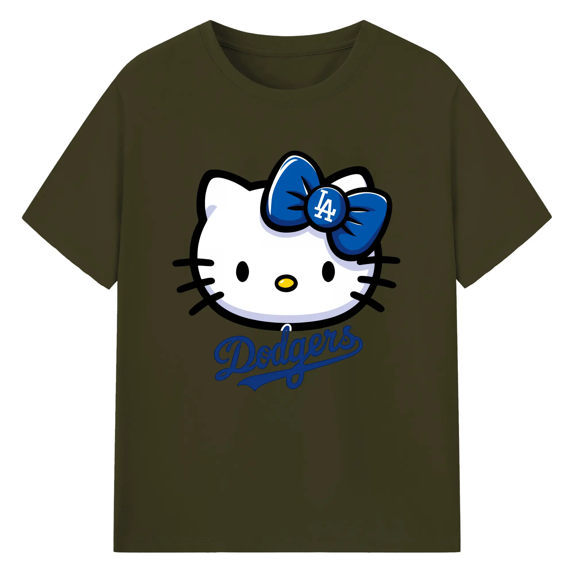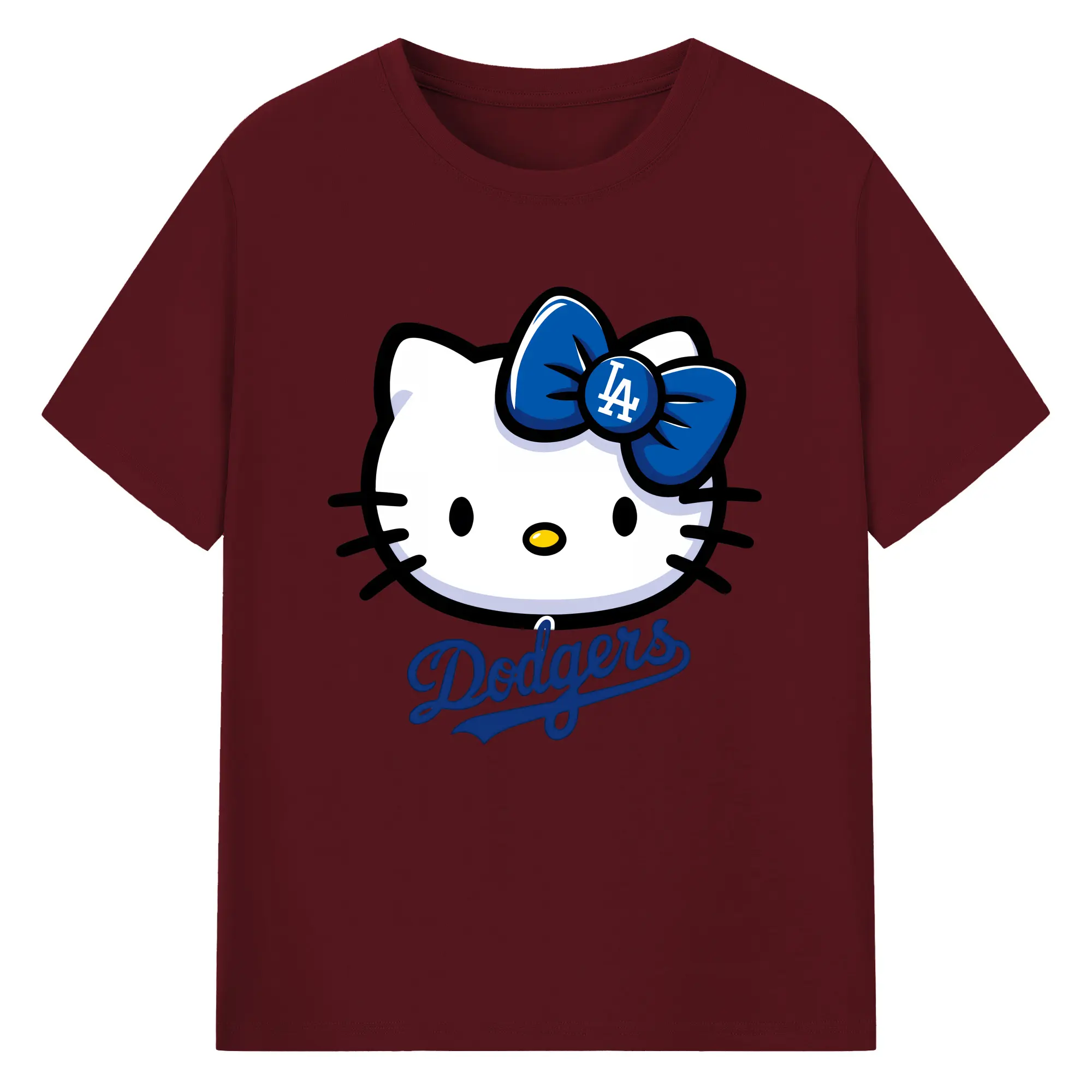 Hello Kitty Baseball LA Dodgers - 180g Cotton T-Shirt With Front Heat Transfer Print – Soft, Lightweight, Fitted Design – Comfortable Casual Wear For Sports & Everyday Use