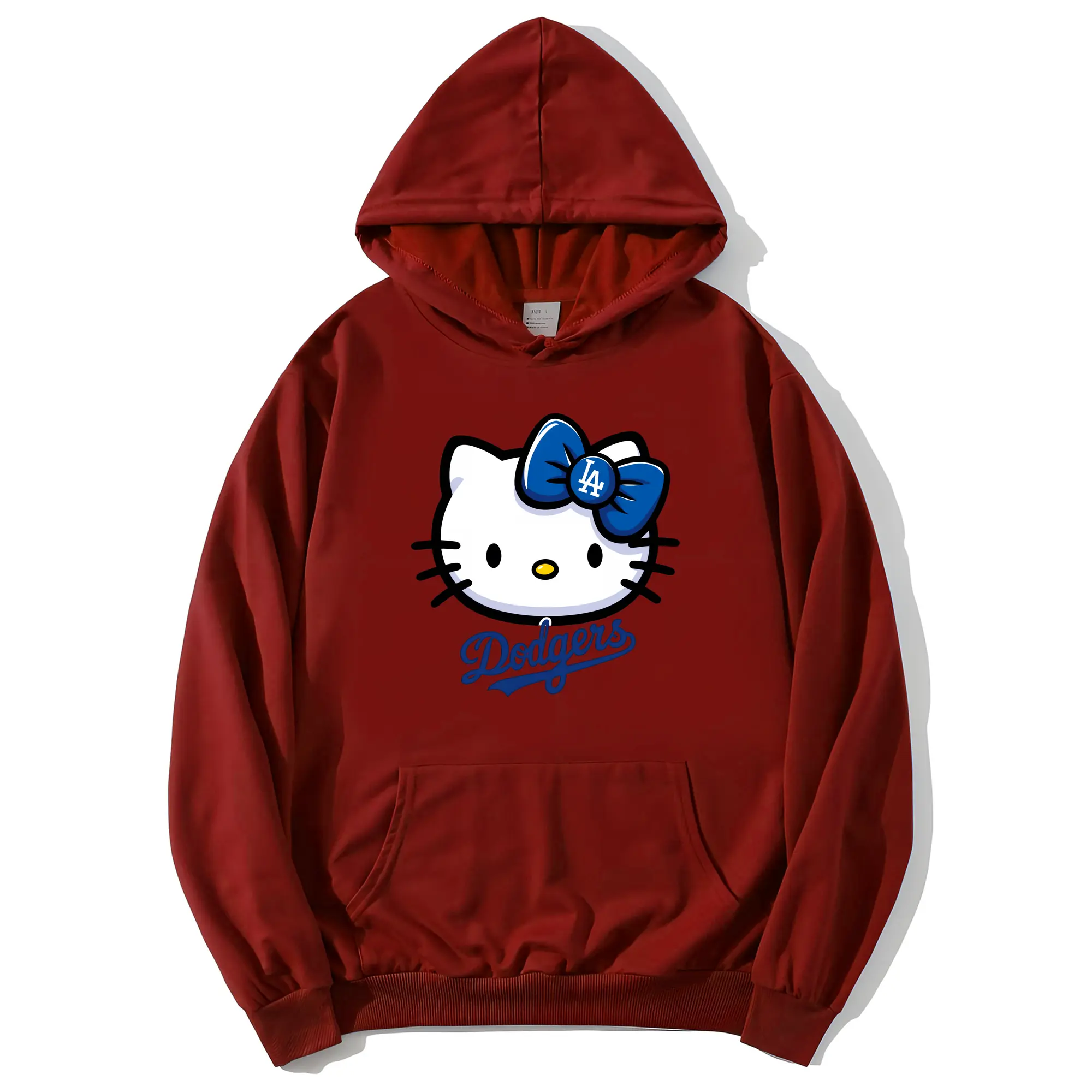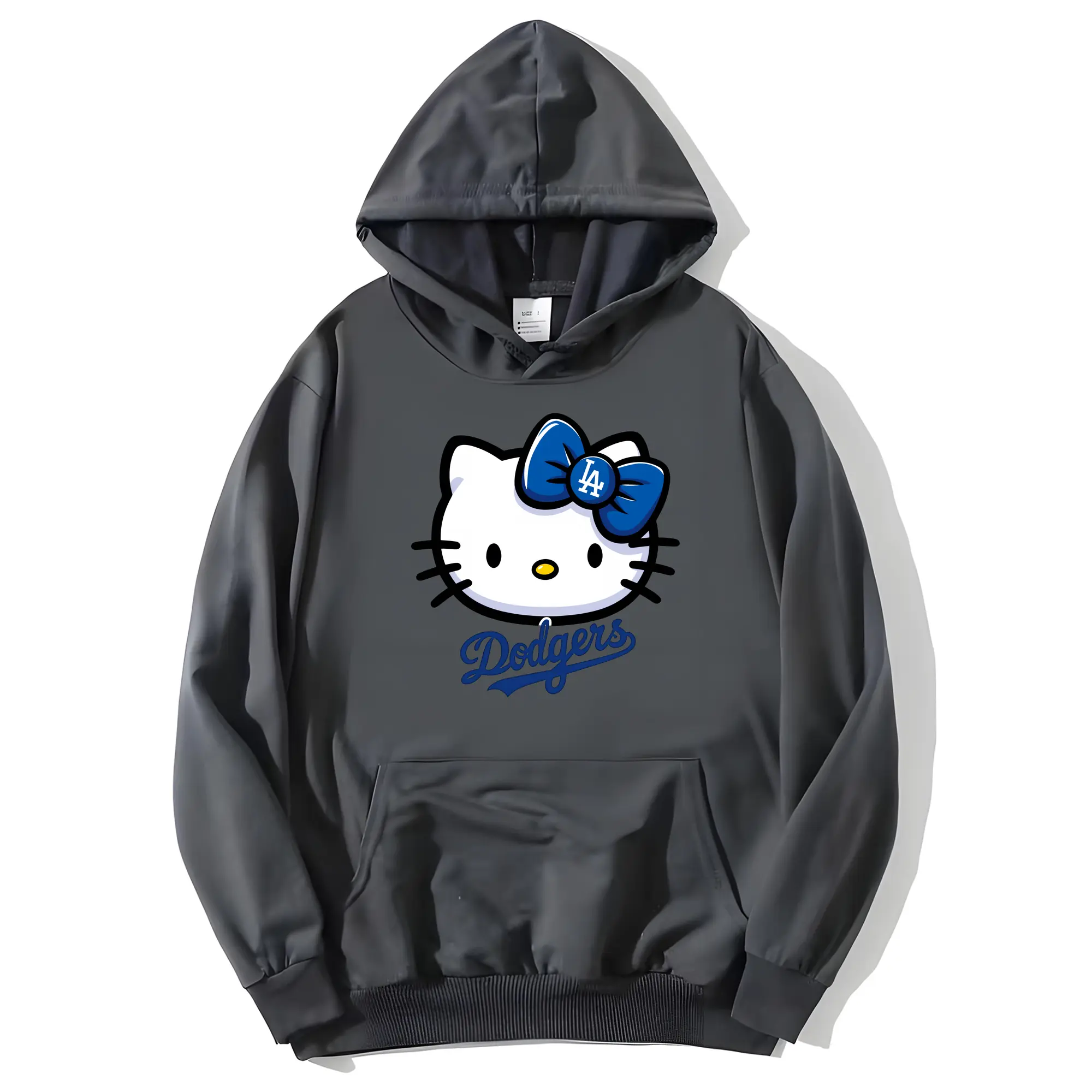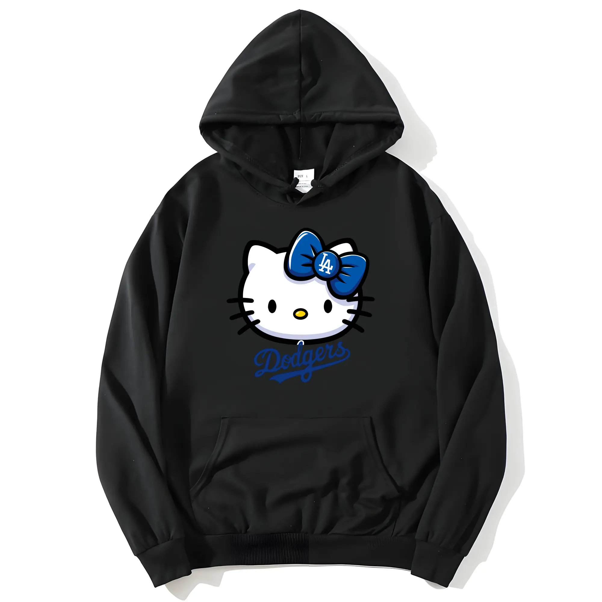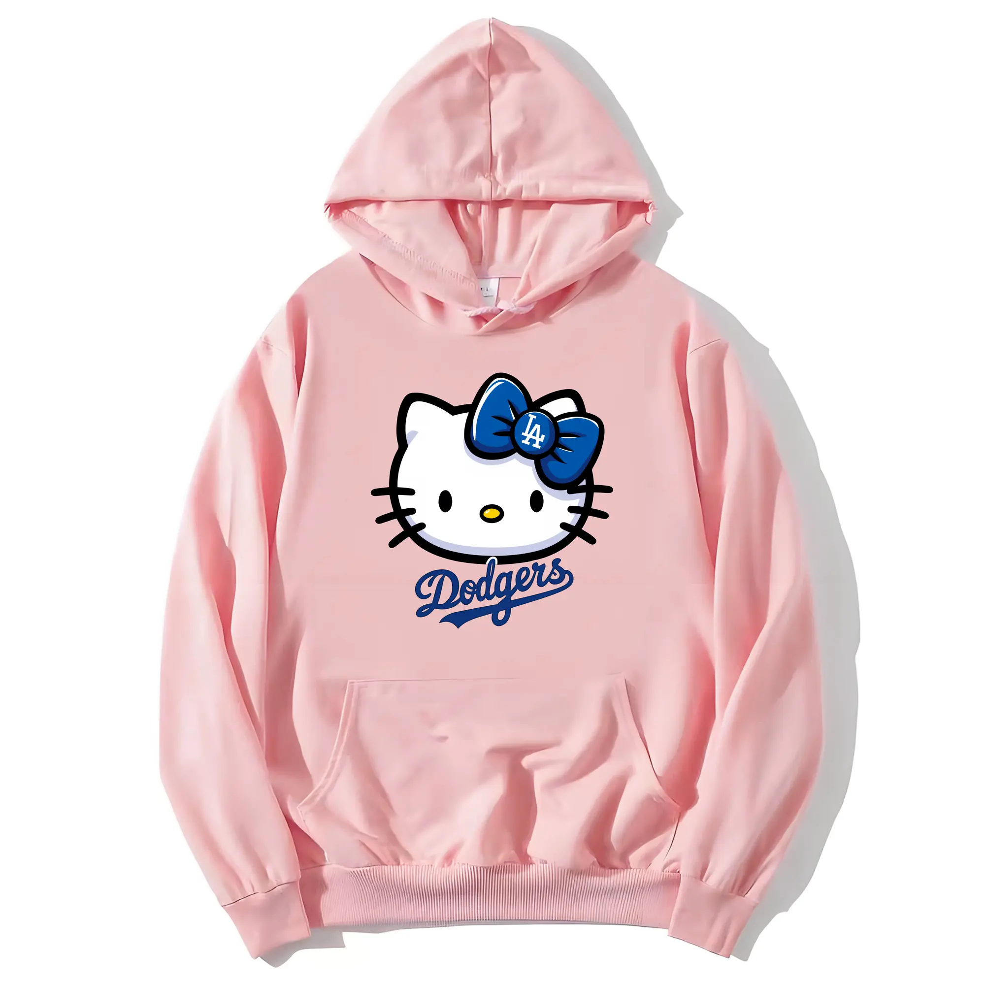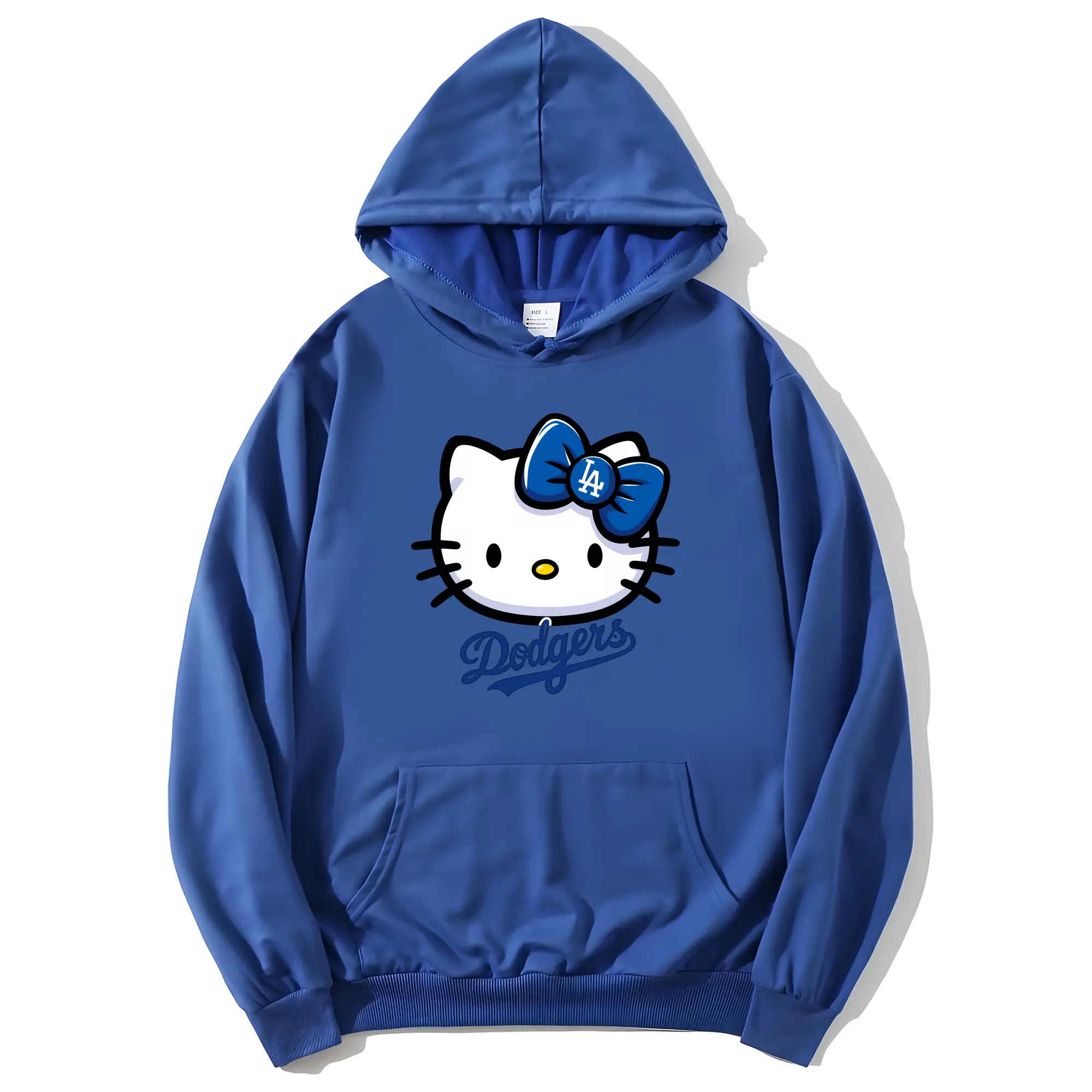 Hello Kitty Baseball LA Dodgers - Premium Hoodie With Front Heat Transfer Print – 56.1% Cotton, 43.9% Polyester – Soft, Durable & Stylish – Perfect For Sports, Casual & Everyday Wear
