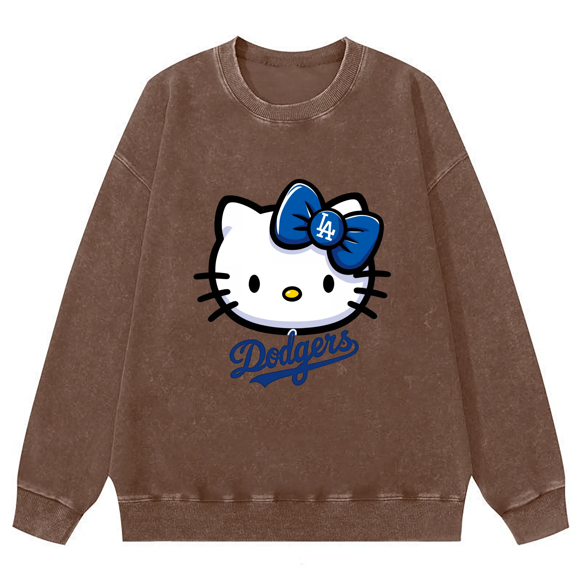 Hello Kitty Baseball LA Dodgers - Washed Wax-Dyed Vintage Crewneck Sweatshirt – 80% Cotton, 20% Polyester – Soft, Durable & Stylish – Ideal For Sports, Casual & Everyday Wear