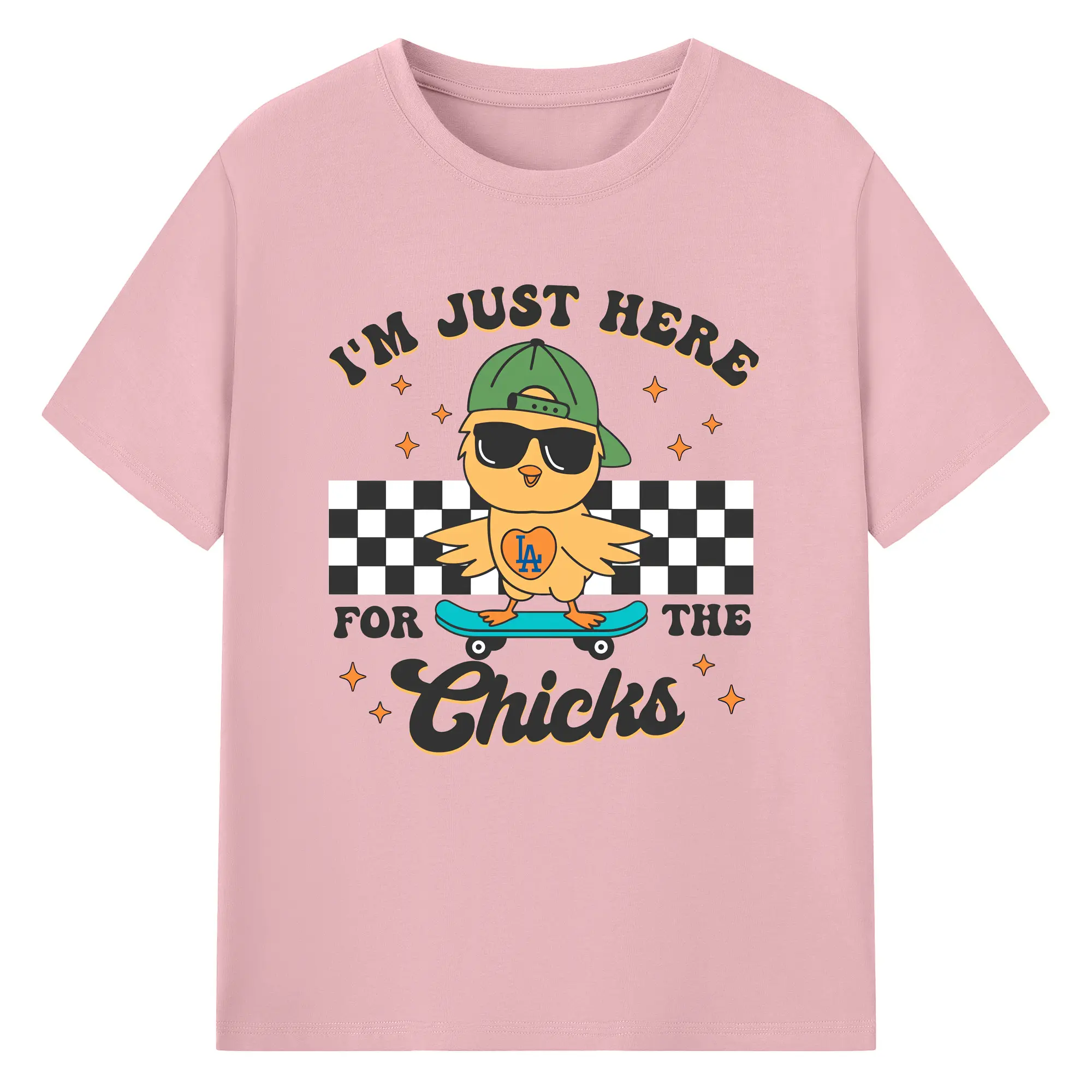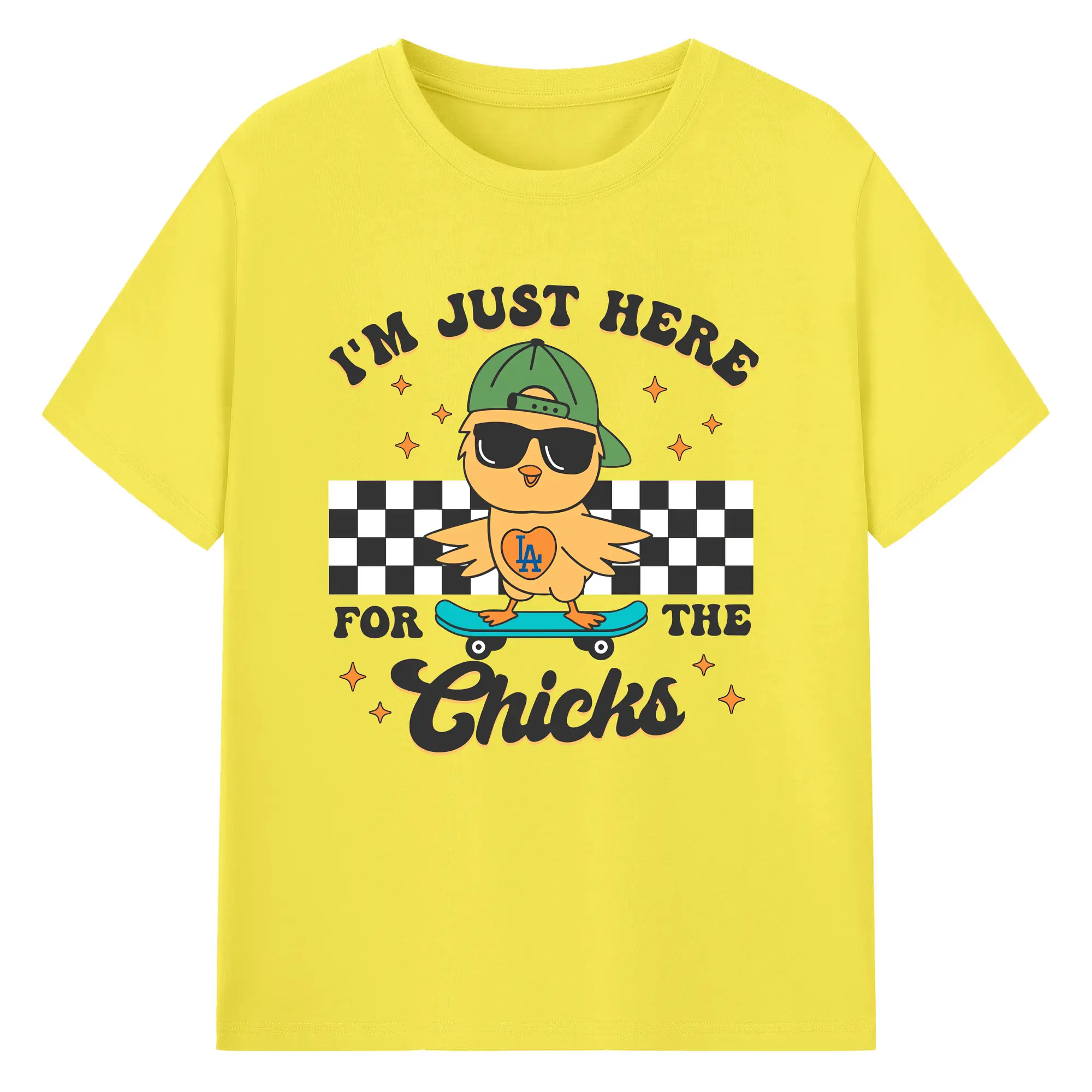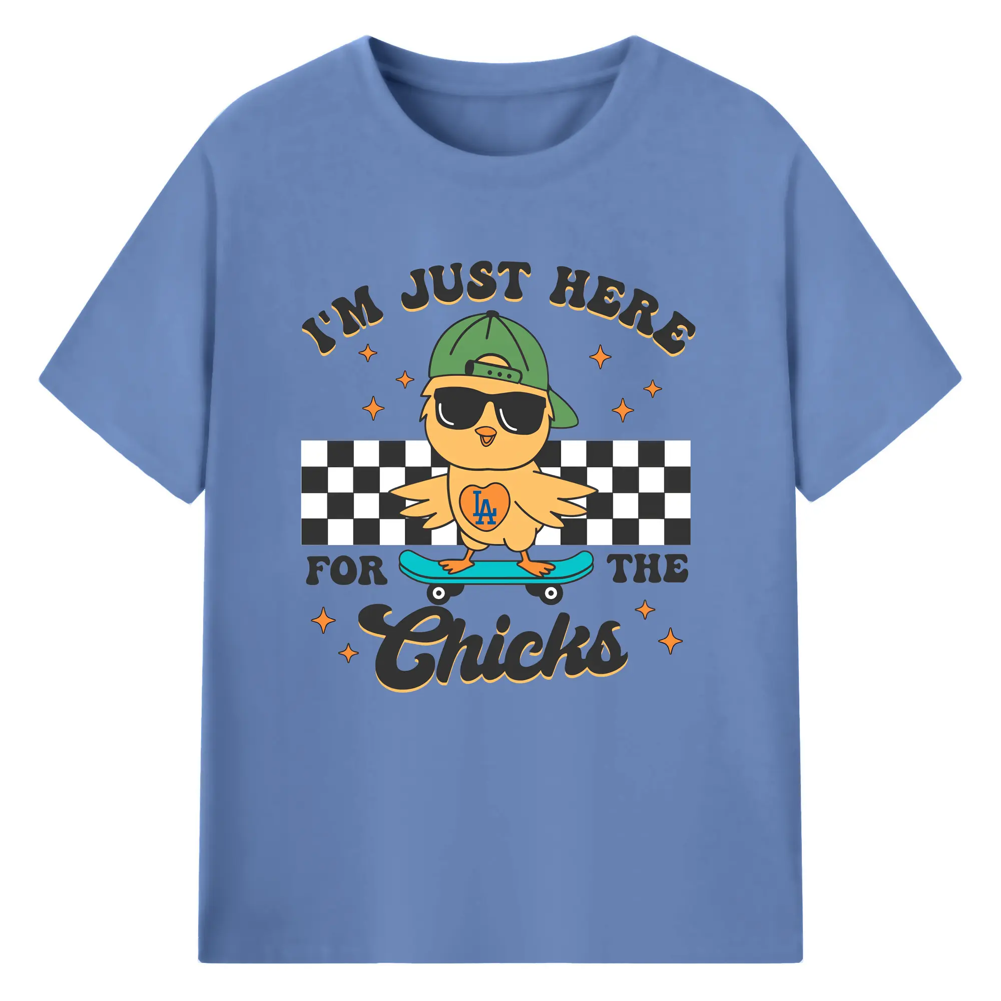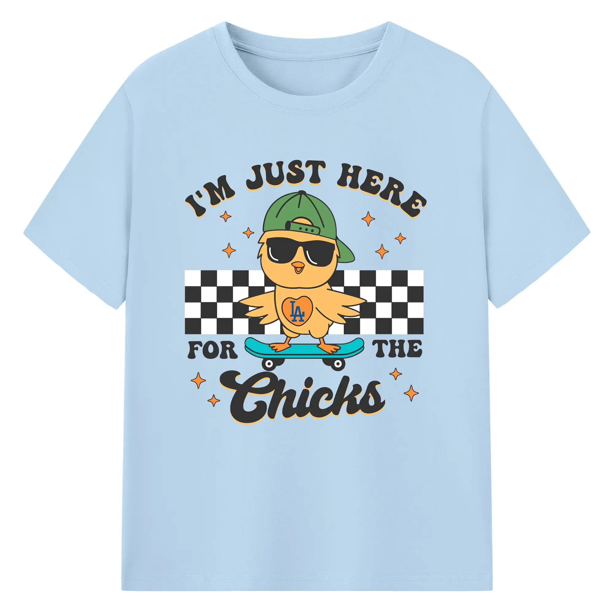 Im Just Here For The Chicks Los Angeles Dodgers - 180g Cotton T-Shirt With Front Heat Transfer Print – Soft, Lightweight, Fitted Design – Comfortable Casual Wear For Sports & Everyday Use