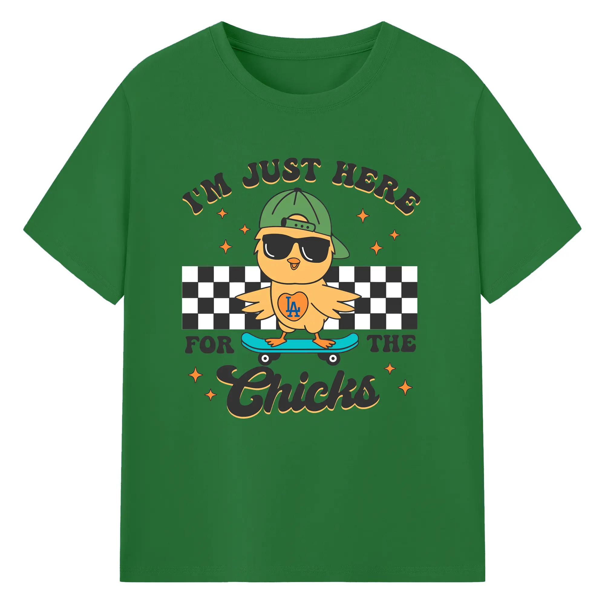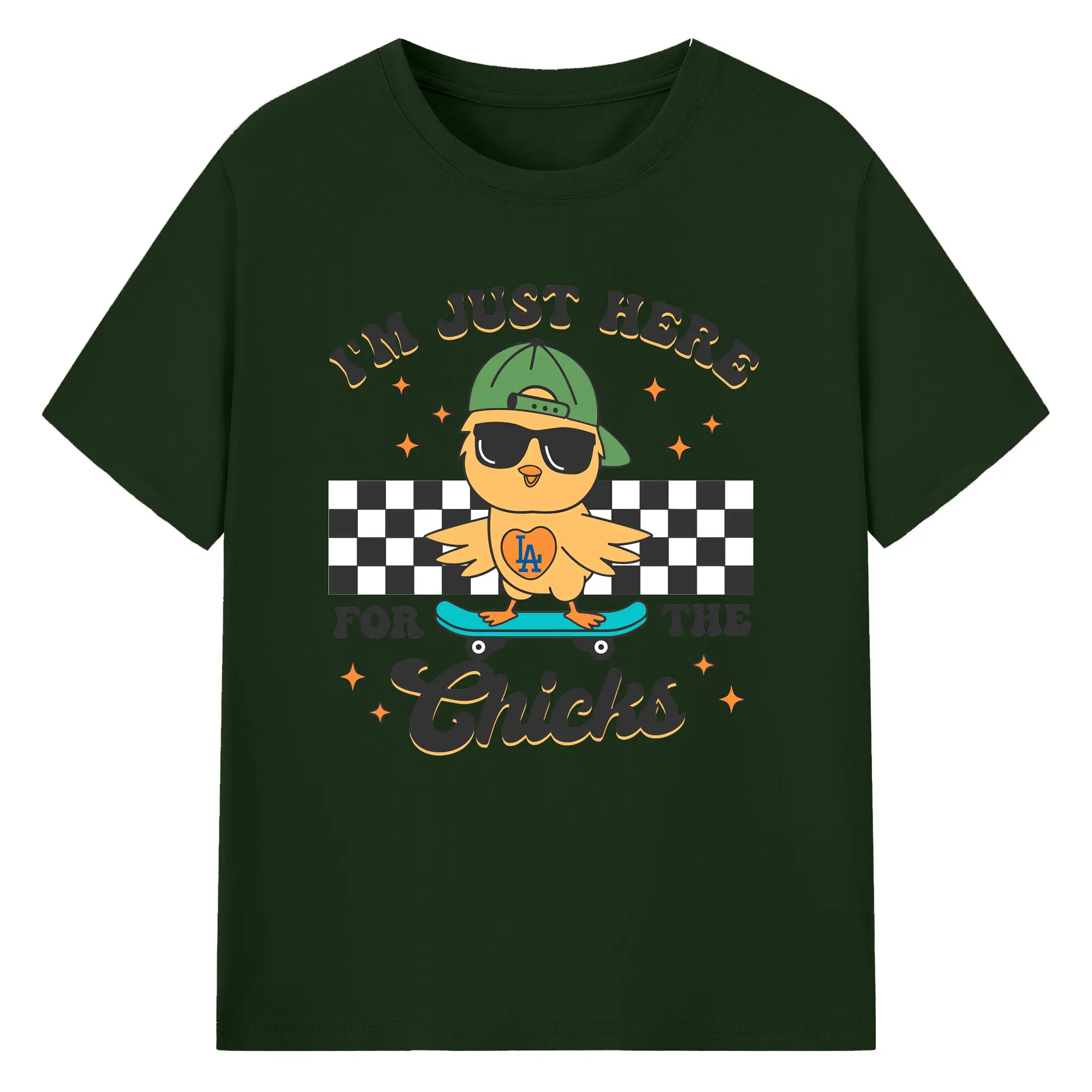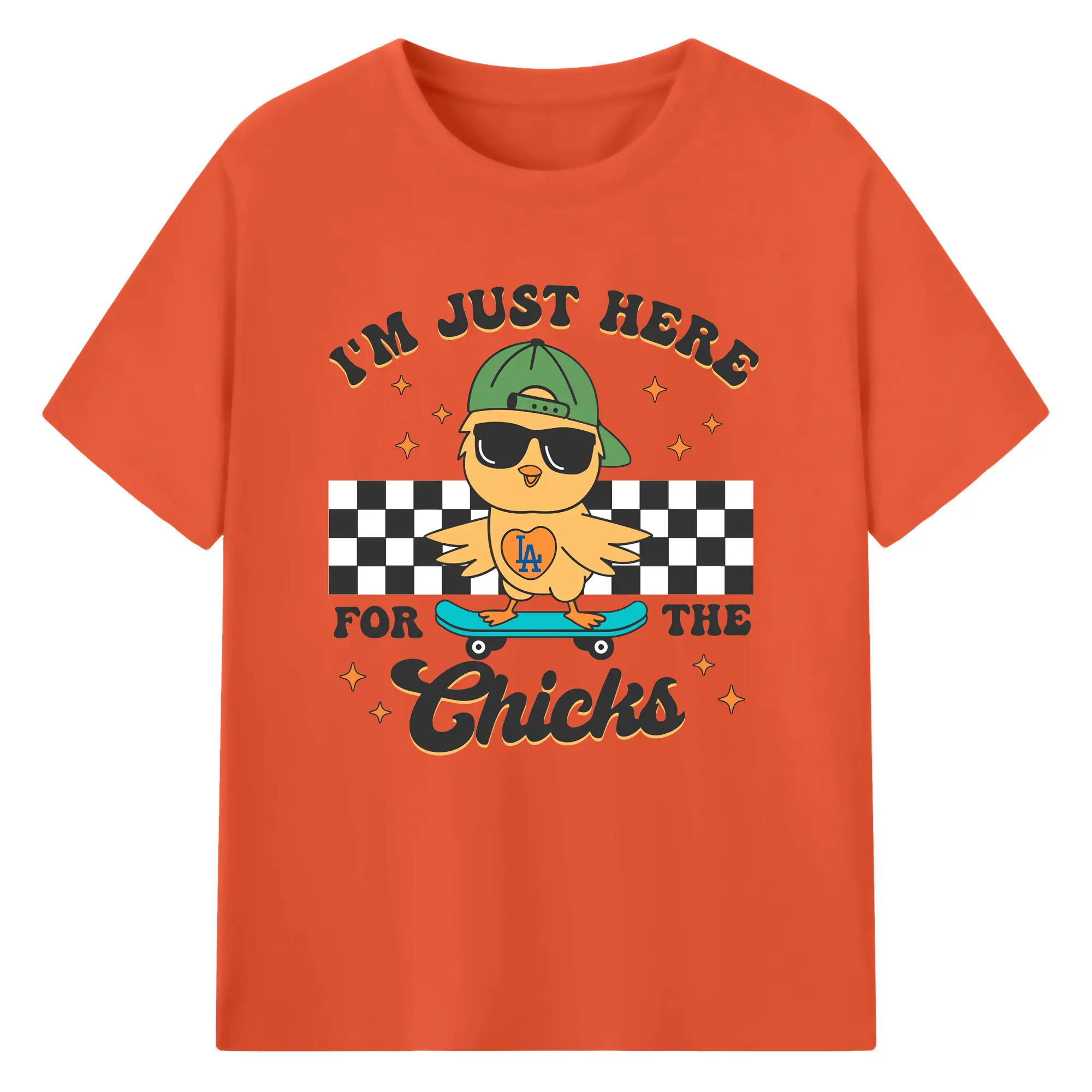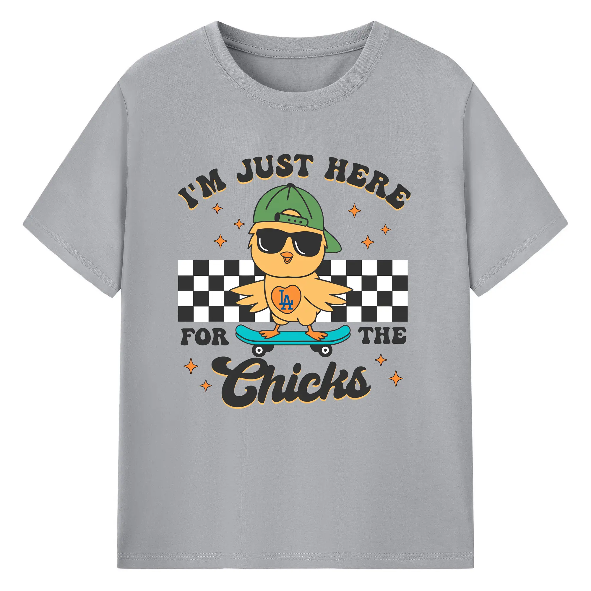 Im Just Here For The Chicks Los Angeles Dodgers - 180g Cotton T-Shirt With Front Heat Transfer Print – Soft, Lightweight, Fitted Design – Comfortable Casual Wear For Sports & Everyday Use