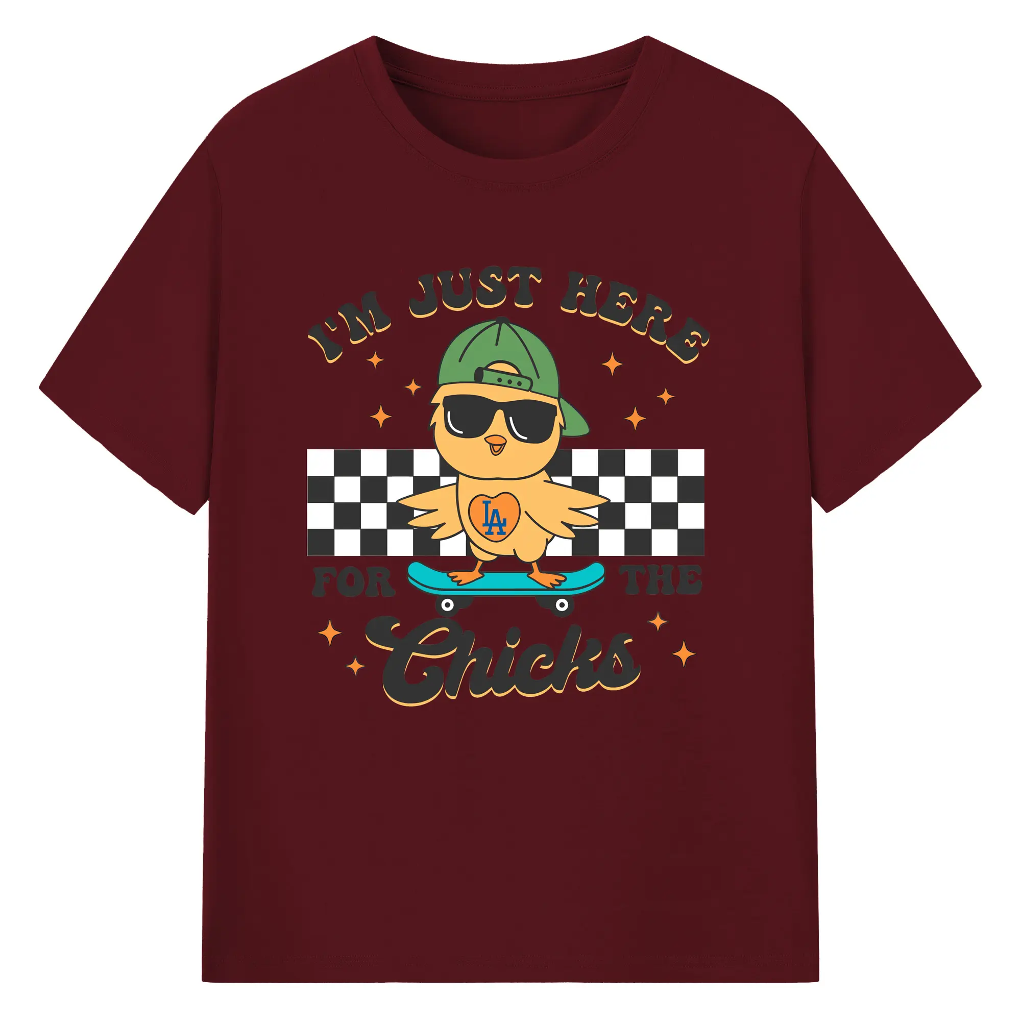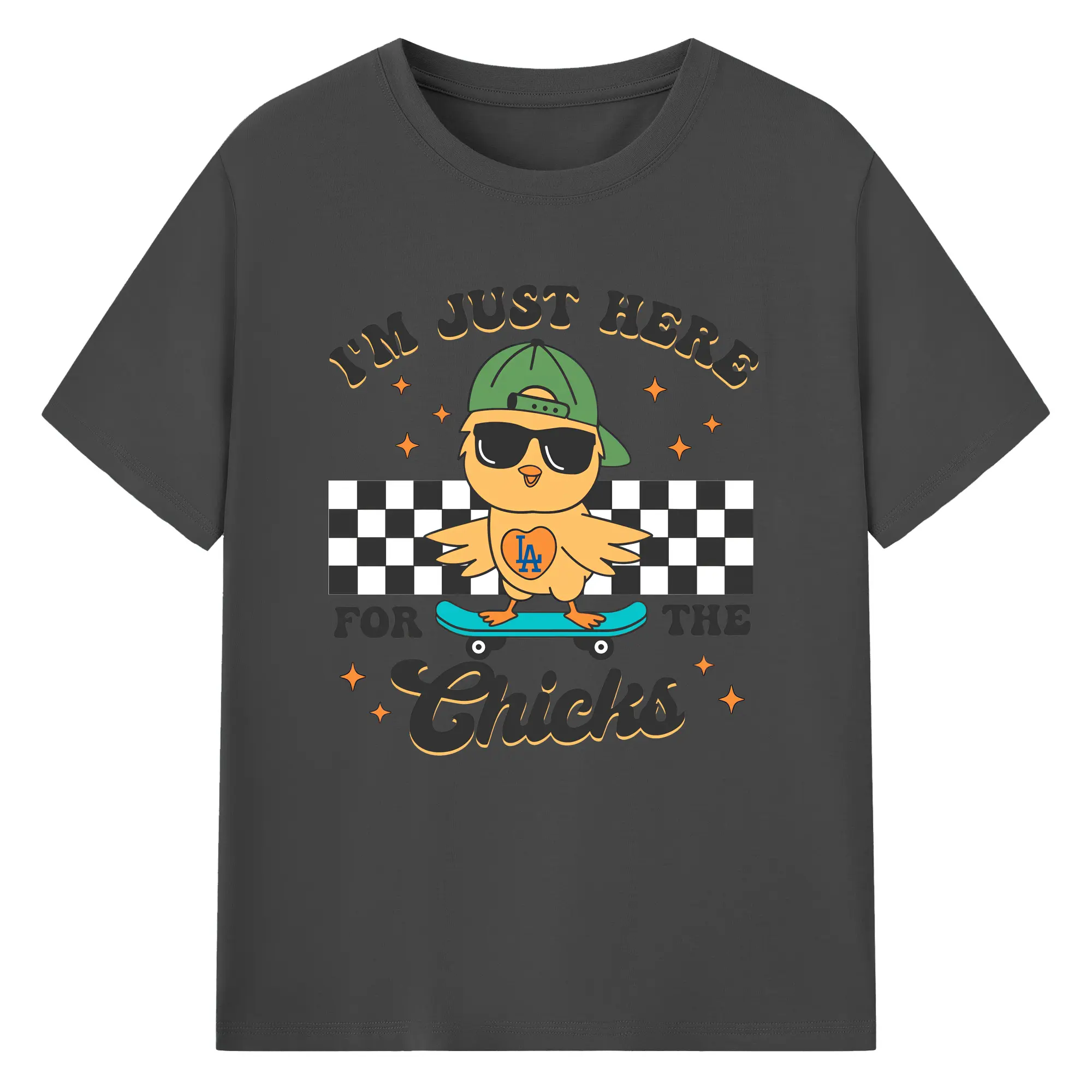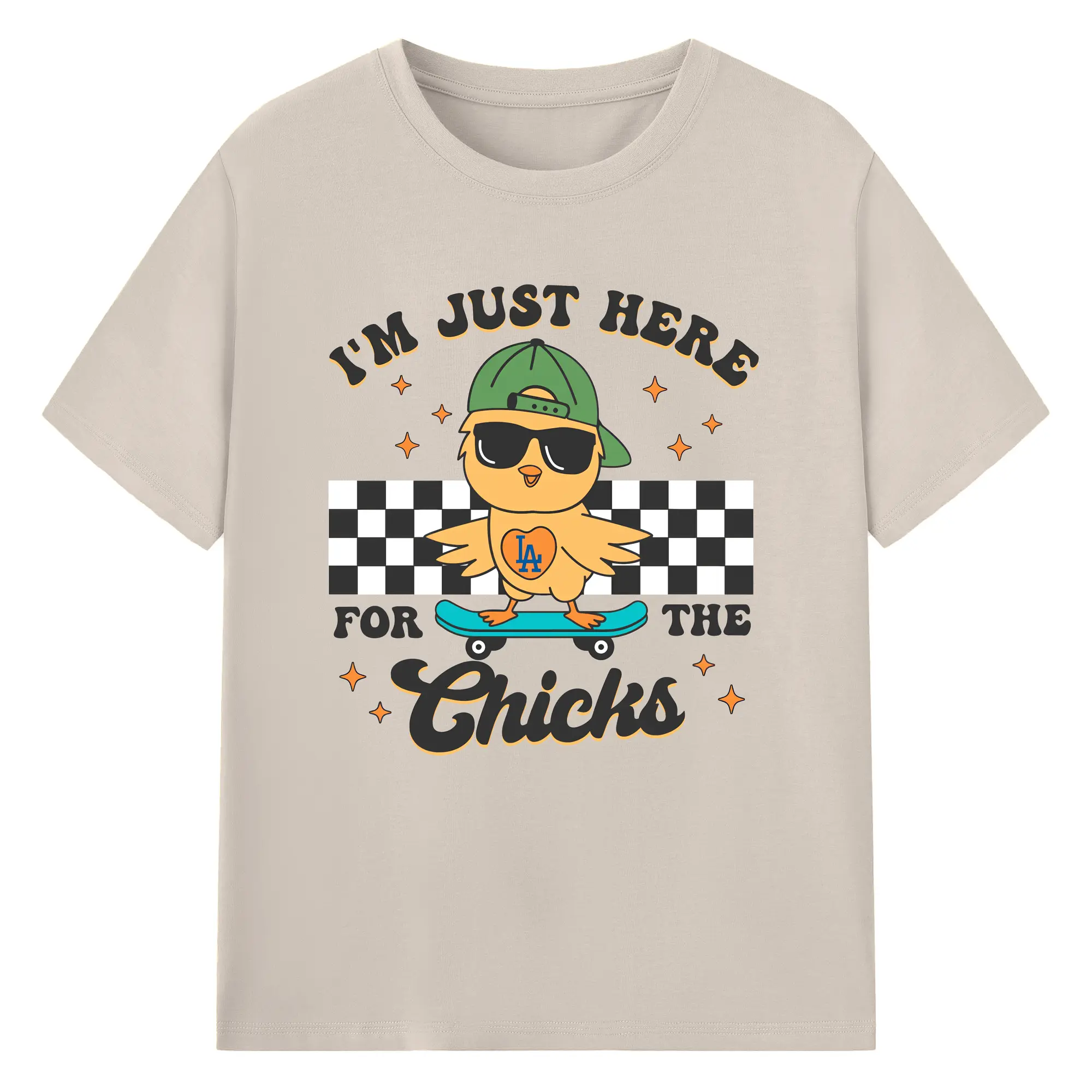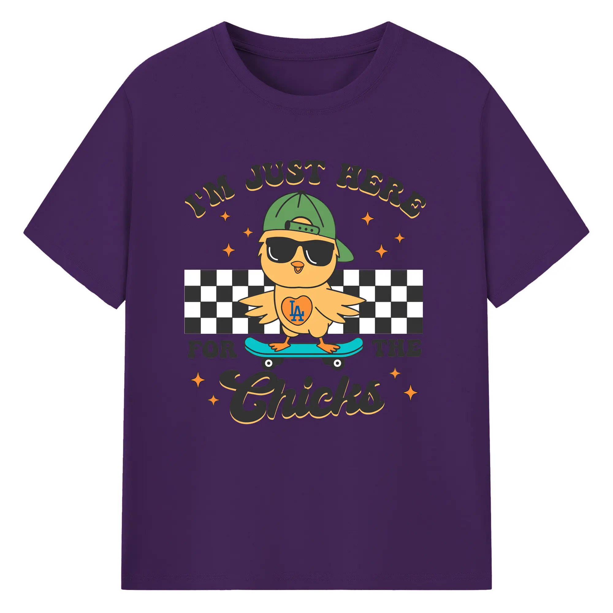 Im Just Here For The Chicks Los Angeles Dodgers - 180g Cotton T-Shirt With Front Heat Transfer Print – Soft, Lightweight, Fitted Design – Comfortable Casual Wear For Sports & Everyday Use