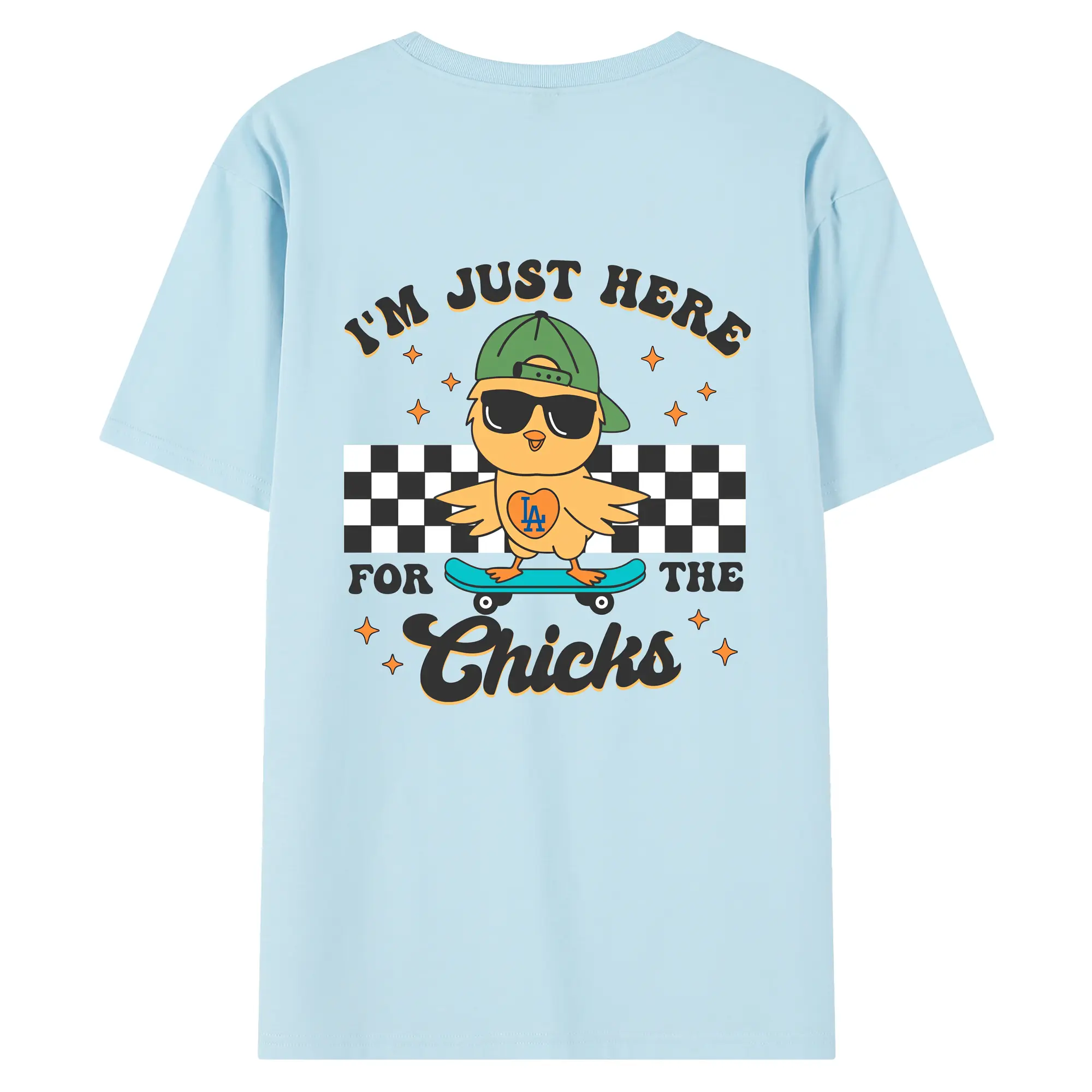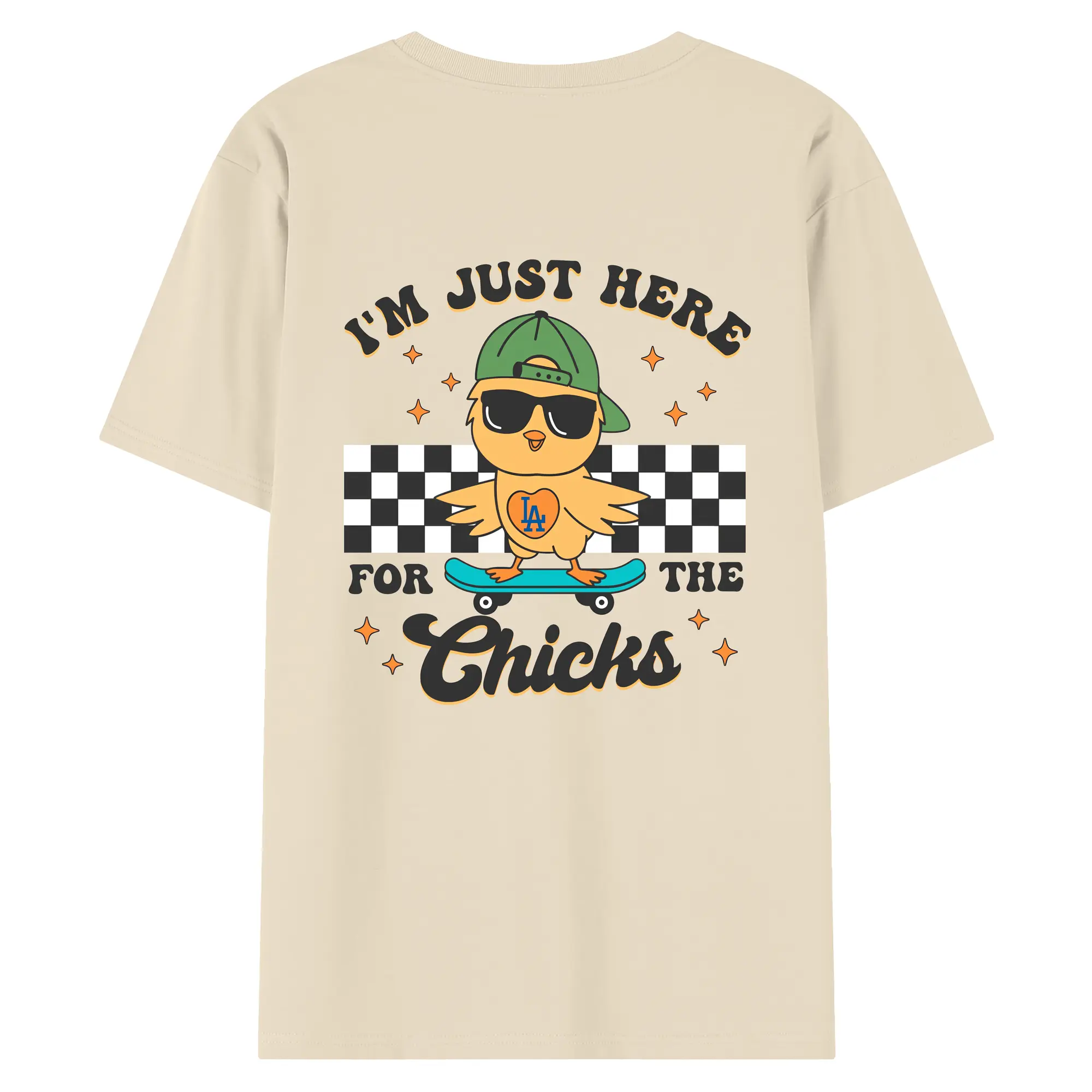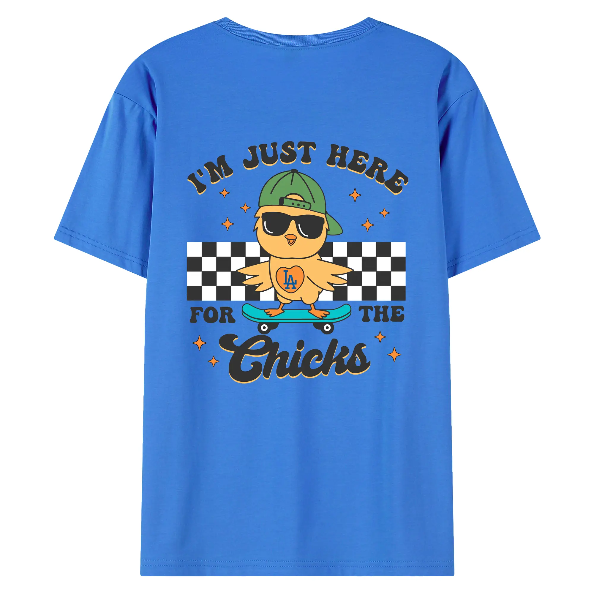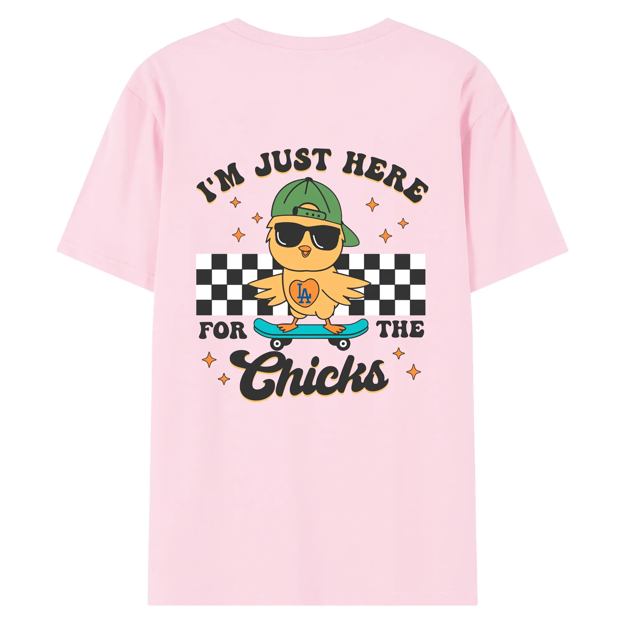 Im Just Here For The Chicks Los Angeles Dodgers - 180g Combed Cotton T-Shirt With Back Heat Transfer Print – Soft, Lightweight, Fitted Design – Stylish Casual Wear For Sports & Everyday Use