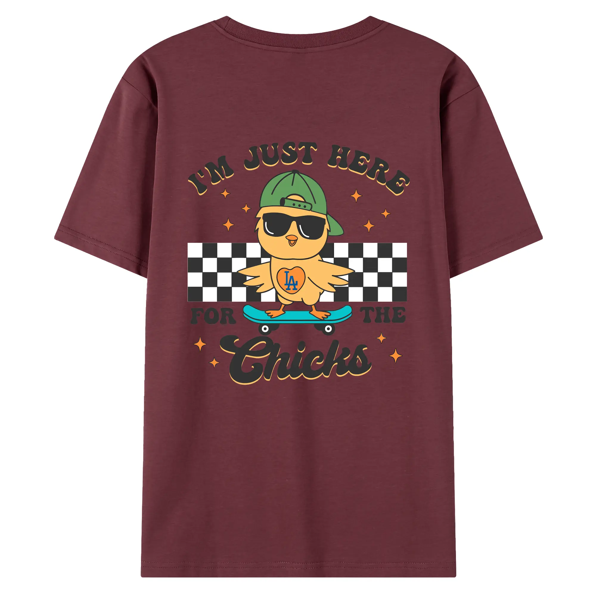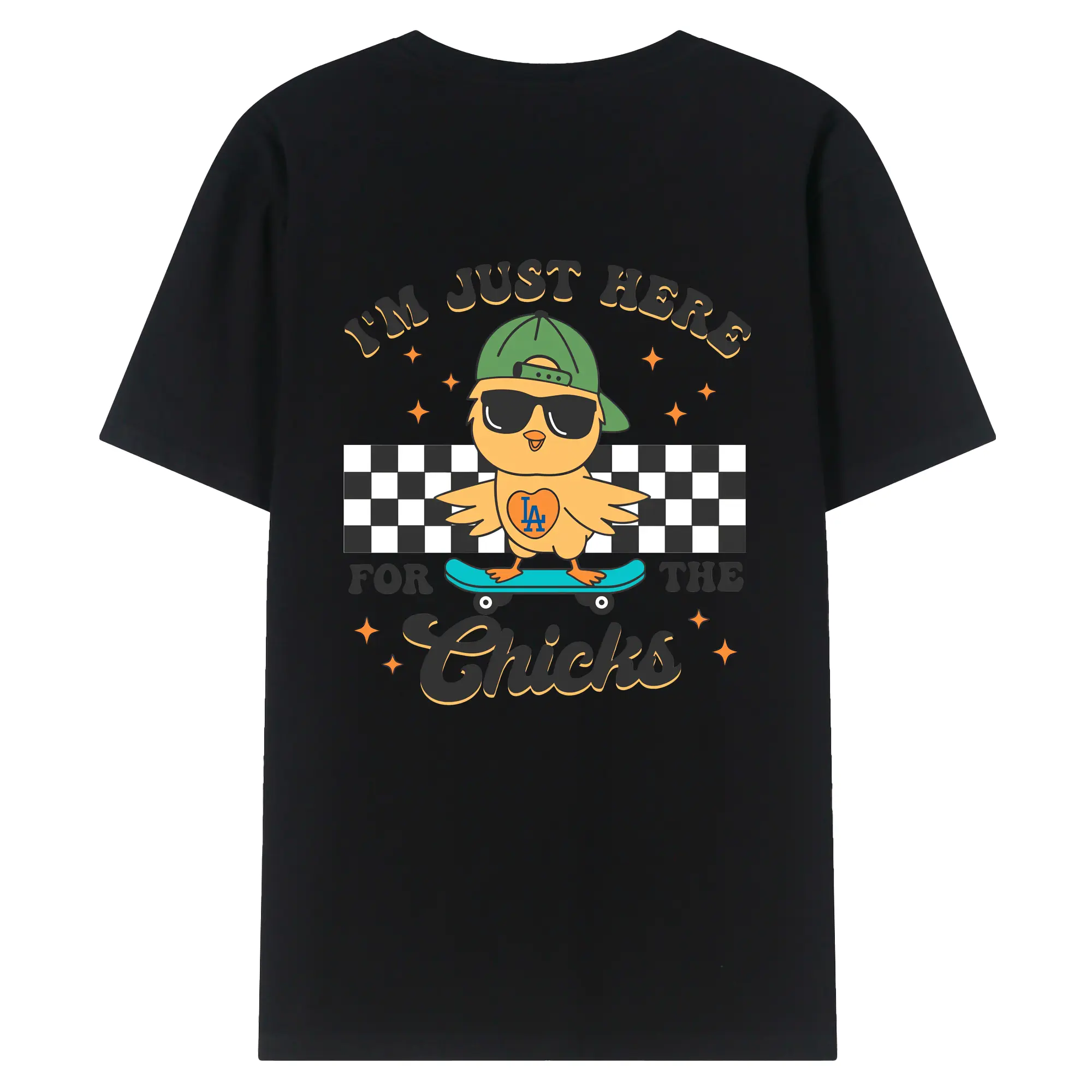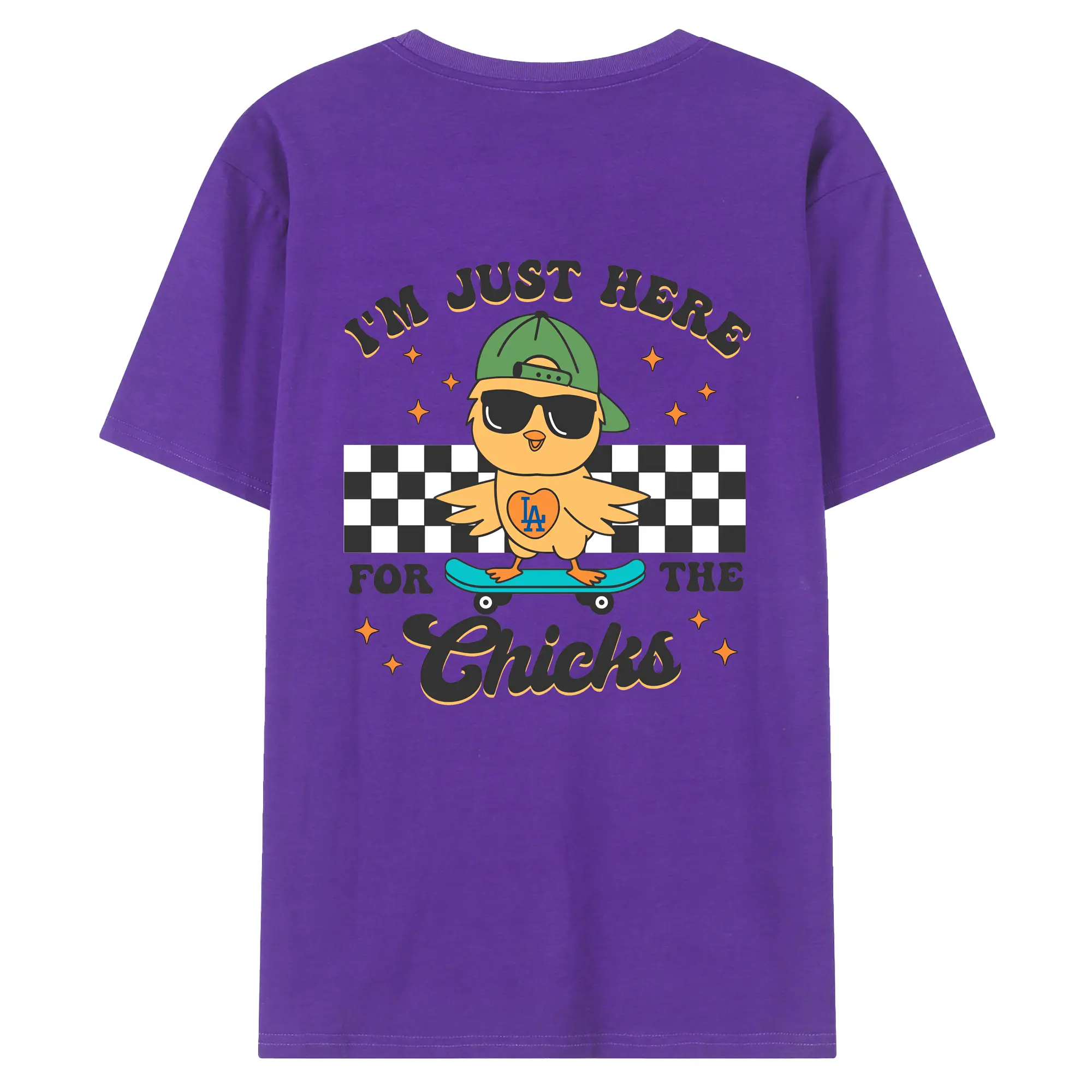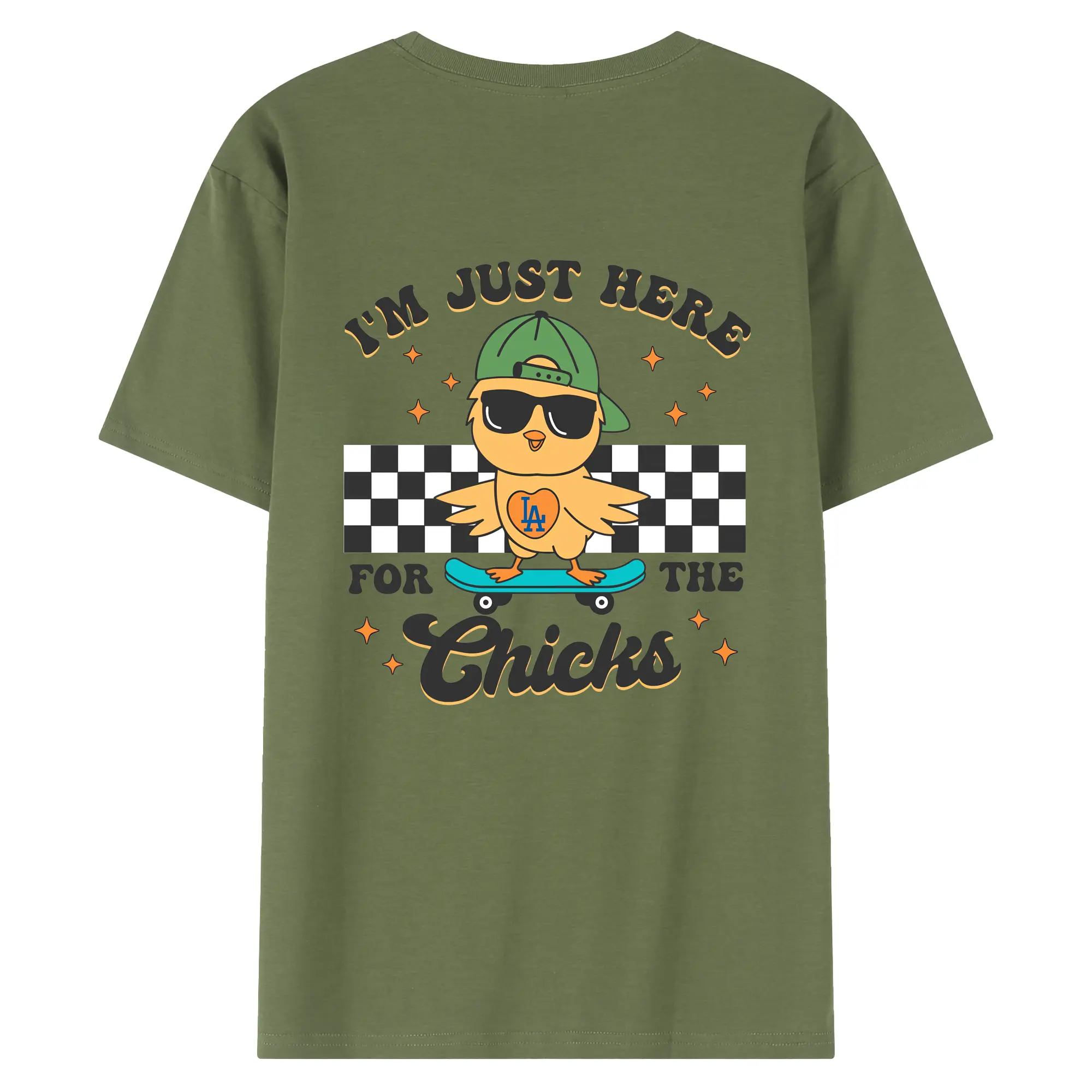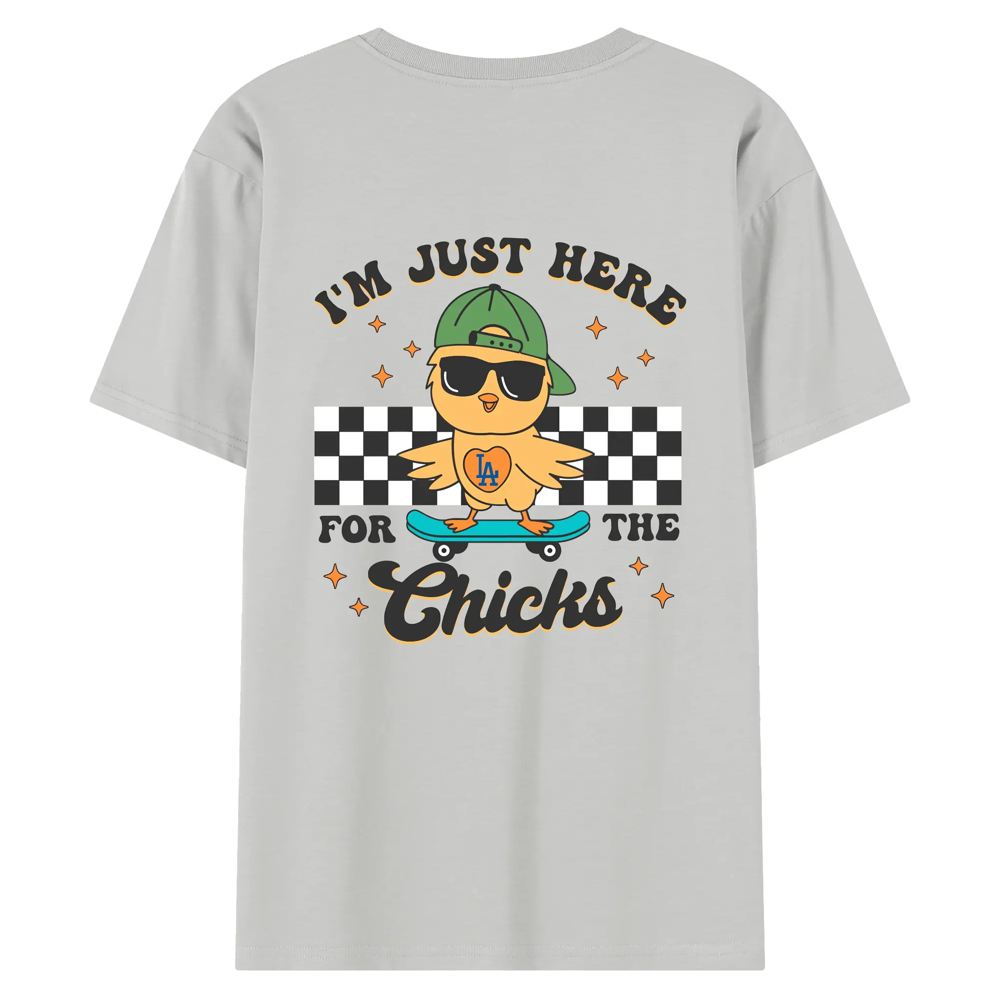 Im Just Here For The Chicks Los Angeles Dodgers - 180g Combed Cotton T-Shirt With Back Heat Transfer Print – Soft, Lightweight, Fitted Design – Stylish Casual Wear For Sports & Everyday Use