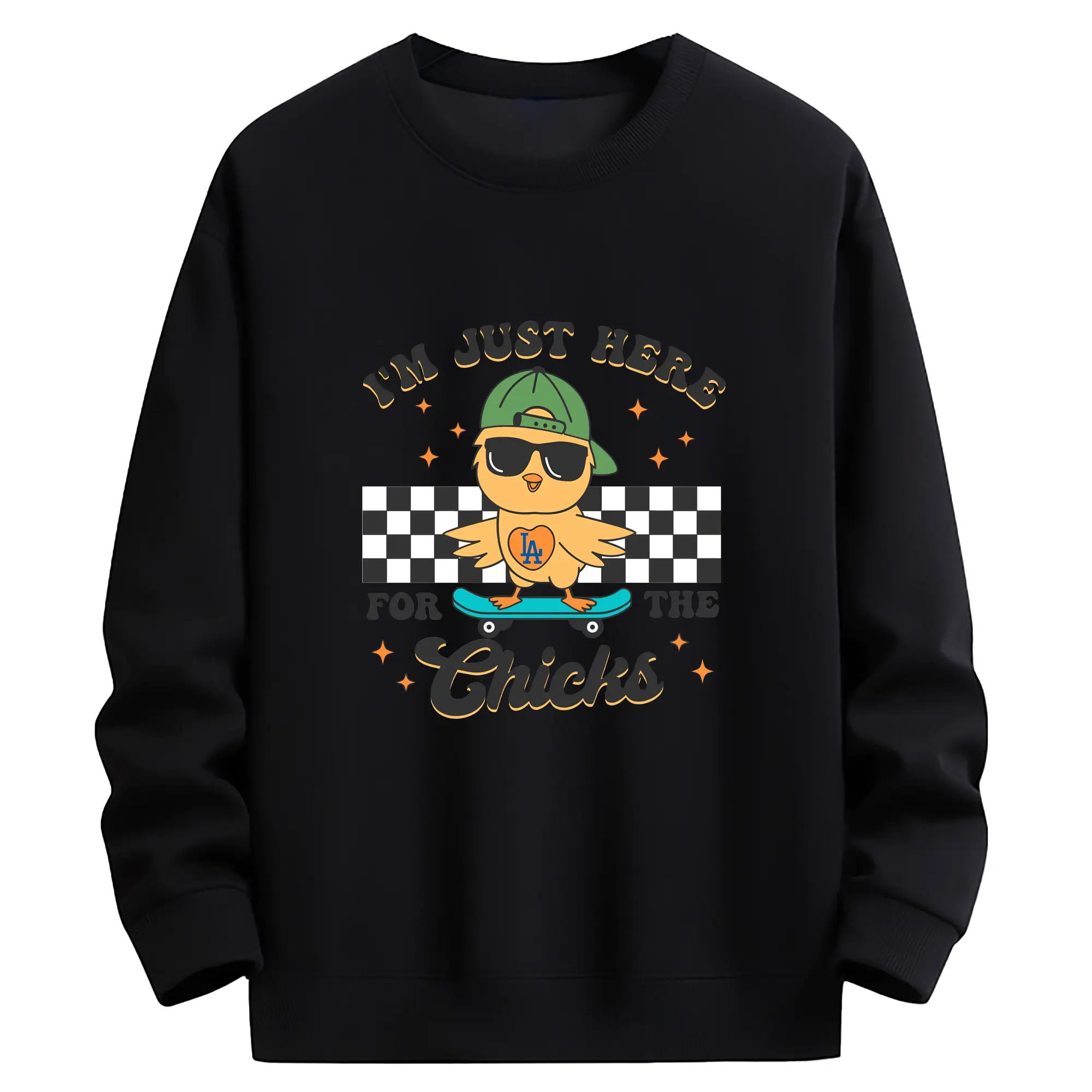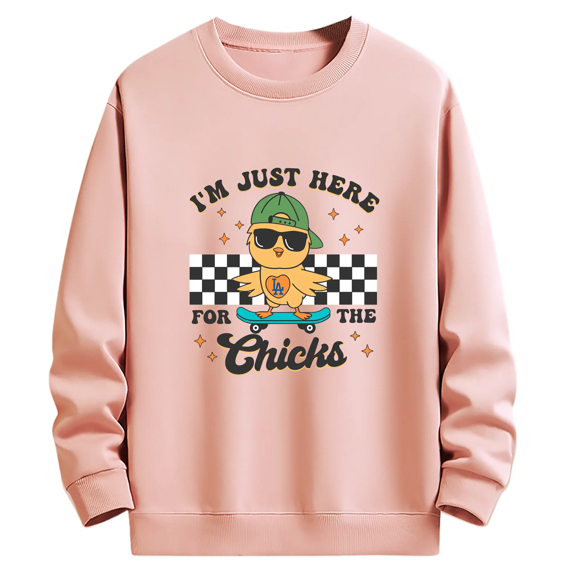 Im Just Here For The Chicks Los Angeles Dodgers - Kids Crewneck Sweatshirt With Front Heat Transfer Print – 80% Cotton 20% Polyester – Soft, Durable & Comfortable – Ideal For Sports, Casual Wear & Everyday Activities