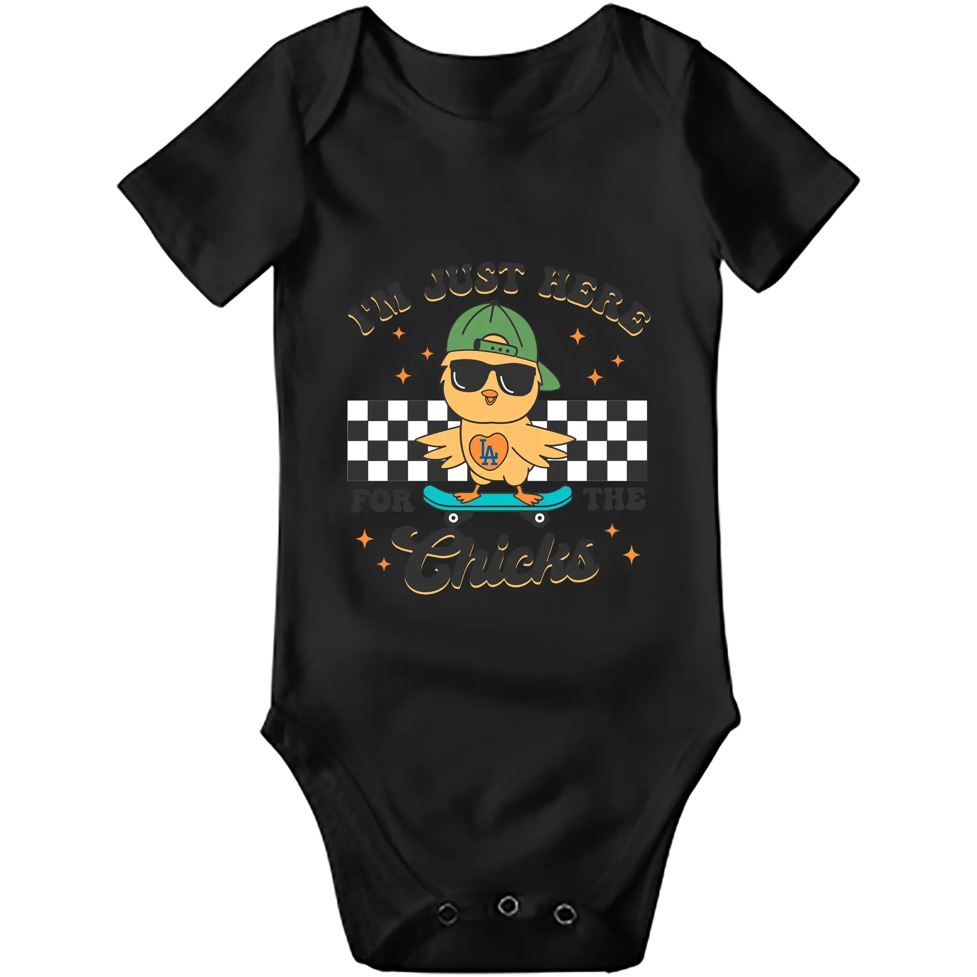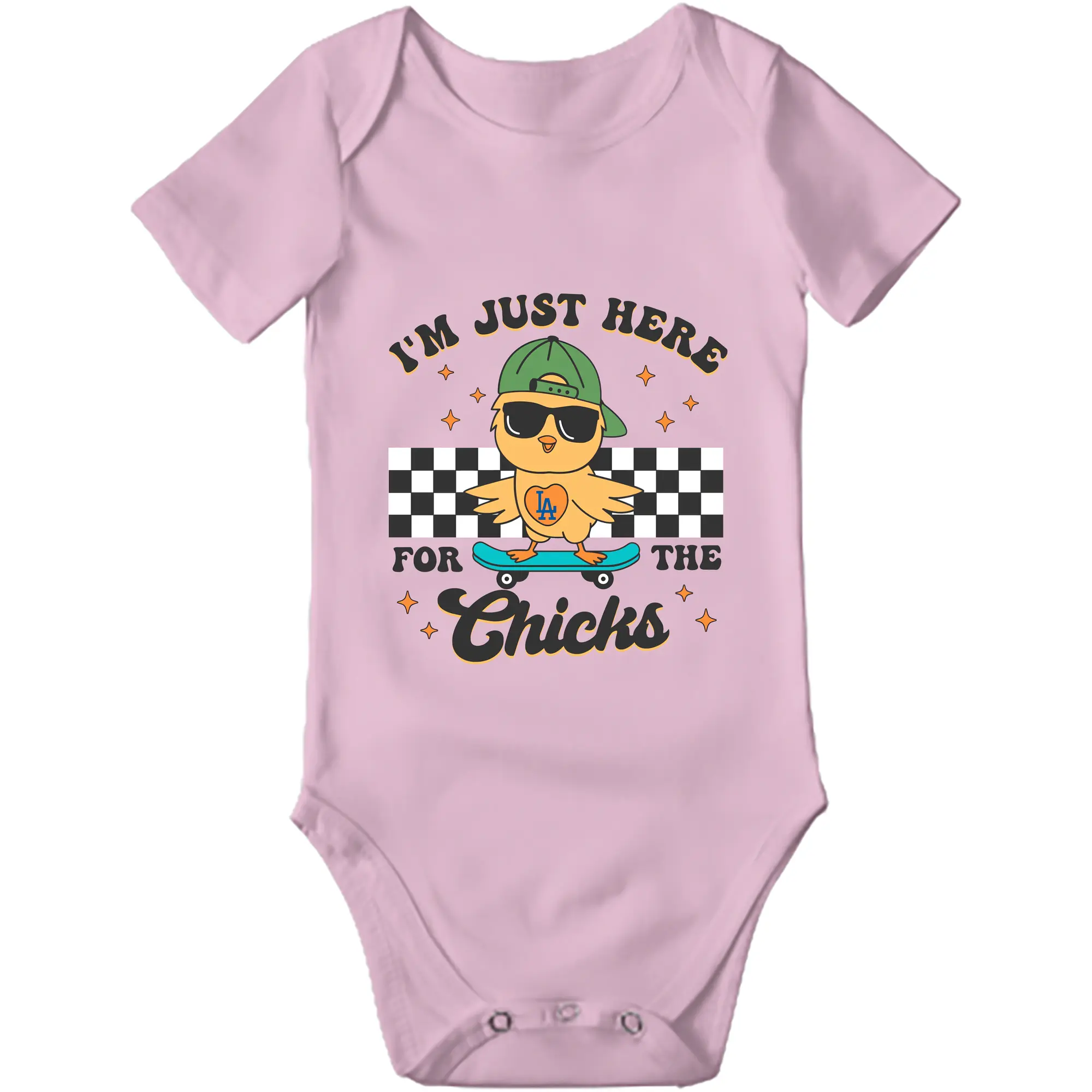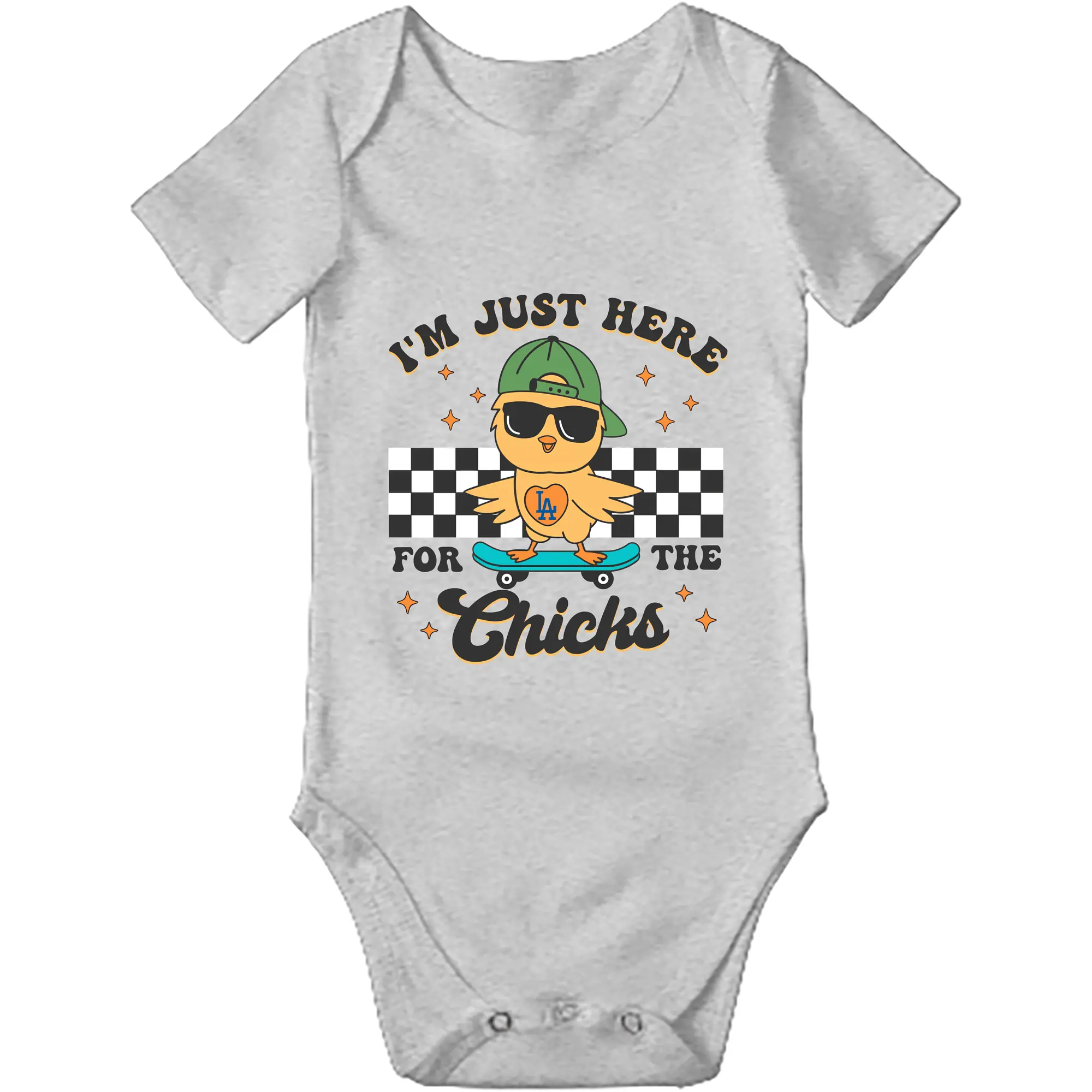Im Just Here For The Chicks Los Angeles Dodgers - Baby Short Sleeve Romper – 100% Cotton Soft & Breathable Digital Print Onesie With Easy Snap Closure And Envelope Shoulder – Comfortable For Daily Wear & Travel