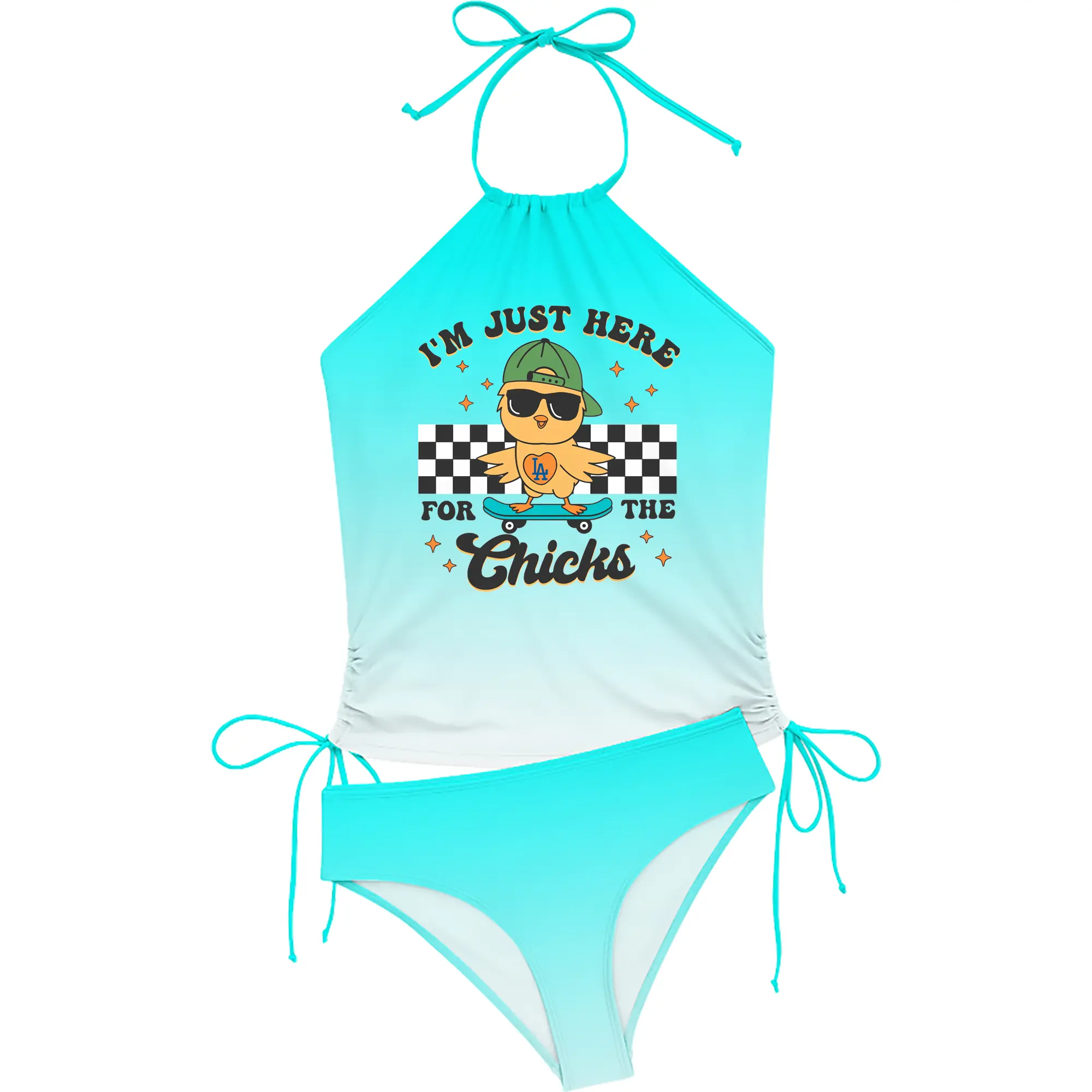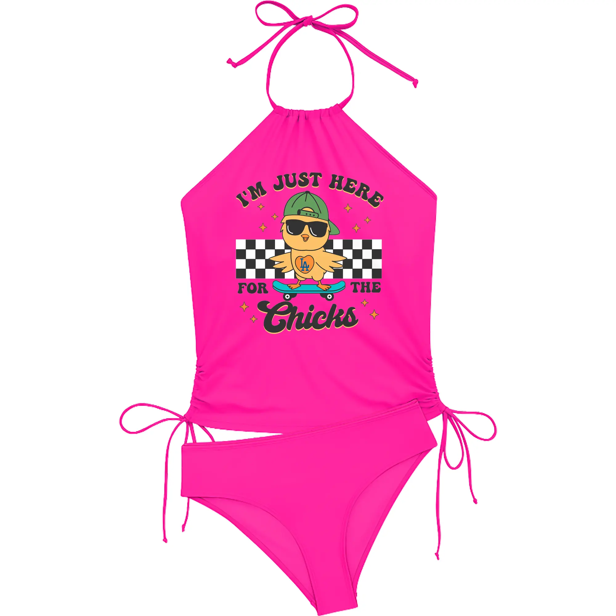 Im Just Here For The Chicks Los Angeles Dodgers - Women's Heat Transfer Printed Two-Piece Bikini Set – Sexy One-Shoulder Top & Triangle Bottom, Soft Nylon-Spandex – Perfect for Beach, Pool & Vacation