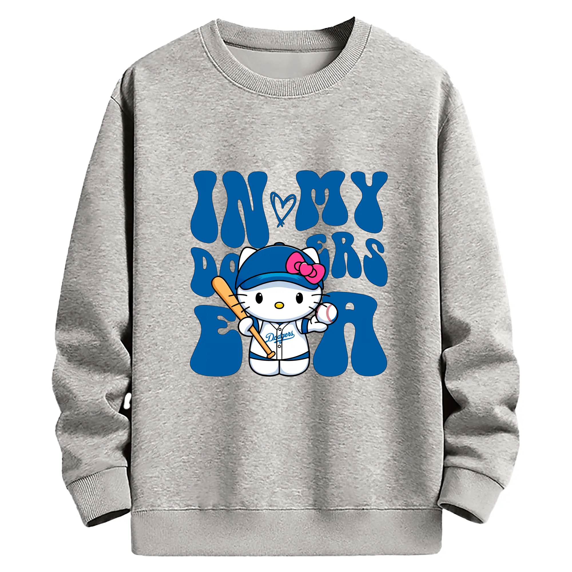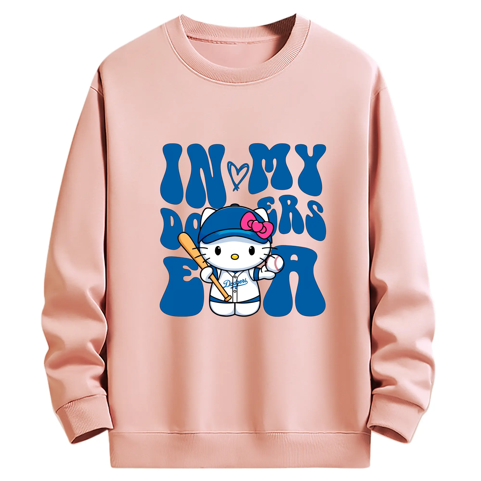 In My Dodgers Era Hello Kitty Baseball - Kids Crewneck Sweatshirt With Front Heat Transfer Print – 80% Cotton 20% Polyester – Soft, Durable & Comfortable – Ideal For Sports, Casual Wear & Everyday Activities
