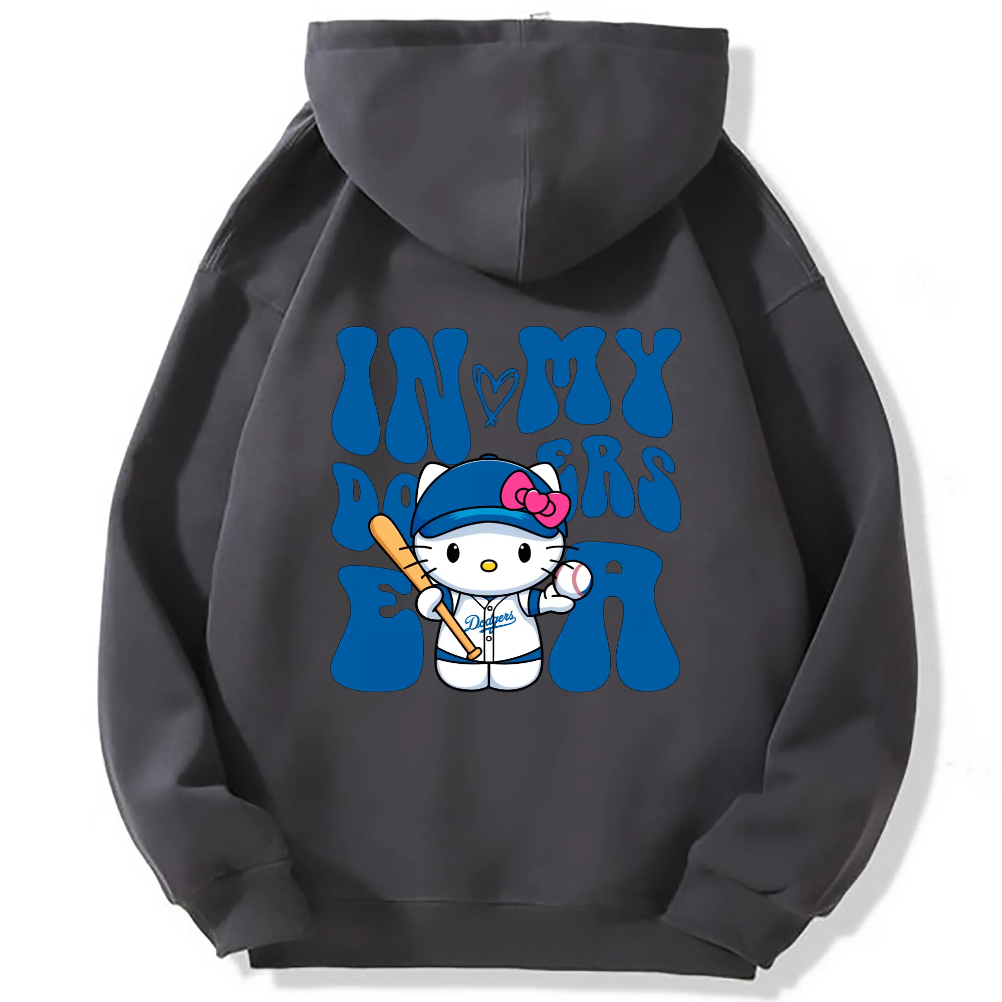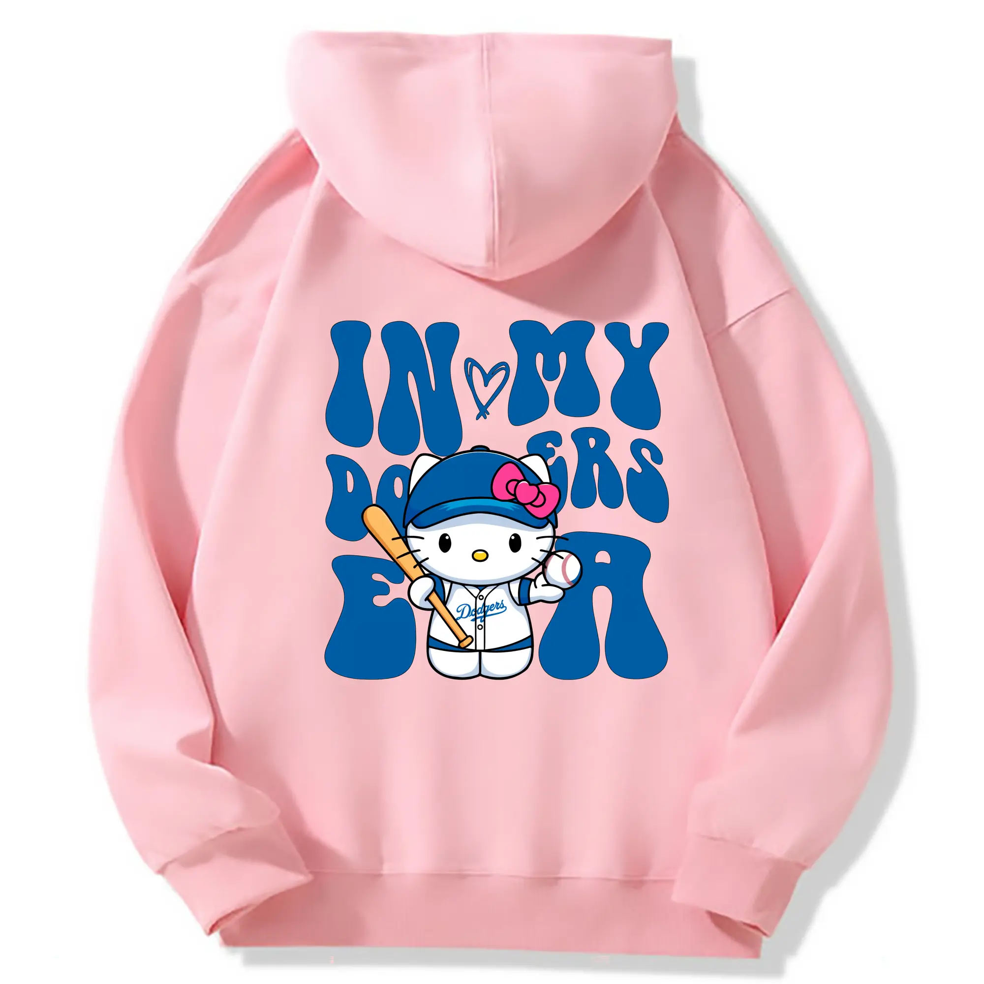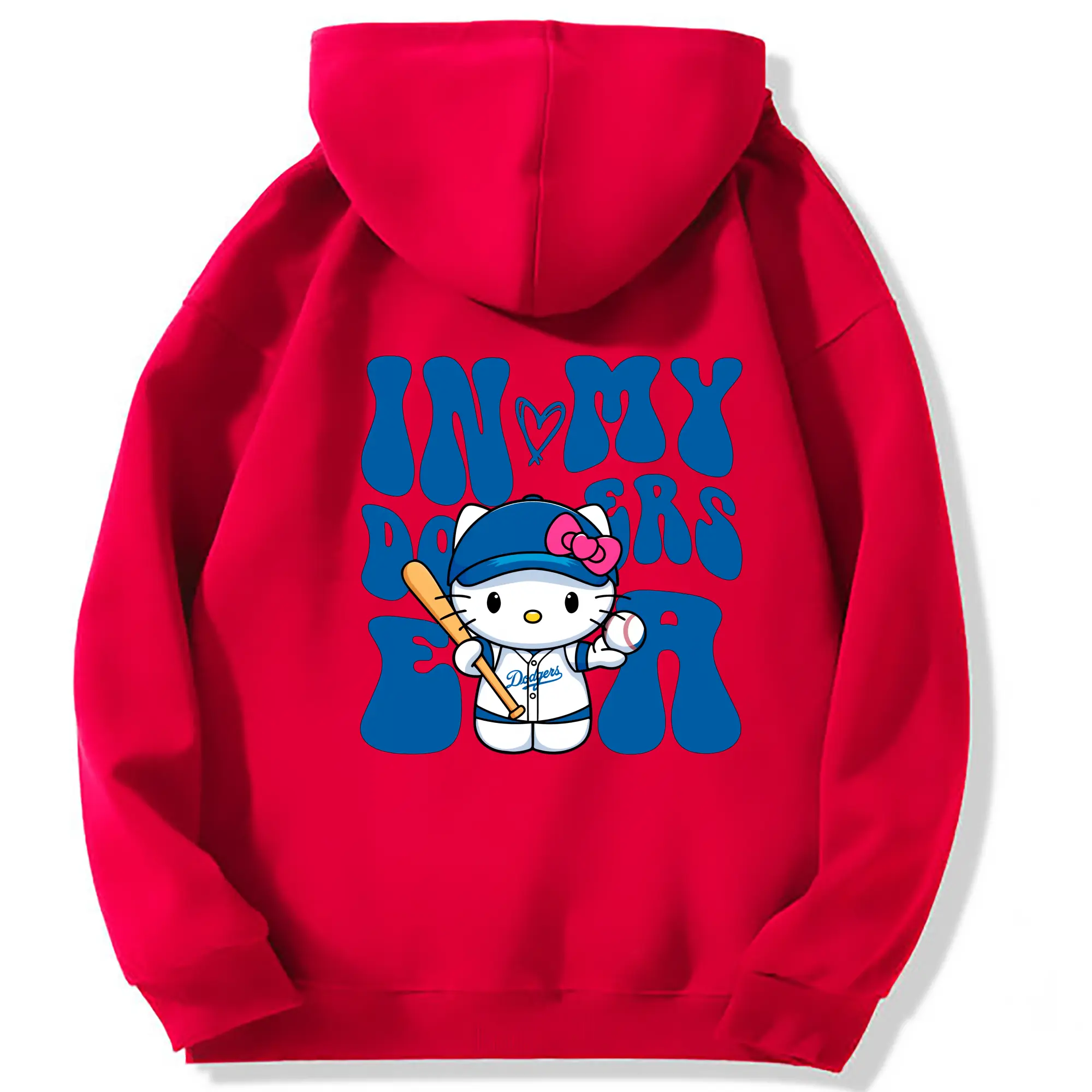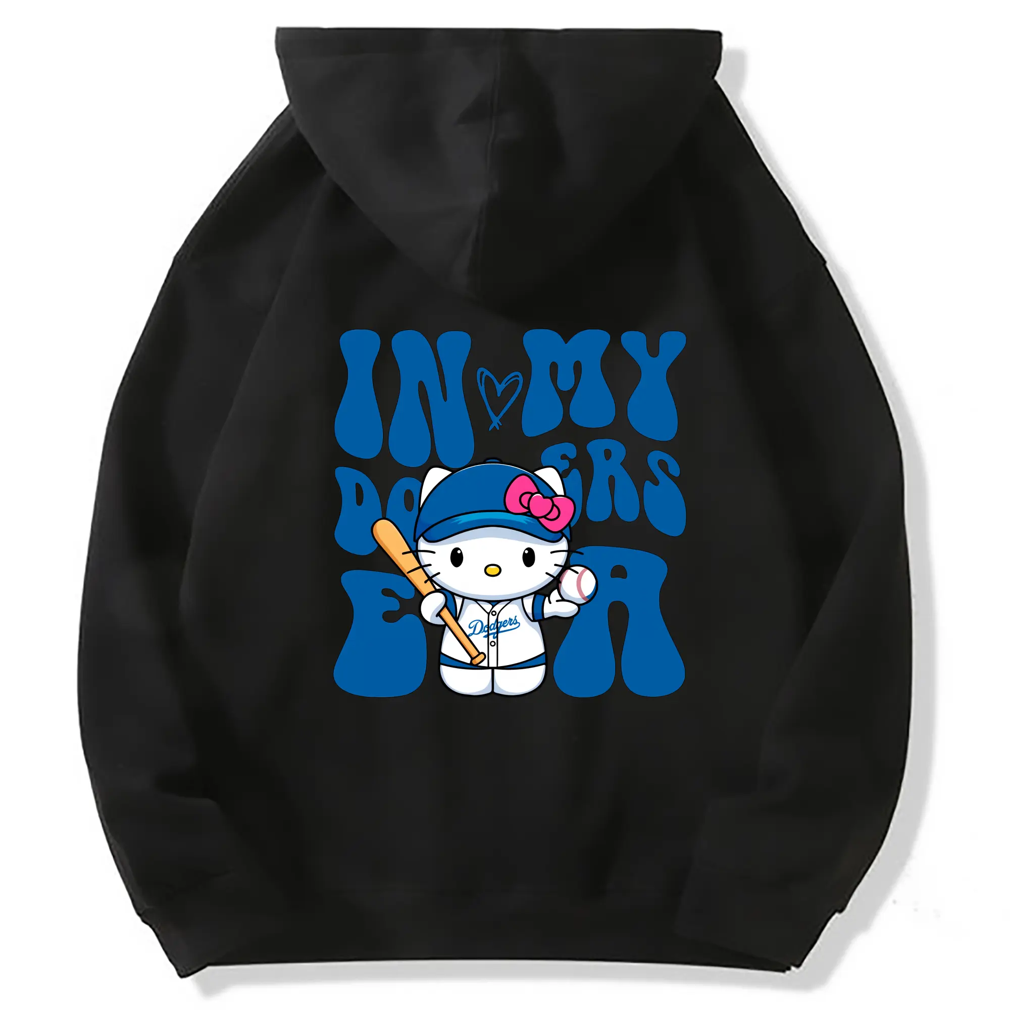 In My Dodgers Era Hello Kitty Baseball - Premium Hoodie With Back Heat Transfer Print – 56.1% Cotton, 43.9% Polyester – Soft, Durable & Stylish – Perfect For Sports, Casual & Everyday Wear