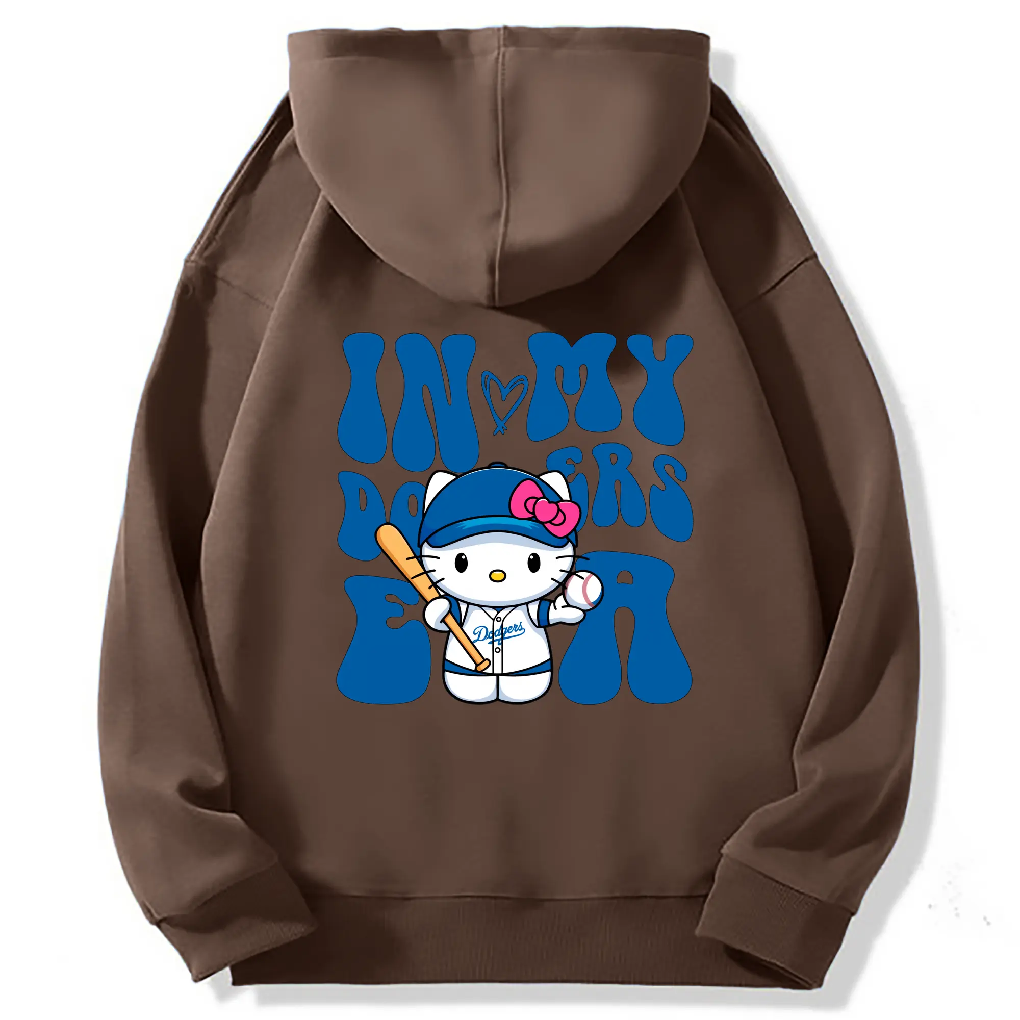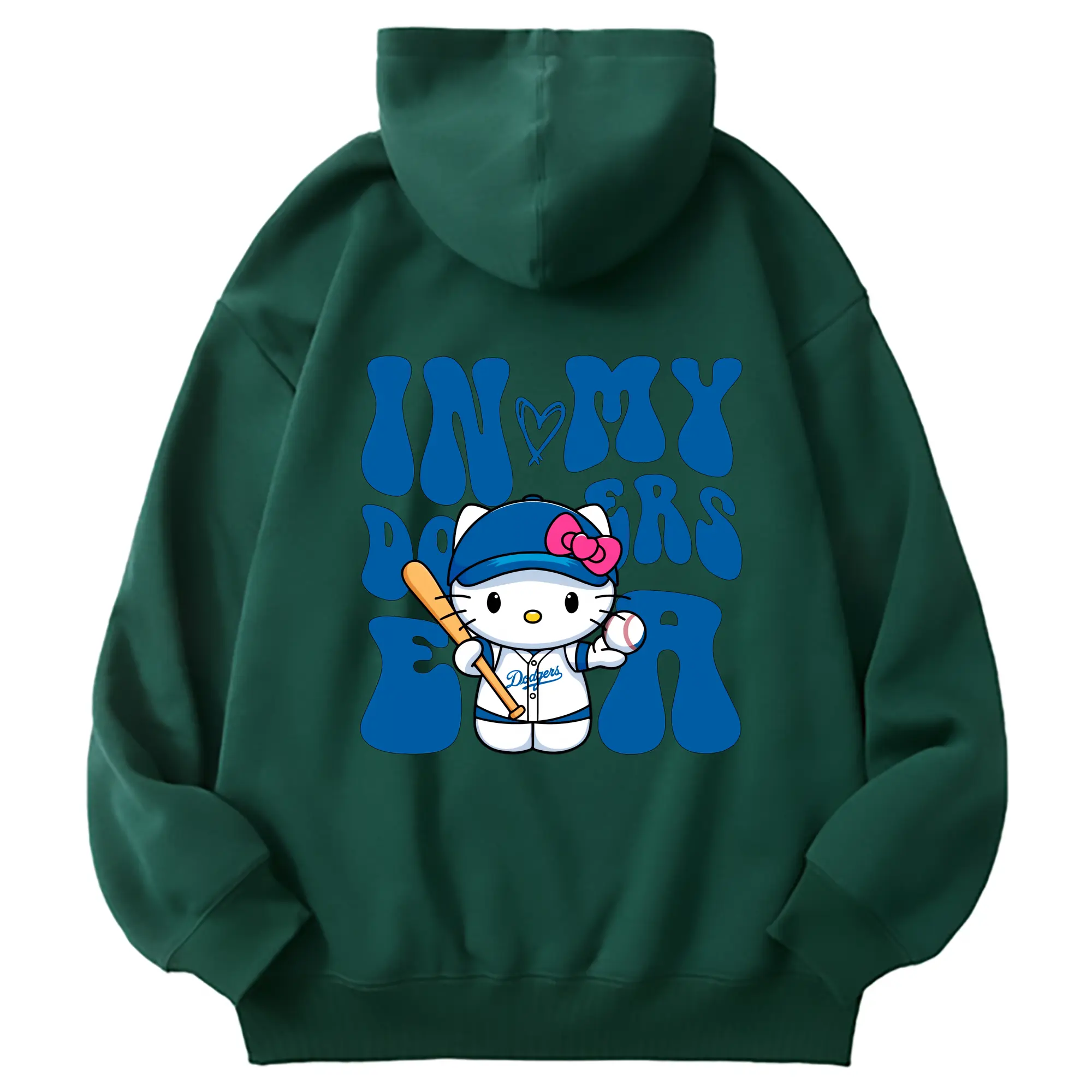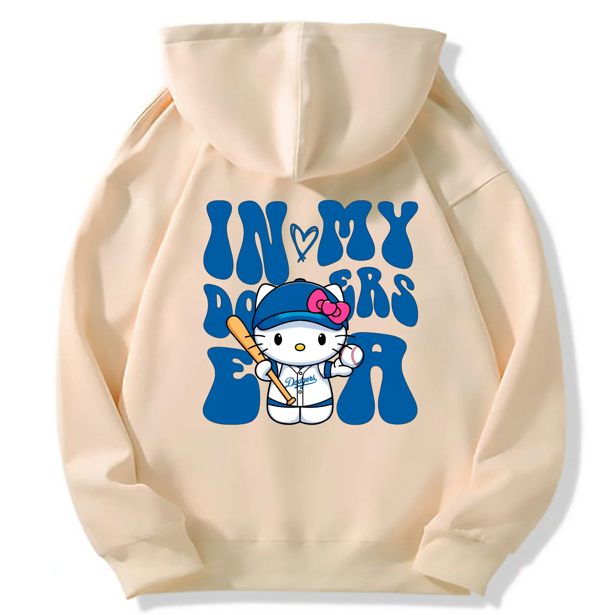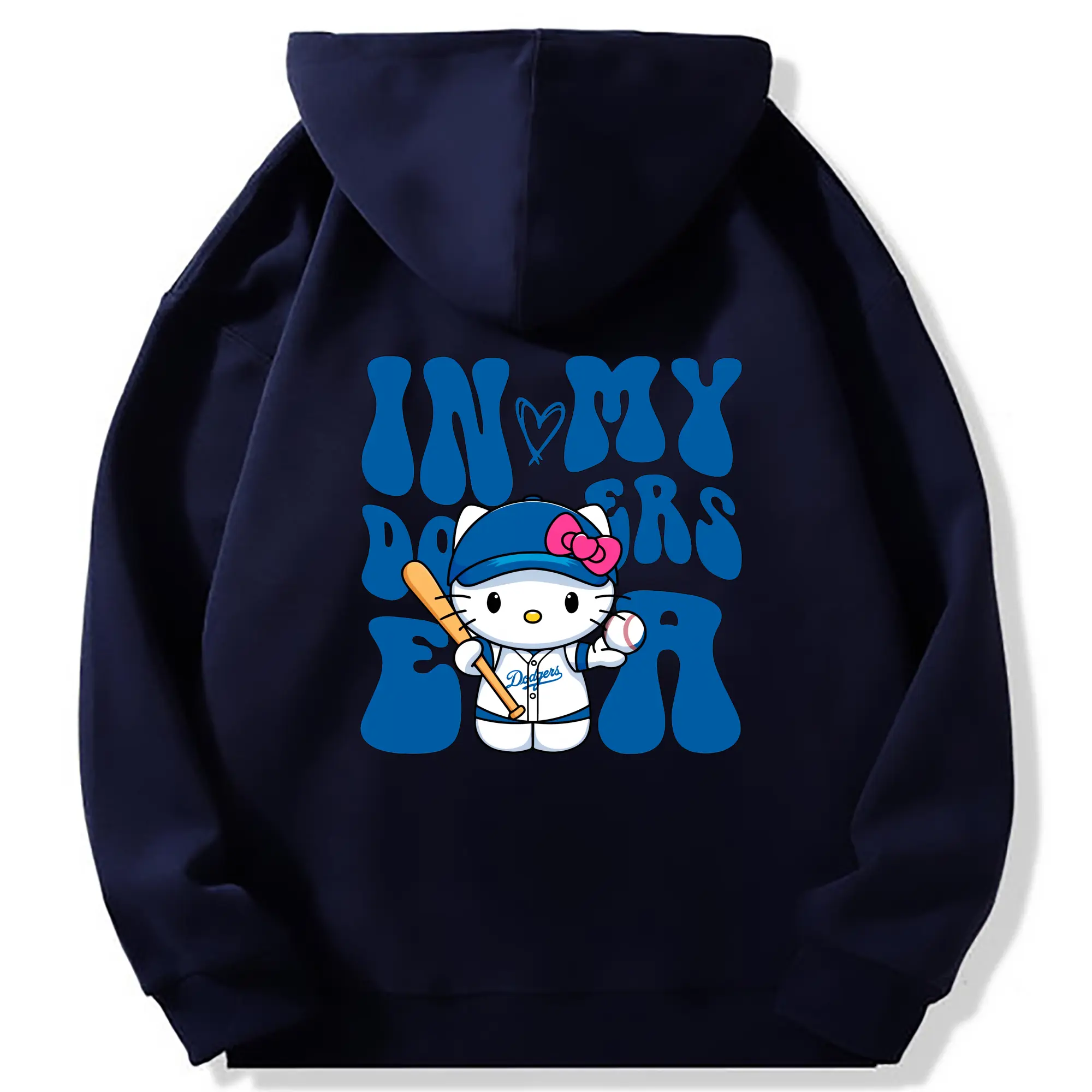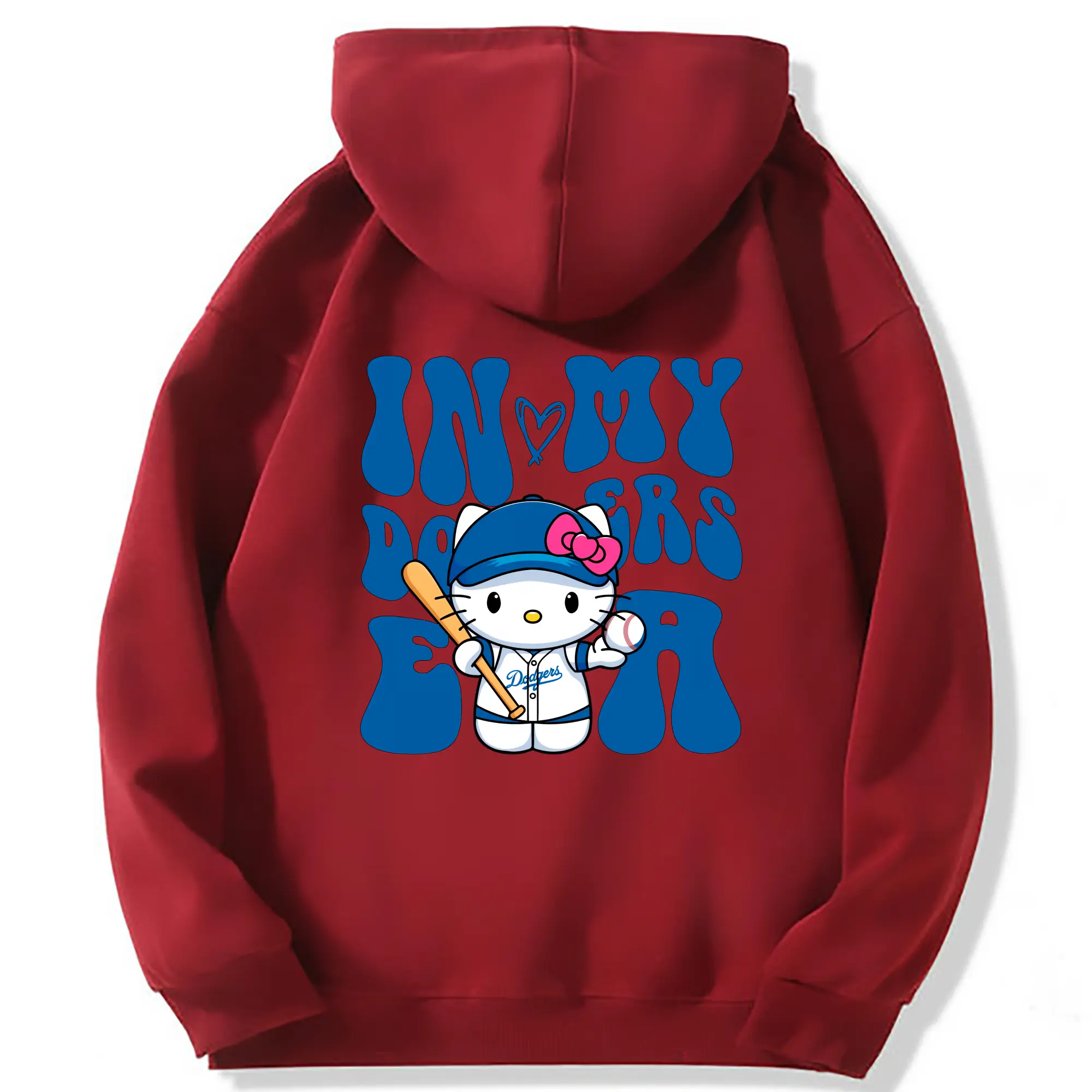 In My Dodgers Era Hello Kitty Baseball - Premium Hoodie With Back Heat Transfer Print – 56.1% Cotton, 43.9% Polyester – Soft, Durable & Stylish – Perfect For Sports, Casual & Everyday Wear