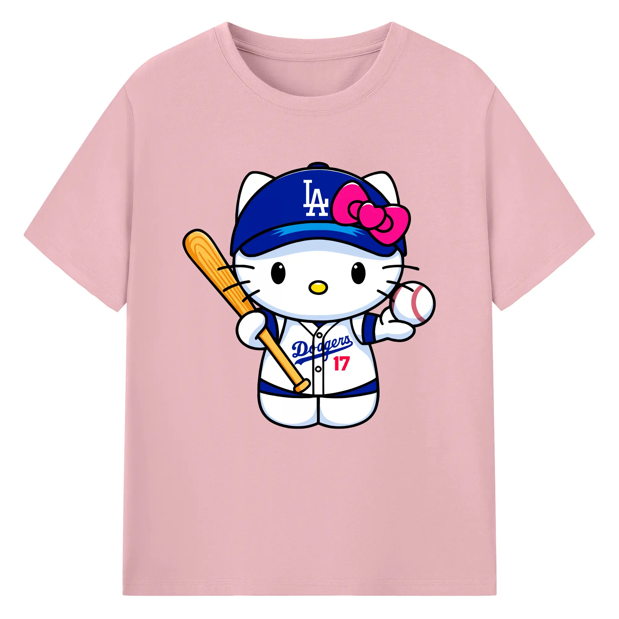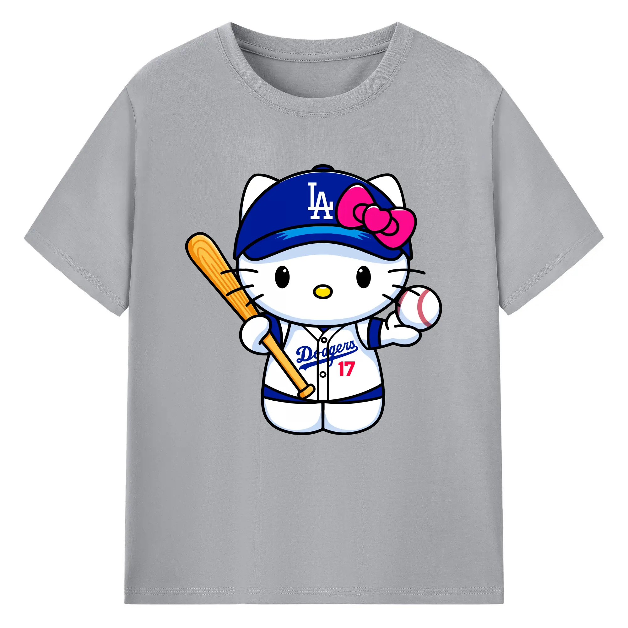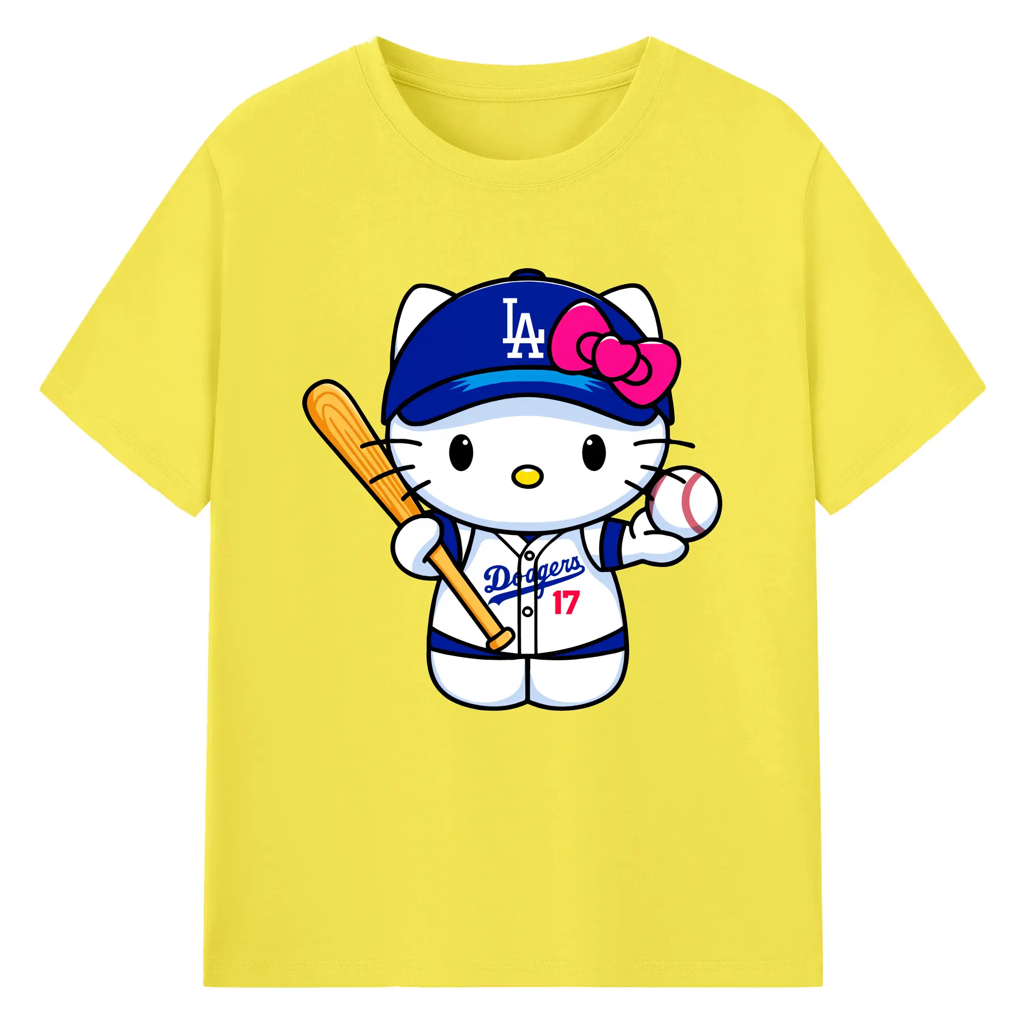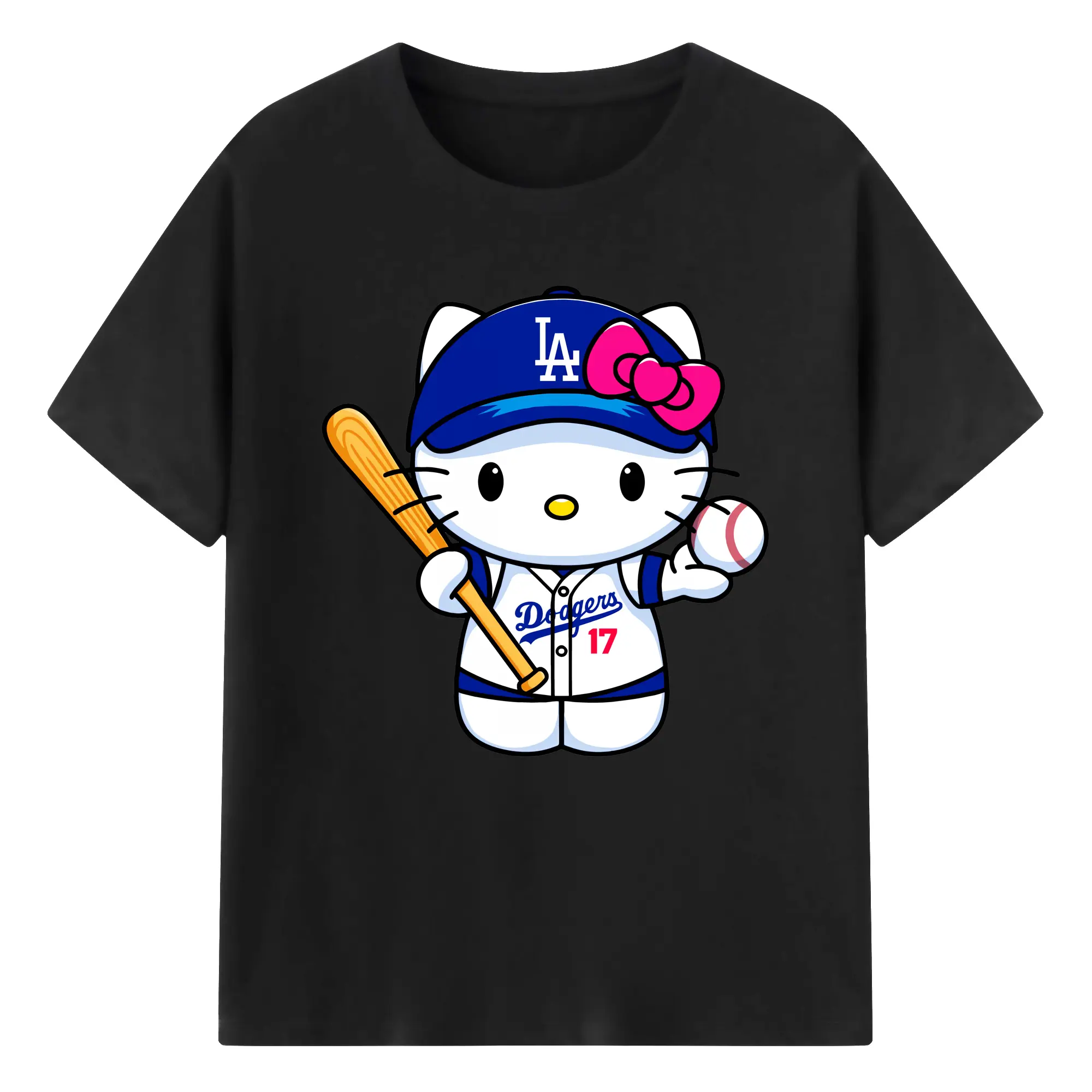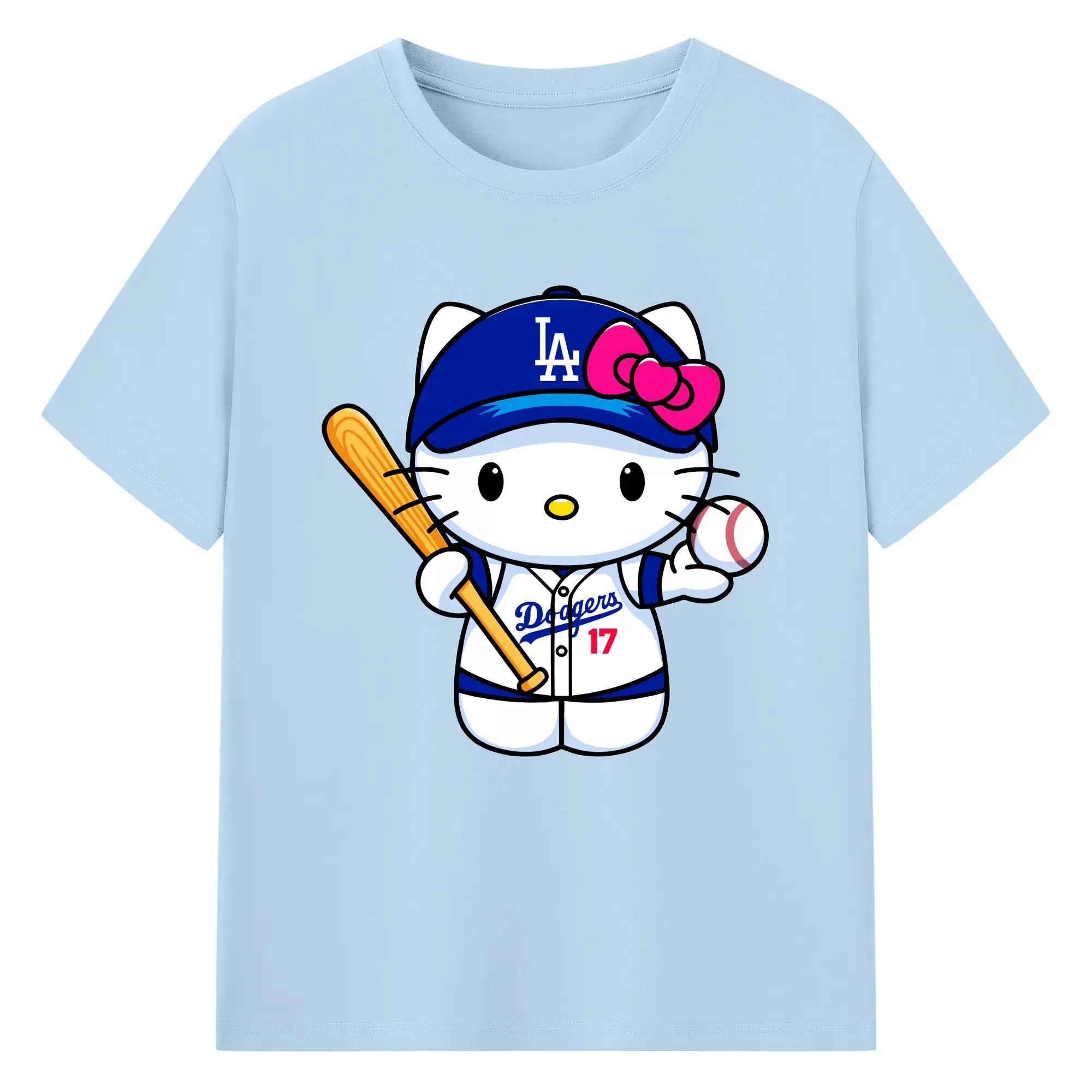 LA Dodgers Hello Kitty MLB Team - 180g Cotton T-Shirt With Front Heat Transfer Print – Soft, Lightweight, Fitted Design – Comfortable Casual Wear For Sports & Everyday Use