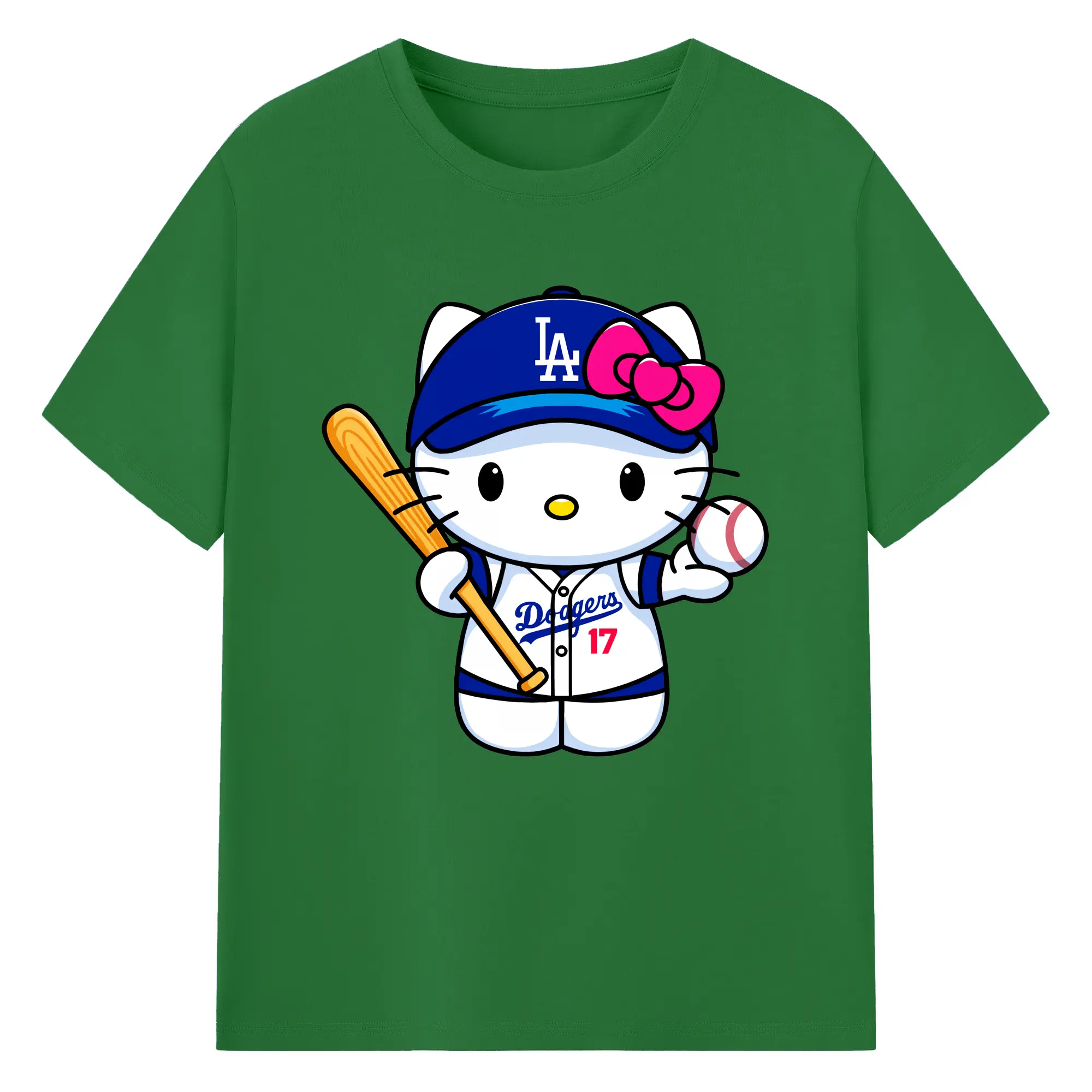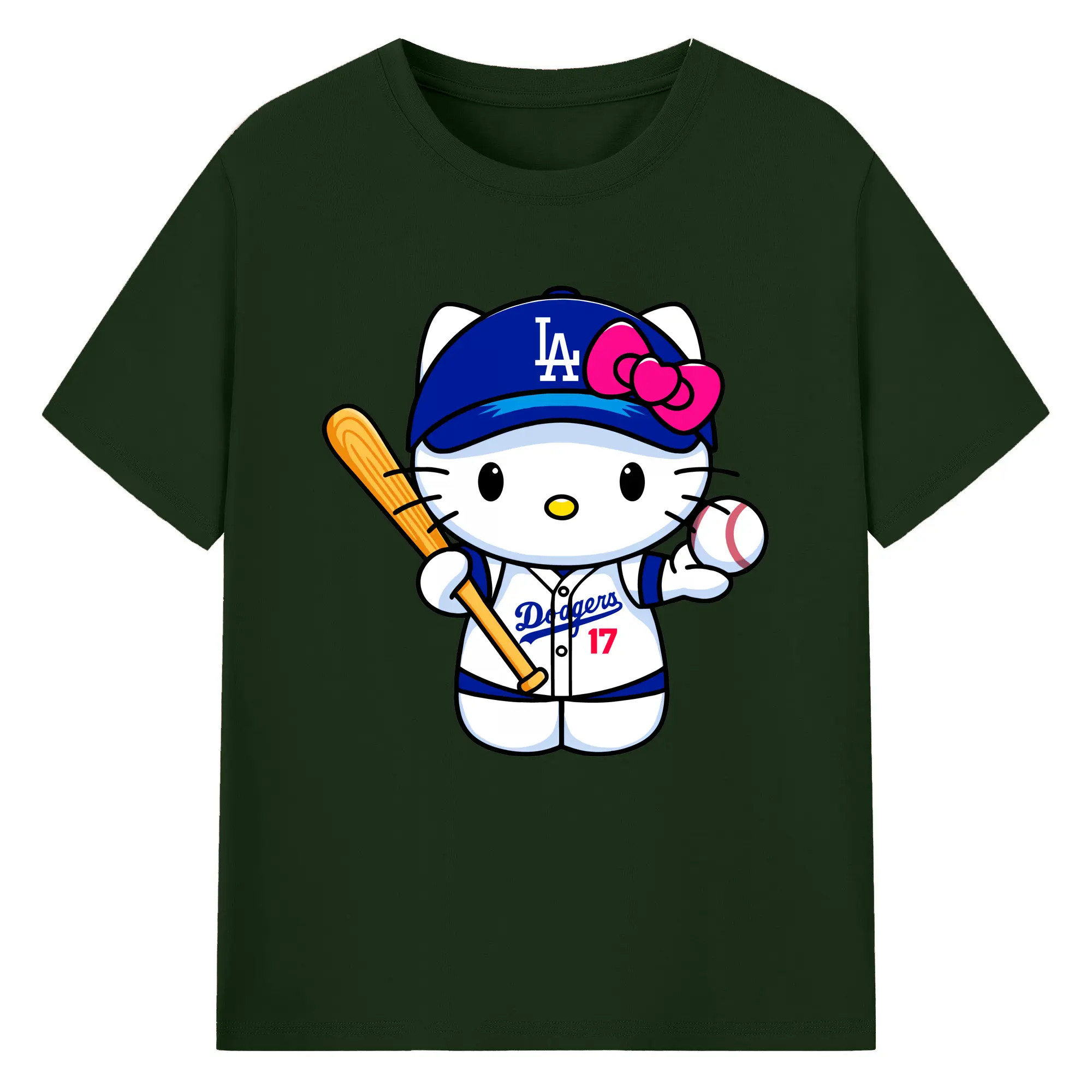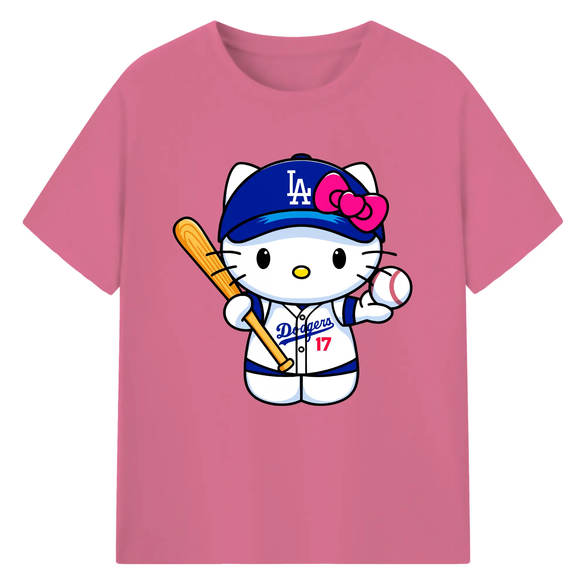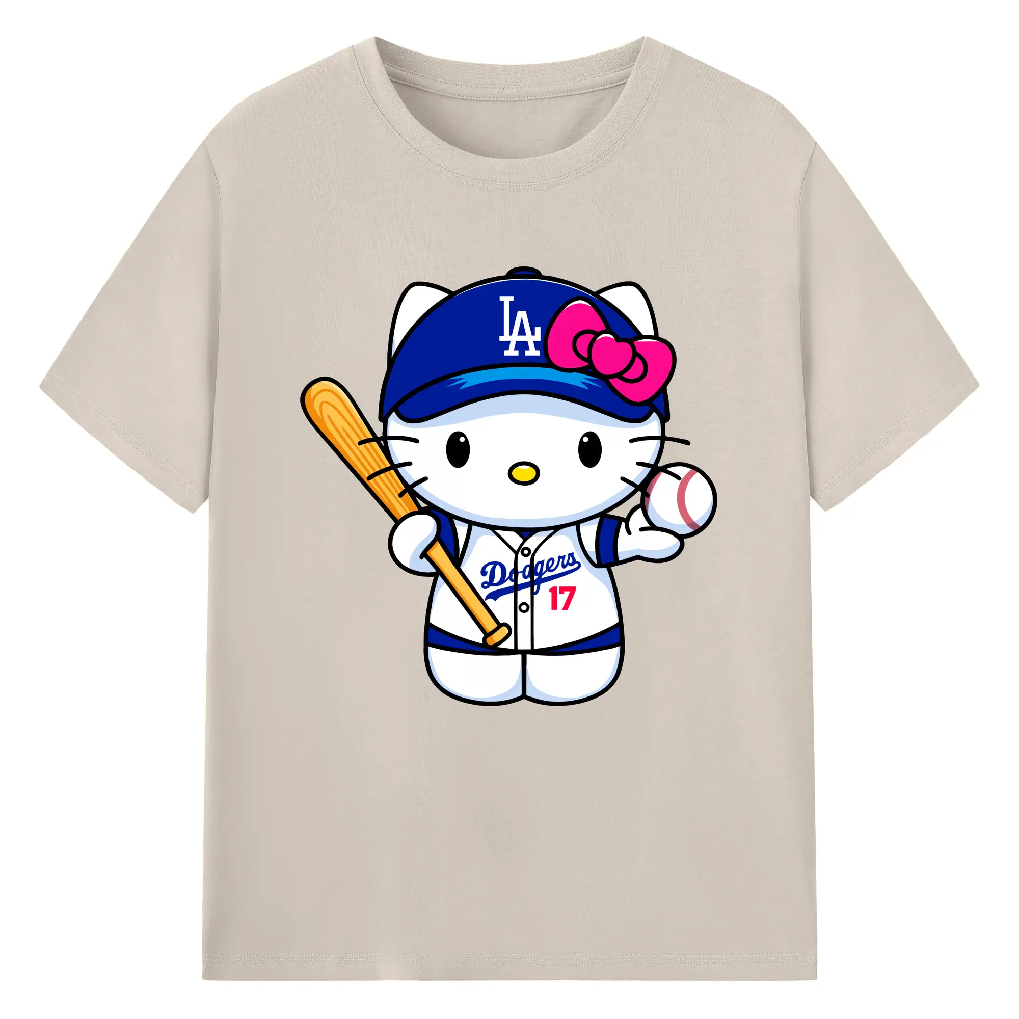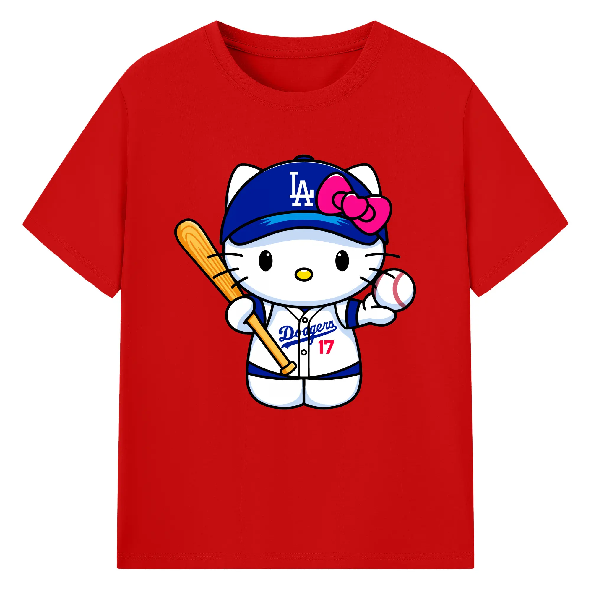 LA Dodgers Hello Kitty MLB Team - 180g Cotton T-Shirt With Front Heat Transfer Print – Soft, Lightweight, Fitted Design – Comfortable Casual Wear For Sports & Everyday Use
