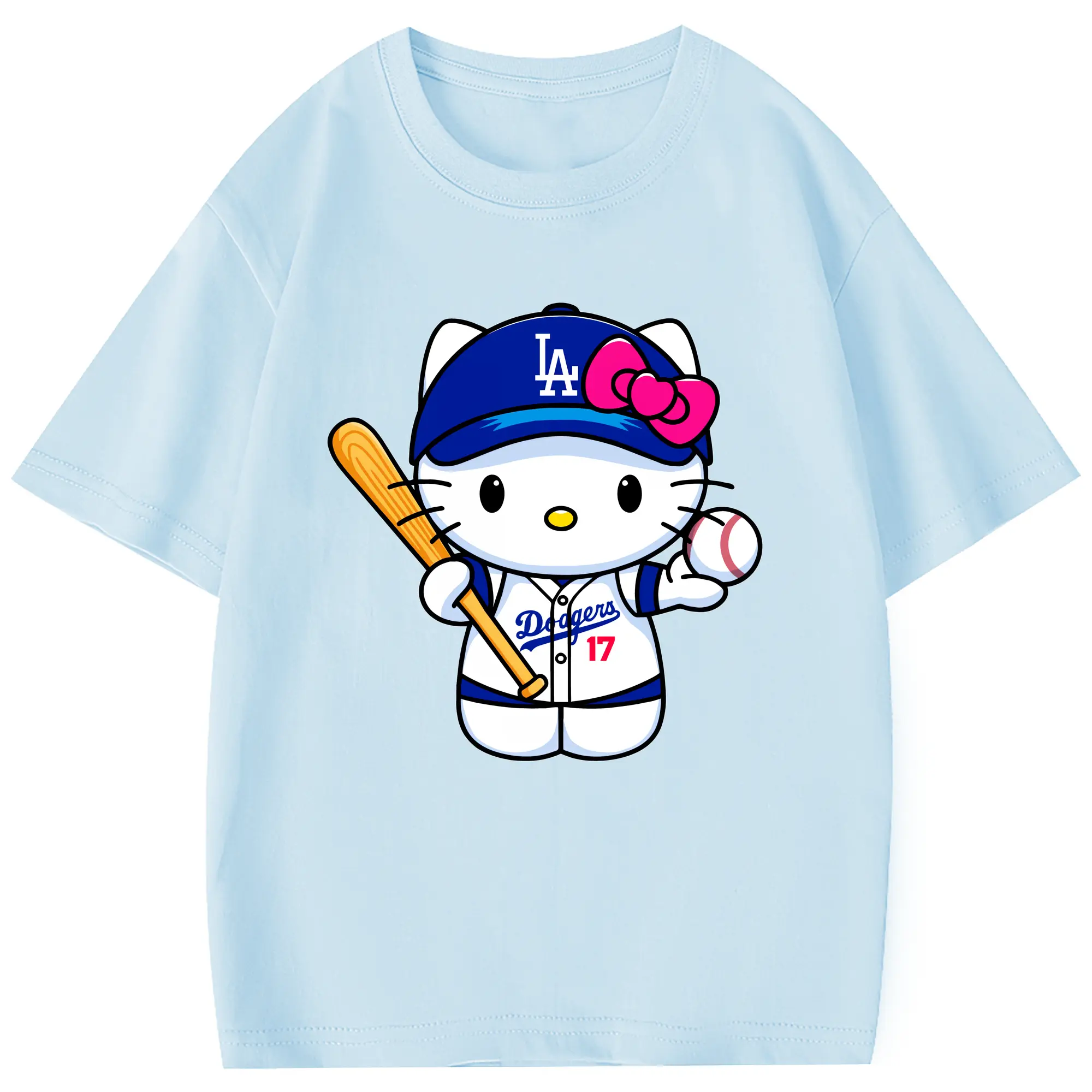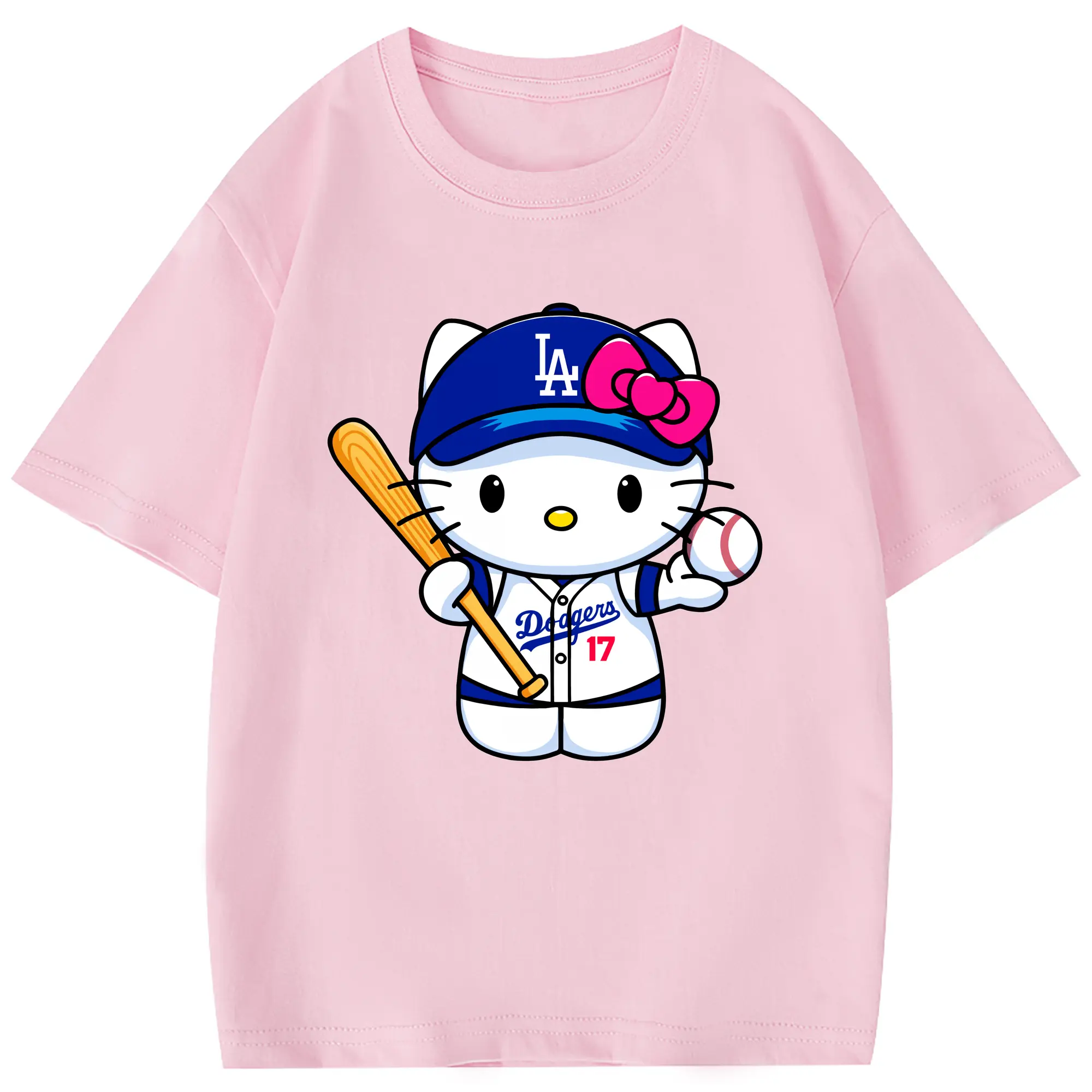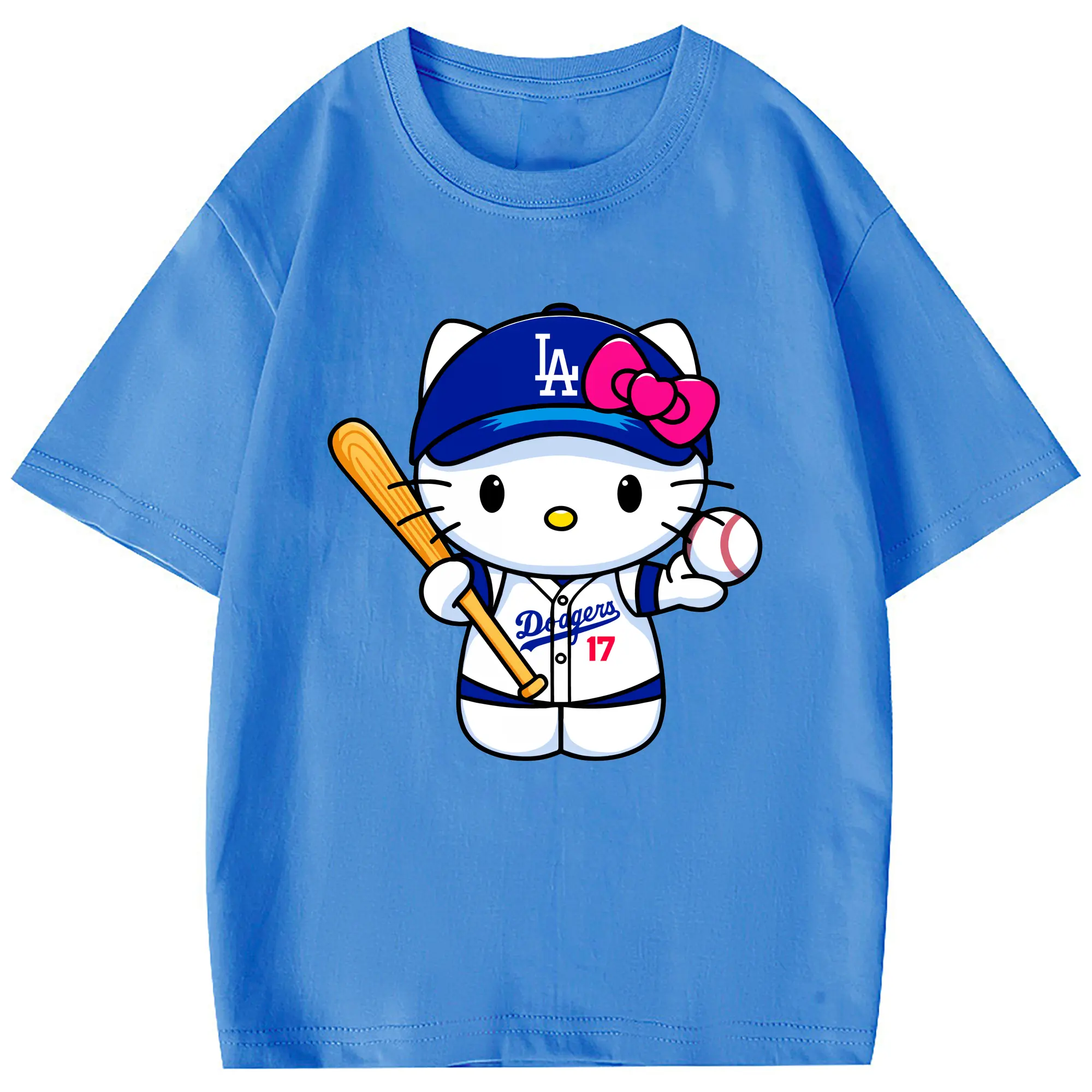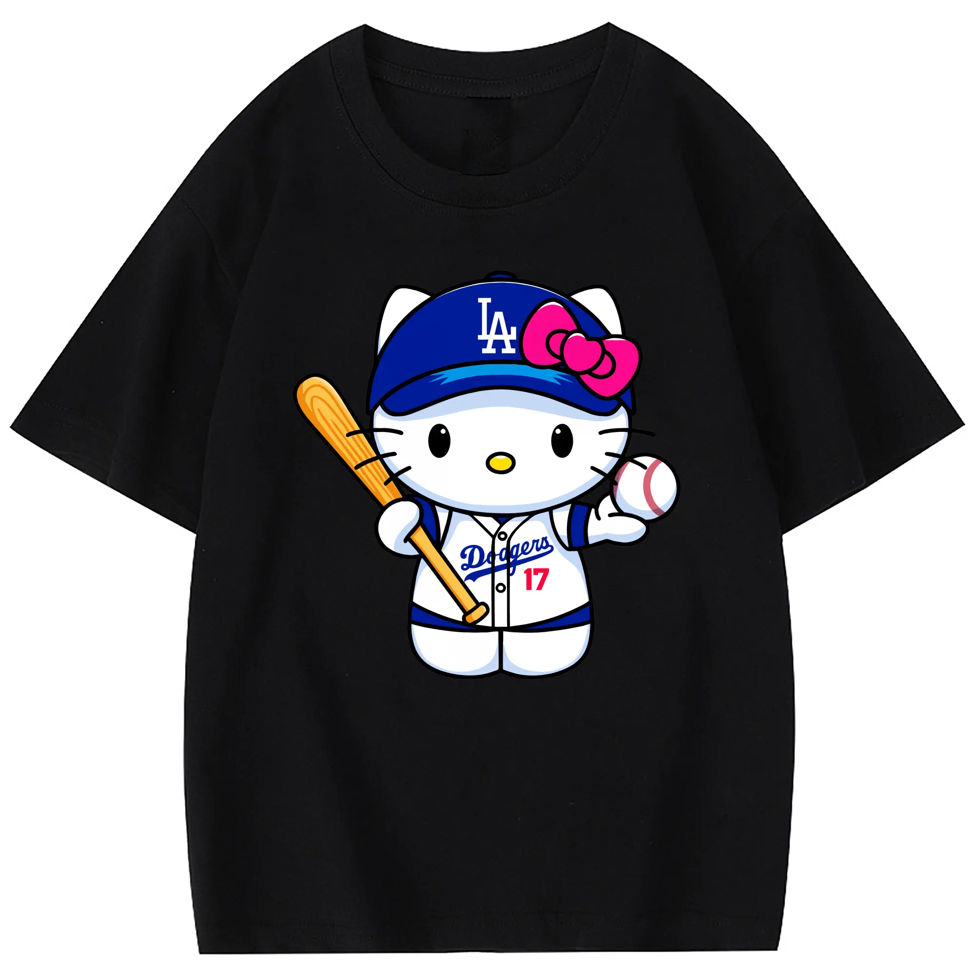 LA Dodgers Hello Kitty MLB Team - Combed Cotton Kids T-Shirt 180g With Front Heat Transfer Print – Soft, Lightweight, Side-Seamed Design – Stylish And Comfortable Casual Wear For Everyday Activities
