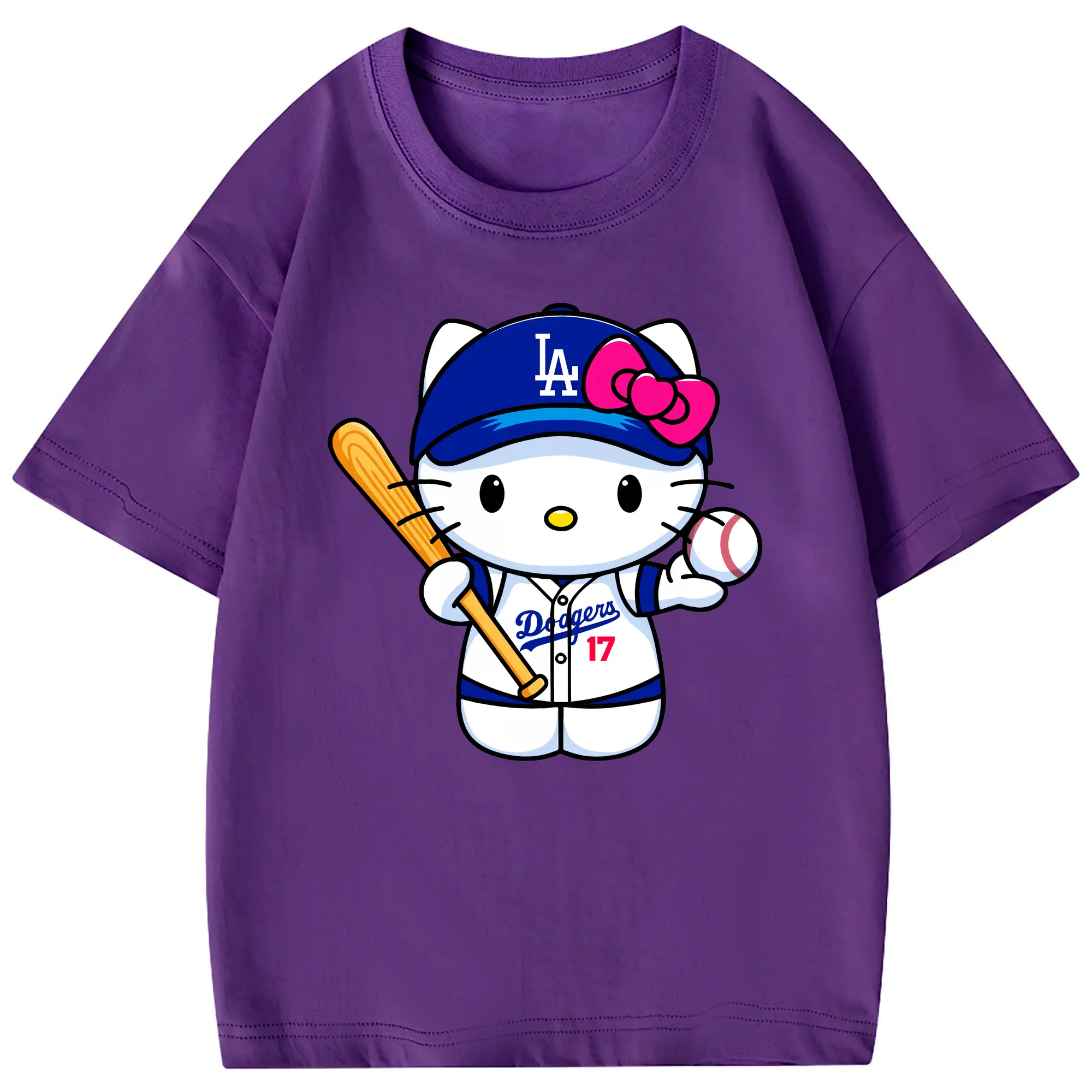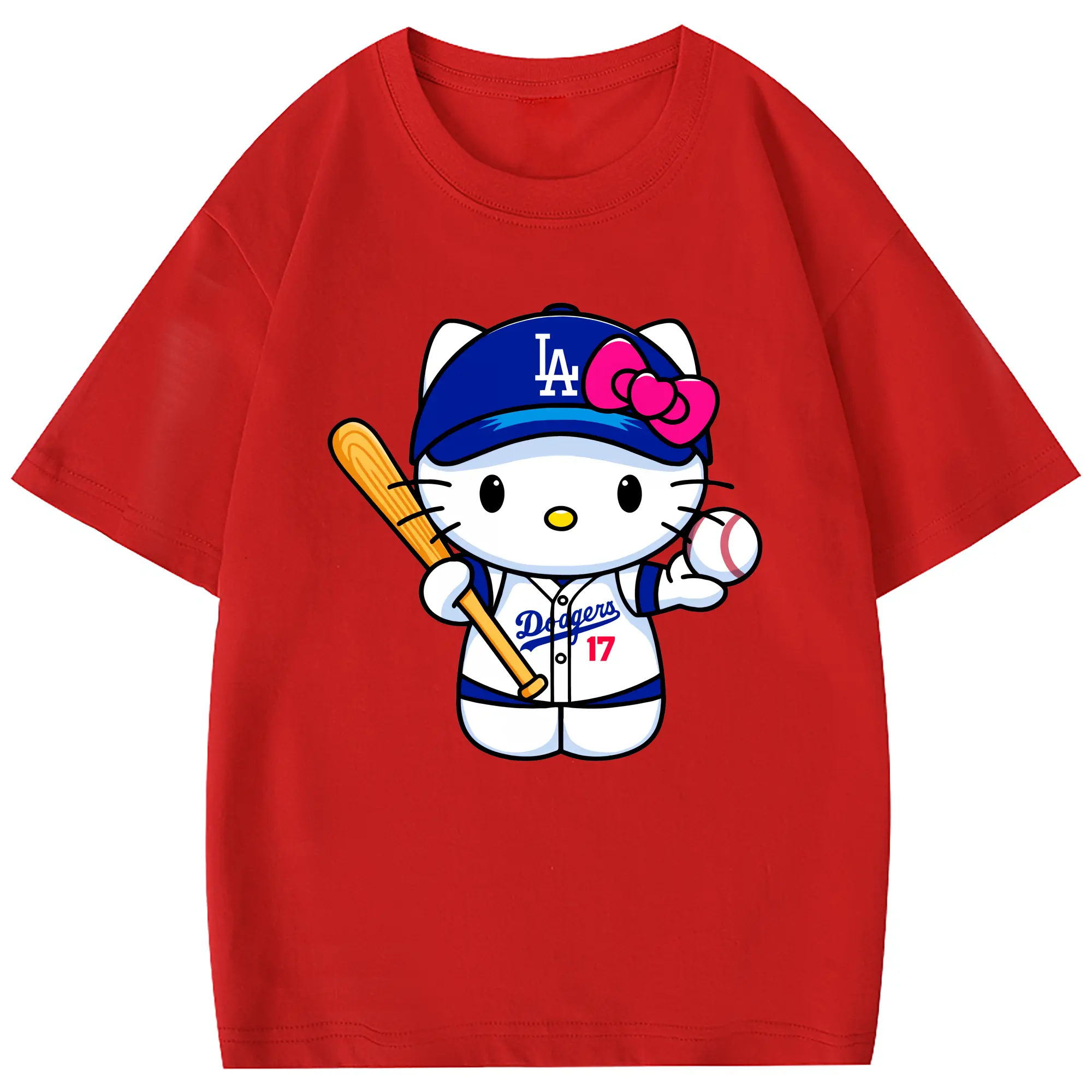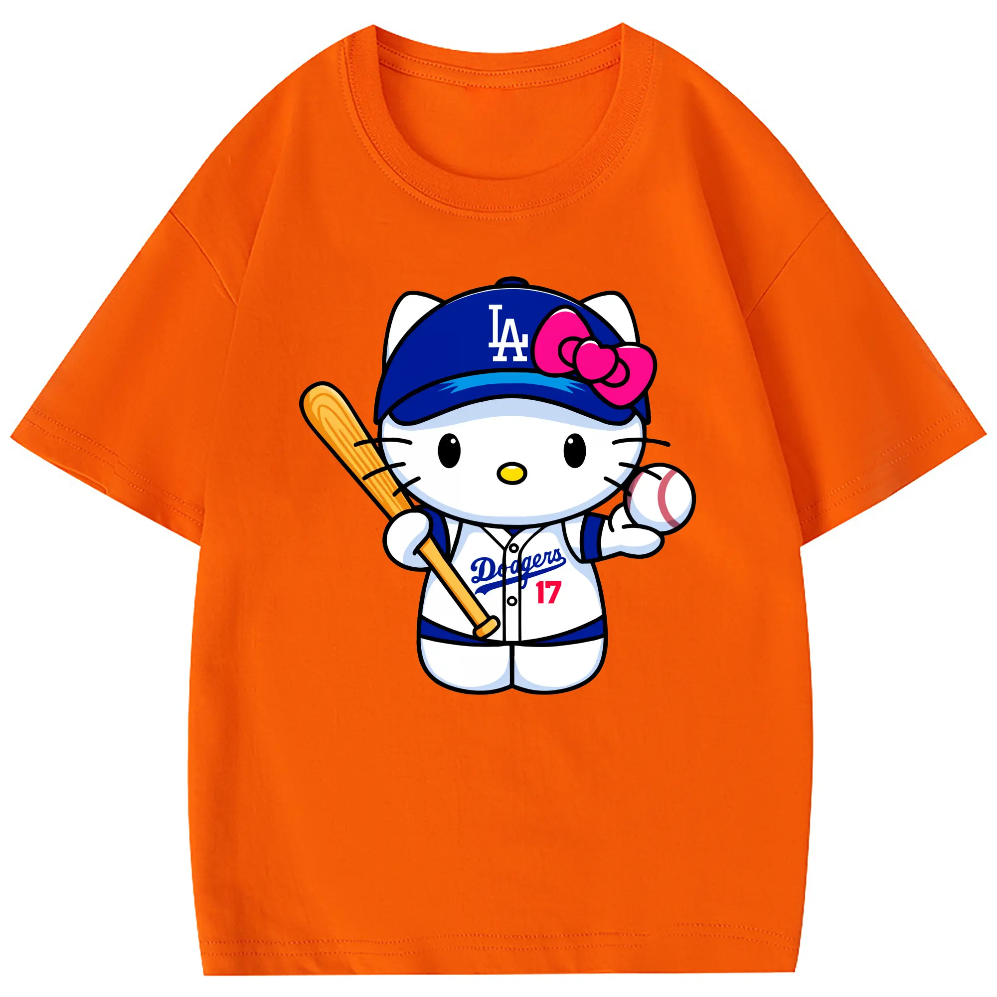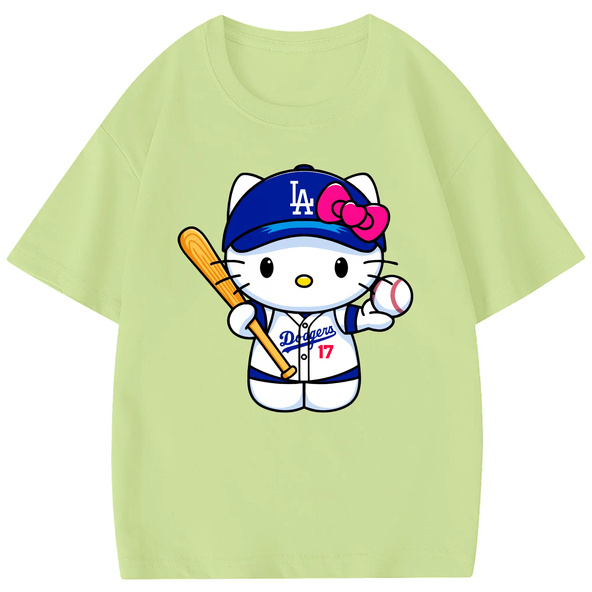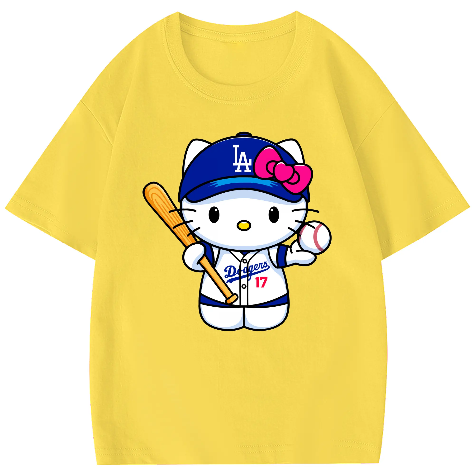 LA Dodgers Hello Kitty MLB Team - Combed Cotton Kids T-Shirt 180g With Front Heat Transfer Print – Soft, Lightweight, Side-Seamed Design – Stylish And Comfortable Casual Wear For Everyday Activities