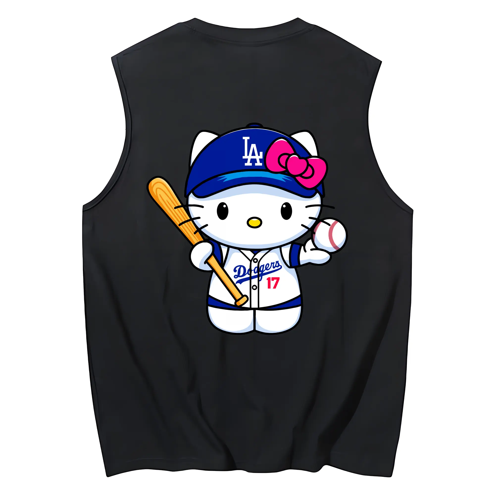 LA Dodgers Hello Kitty MLB Team - 230g Pure Cotton Tank Top With Back Heat Transfer Print – Soft, Lightweight, Fitted Design – Stylish & Comfortable Casual Wear For Sports & Everyday Use