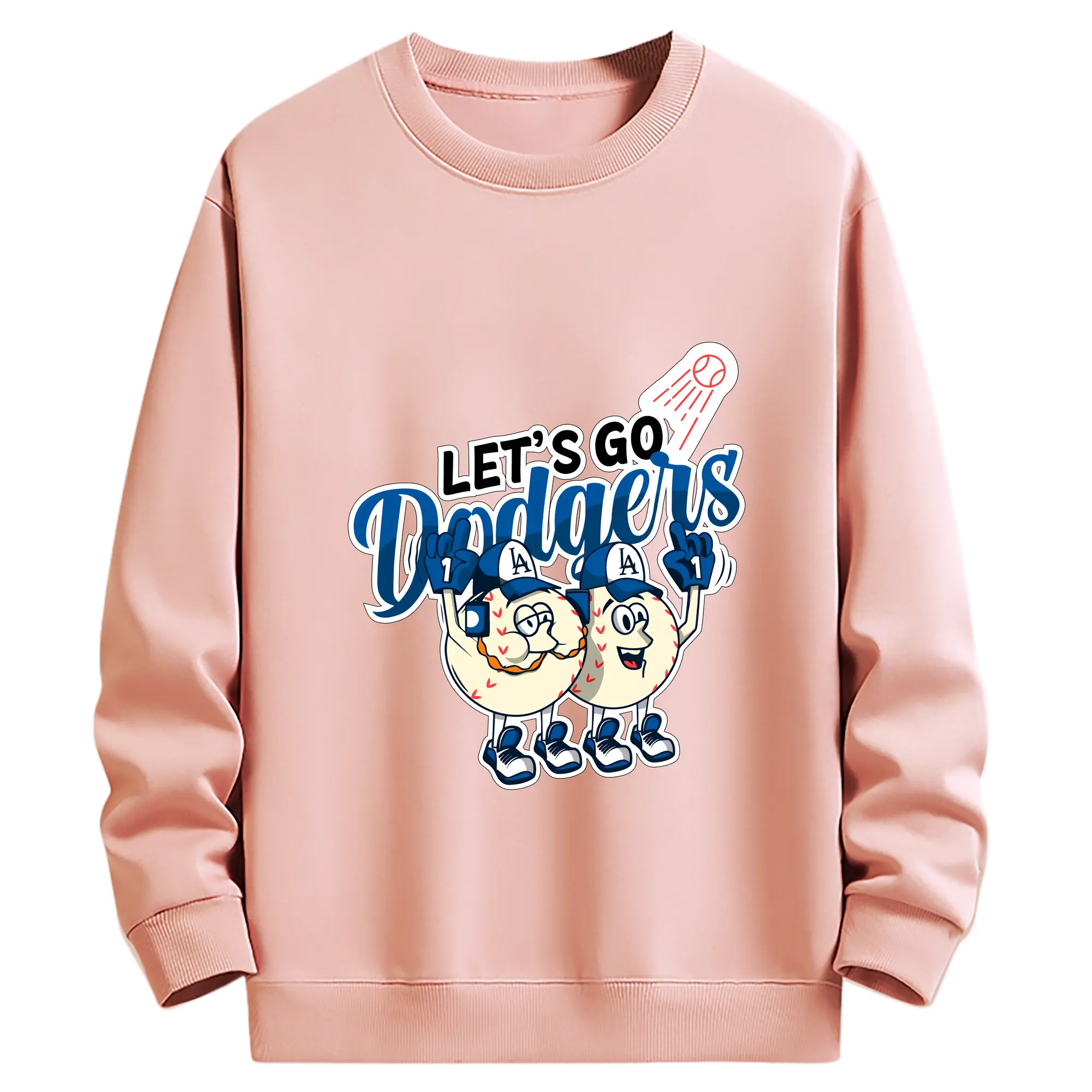 Lets Go Dodgers Baseball - Kids Crewneck Sweatshirt With Front Heat Transfer Print – 80% Cotton 20% Polyester – Soft, Durable & Comfortable – Ideal For Sports, Casual Wear & Everyday Activities