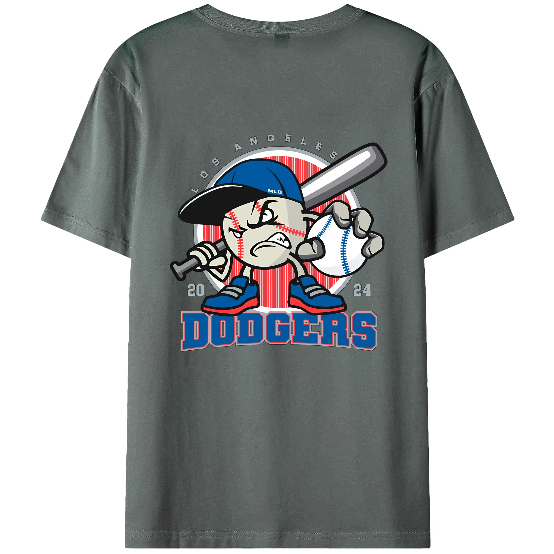 Los Angeles Baseball 2024 Season Dodgers - 180g Combed Cotton T-Shirt With Back Heat Transfer Print – Soft, Lightweight, Fitted Design – Stylish Casual Wear For Sports & Everyday Use