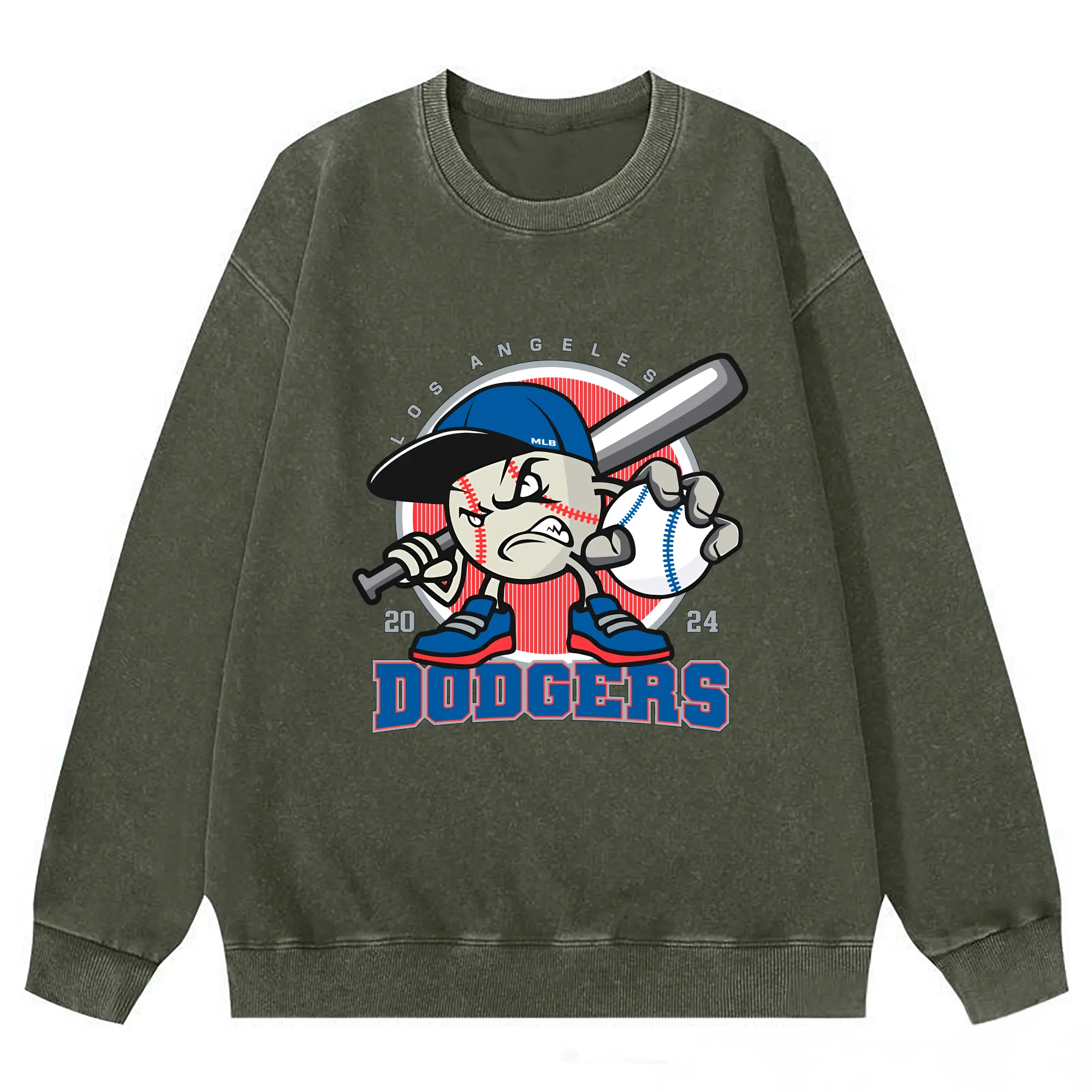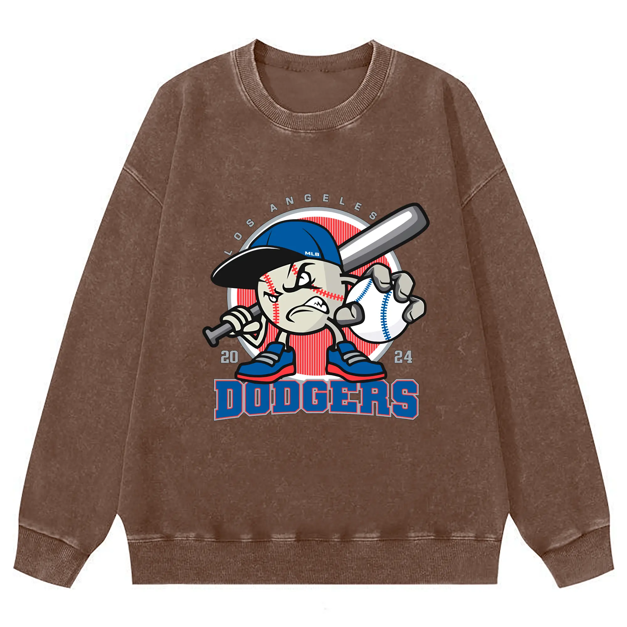 Los Angeles Baseball 2024 Season Dodgers - Washed Wax-Dyed Vintage Crewneck Sweatshirt – 80% Cotton, 20% Polyester – Soft, Durable & Stylish – Ideal For Sports, Casual & Everyday Wear