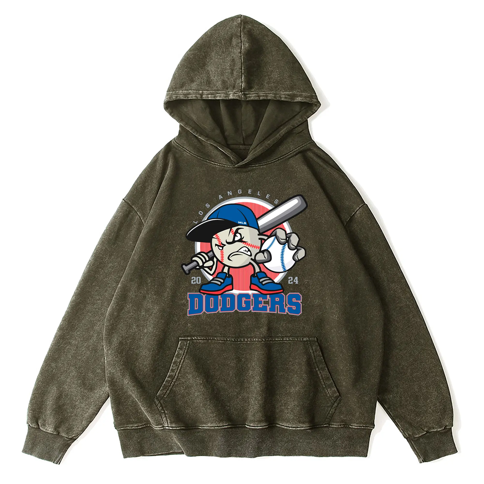 Los Angeles Baseball 2024 Season Dodgers - Vintage Washed Wax-Dyed Hoodie – 80% Cotton, 20% Polyester – Soft, Durable & Stylish – Perfect For Sports, Casual & Everyday Wear
