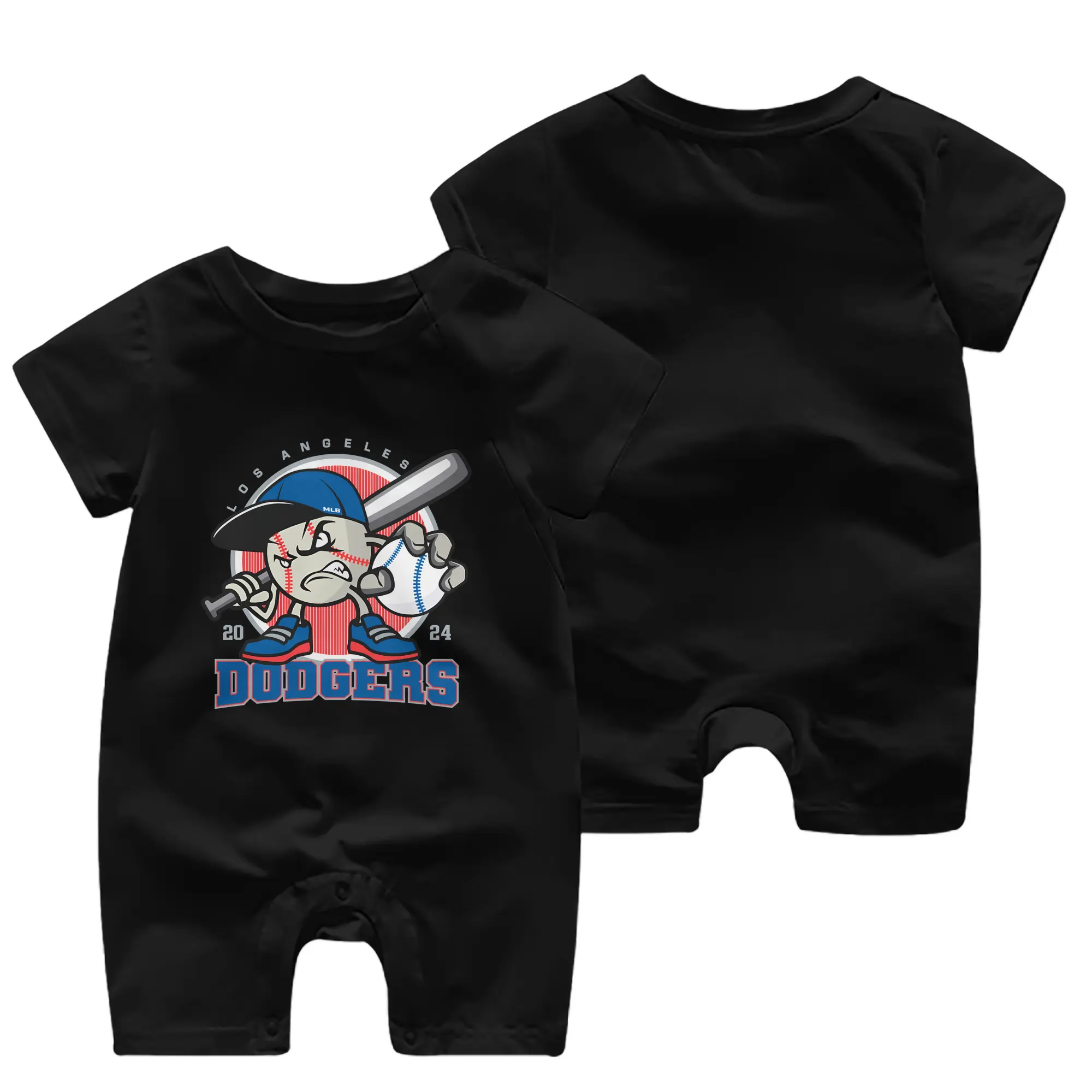 Los Angeles Baseball 2024 Season Dodgers - Baby Short Sleeve Onesie – 100% Cotton Soft & Breathable Digital Print Romper – Double-Sided Print, Snap Closure For Easy Diaper Changes – Comfortable For Boys & Girls