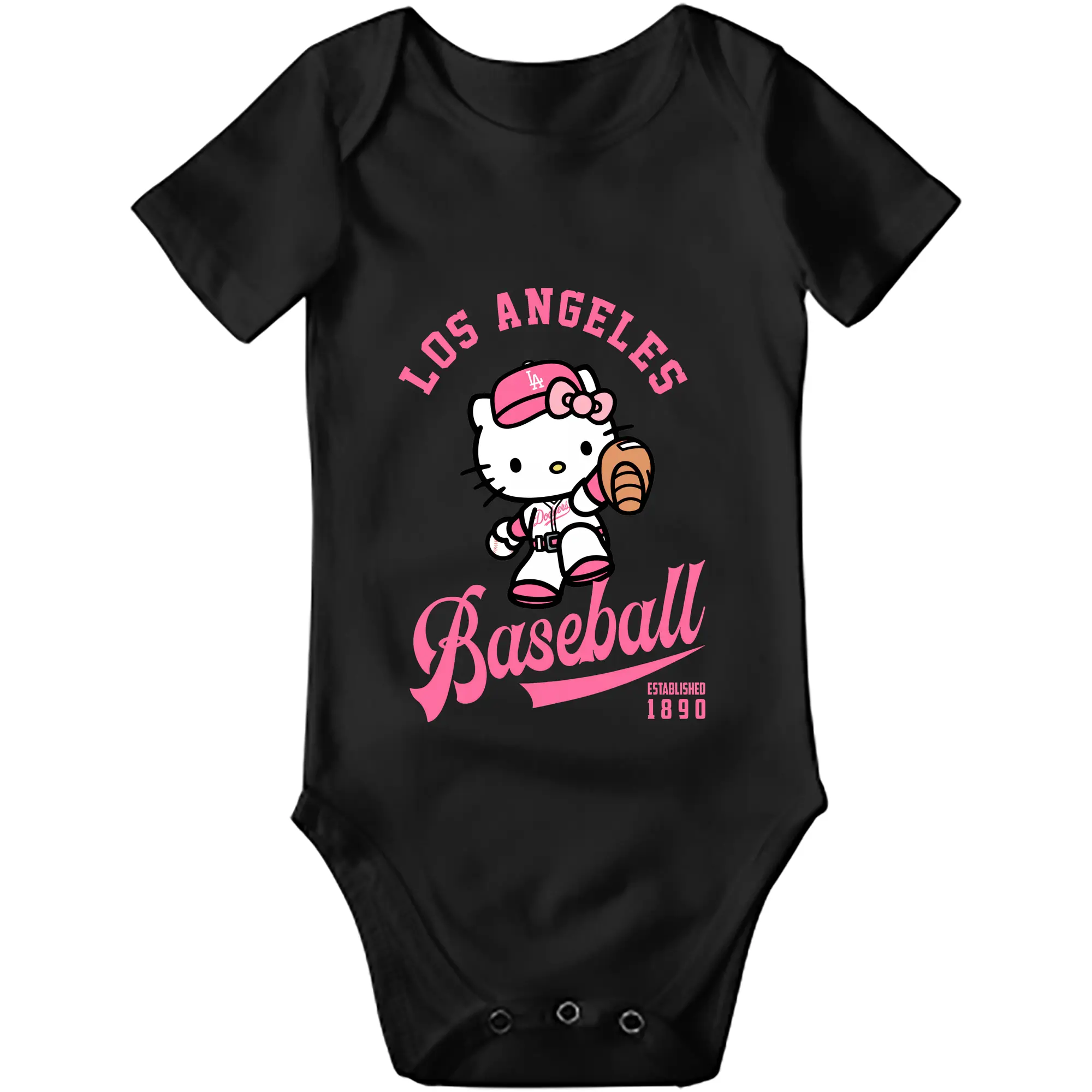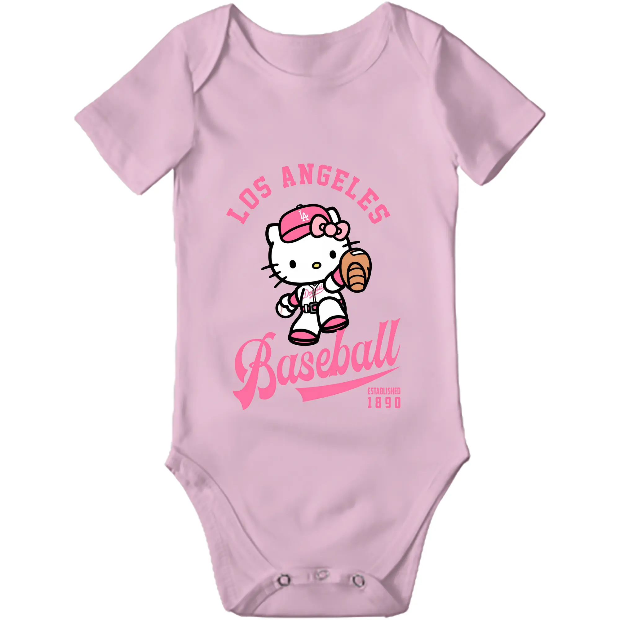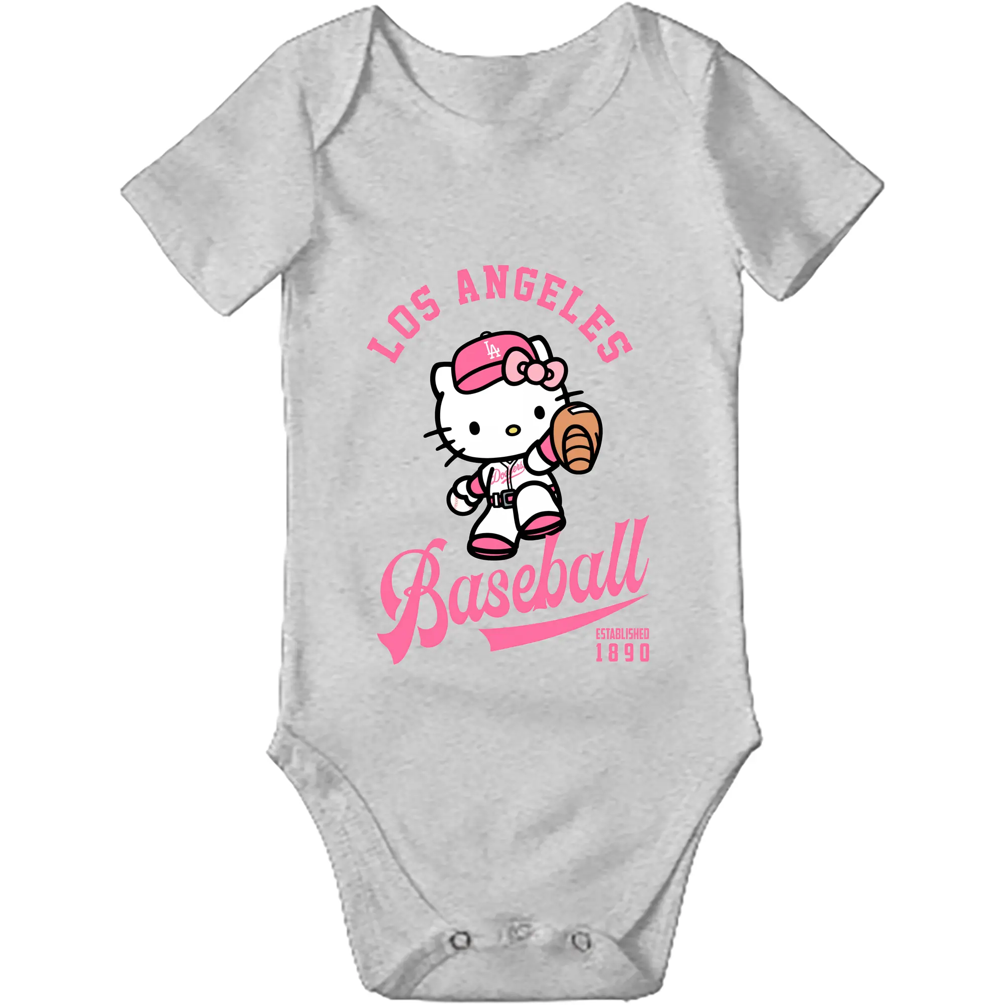 Los Angeles Baseball Hello Kitty - Baby Short Sleeve Romper – 100% Cotton Soft & Breathable Digital Print Onesie With Easy Snap Closure And Envelope Shoulder – Comfortable For Daily Wear & Travel