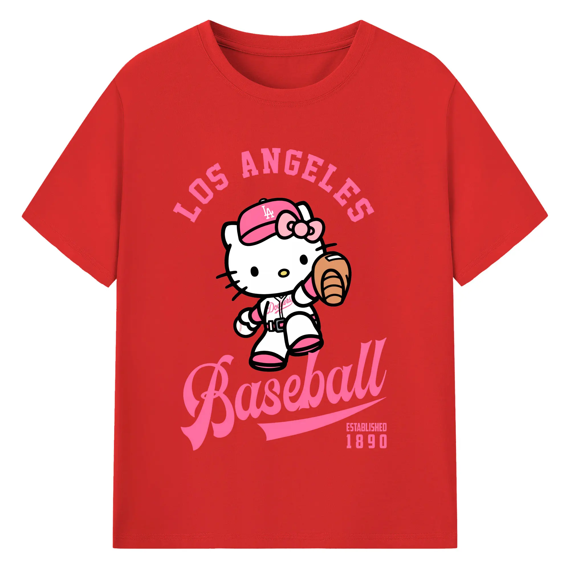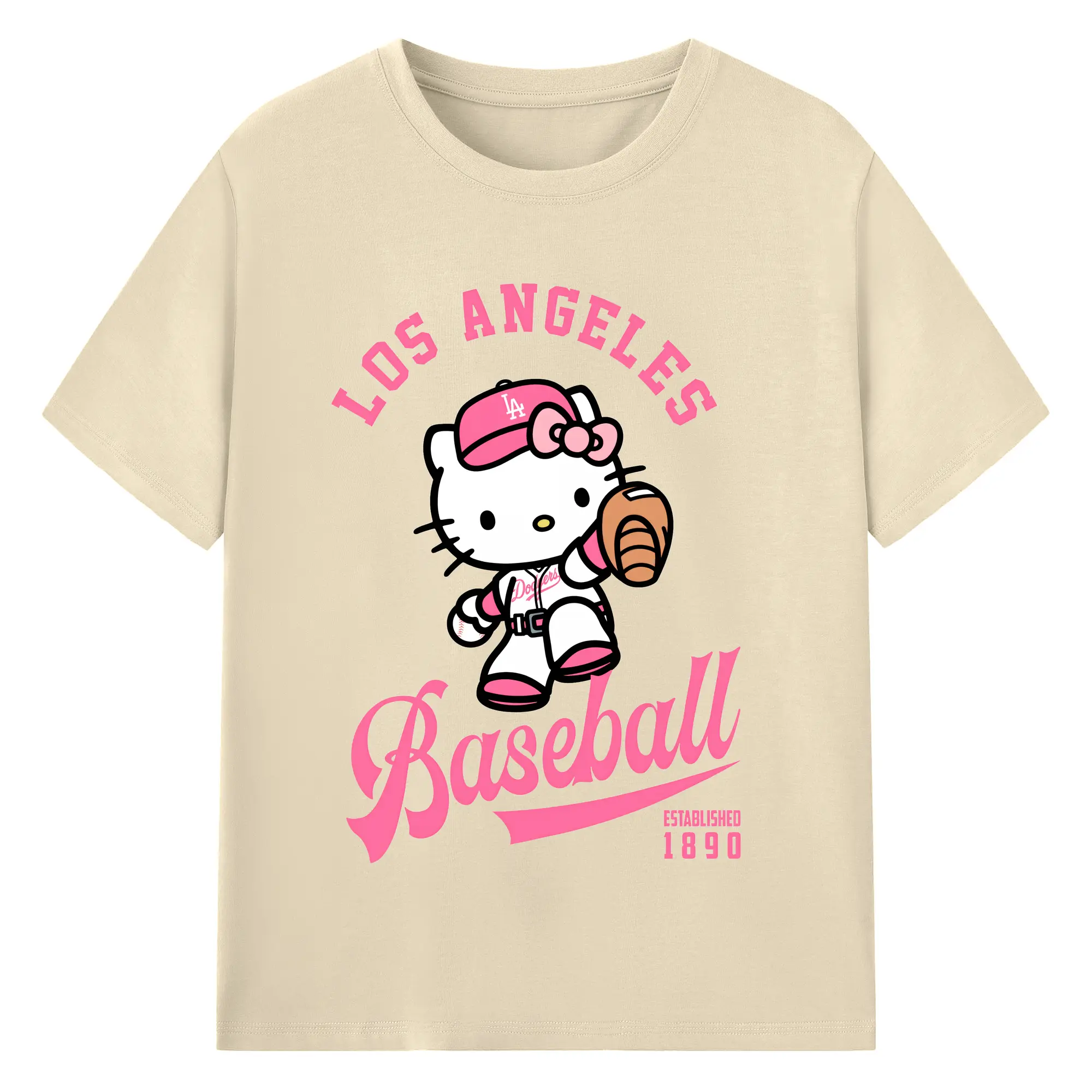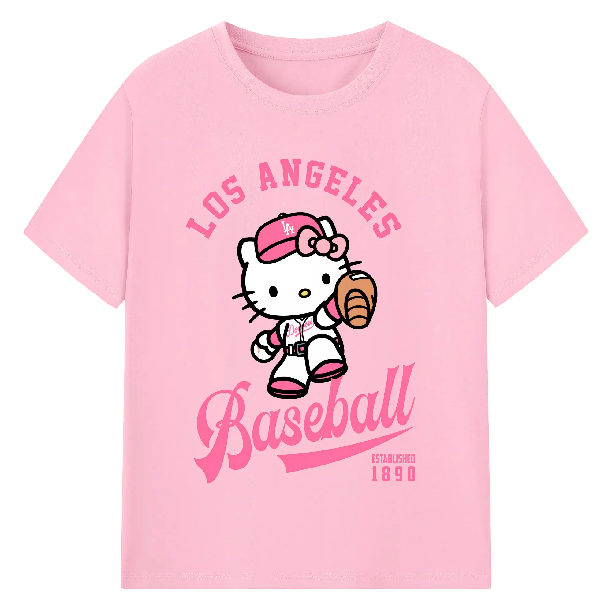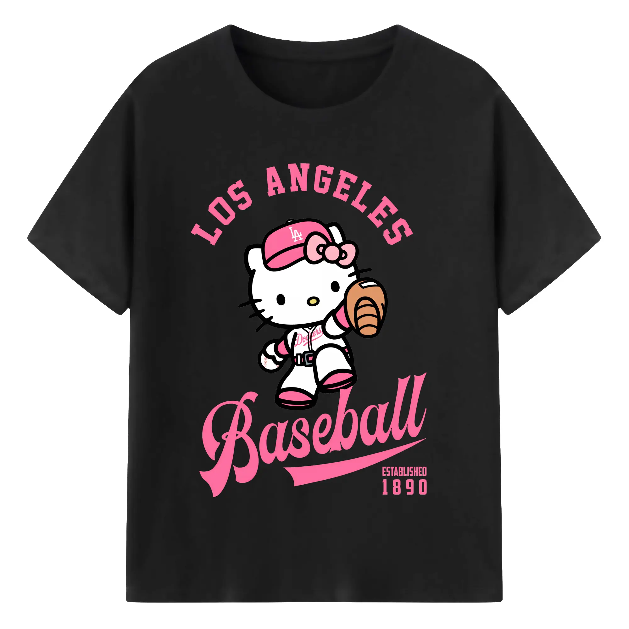 Los Angeles Baseball Hello Kitty - Combed Cotton T-Shirt 180g With Front Heat Transfer Print – Soft, Lightweight, Fitted Design – Stylish Casual Wear For Sports & Everyday Use