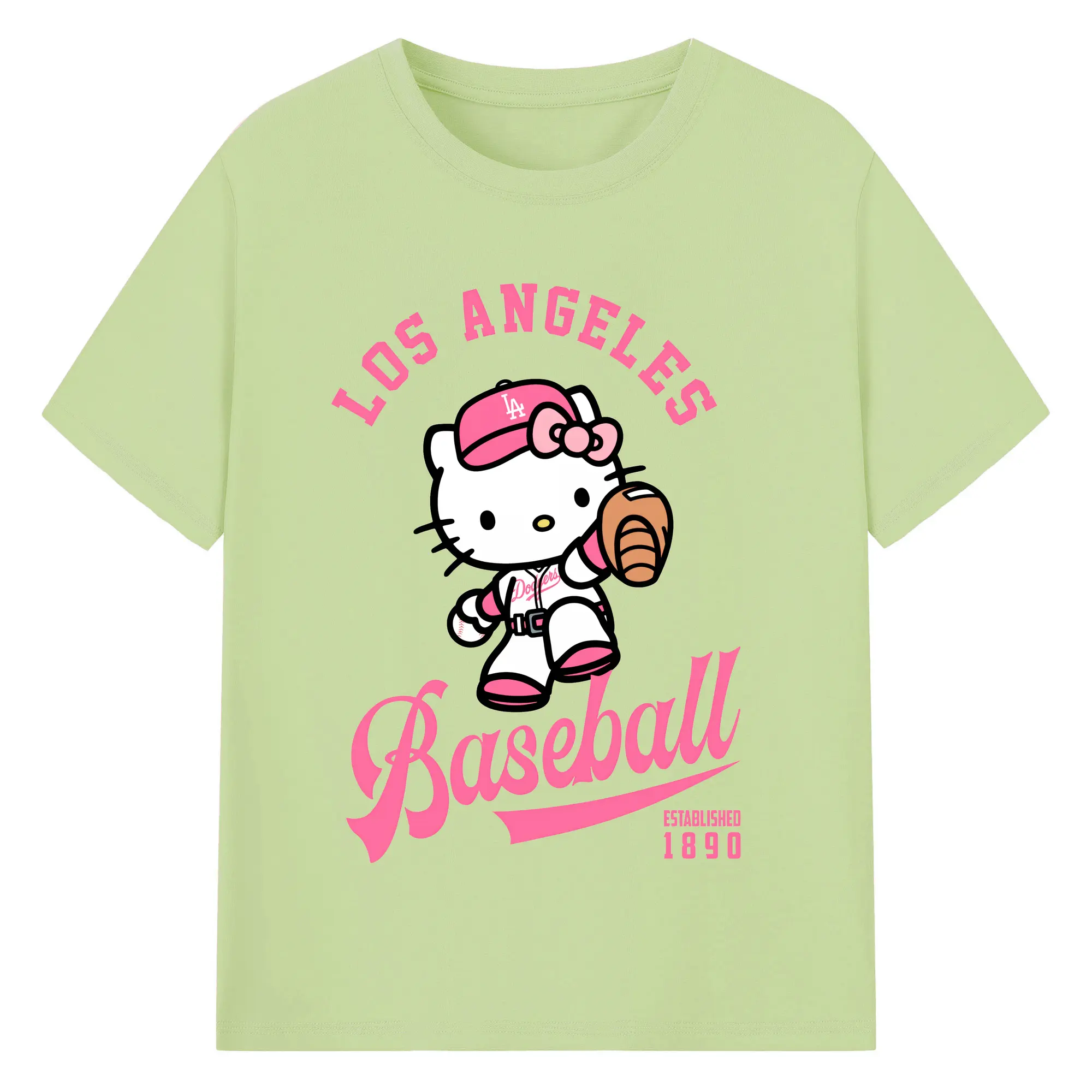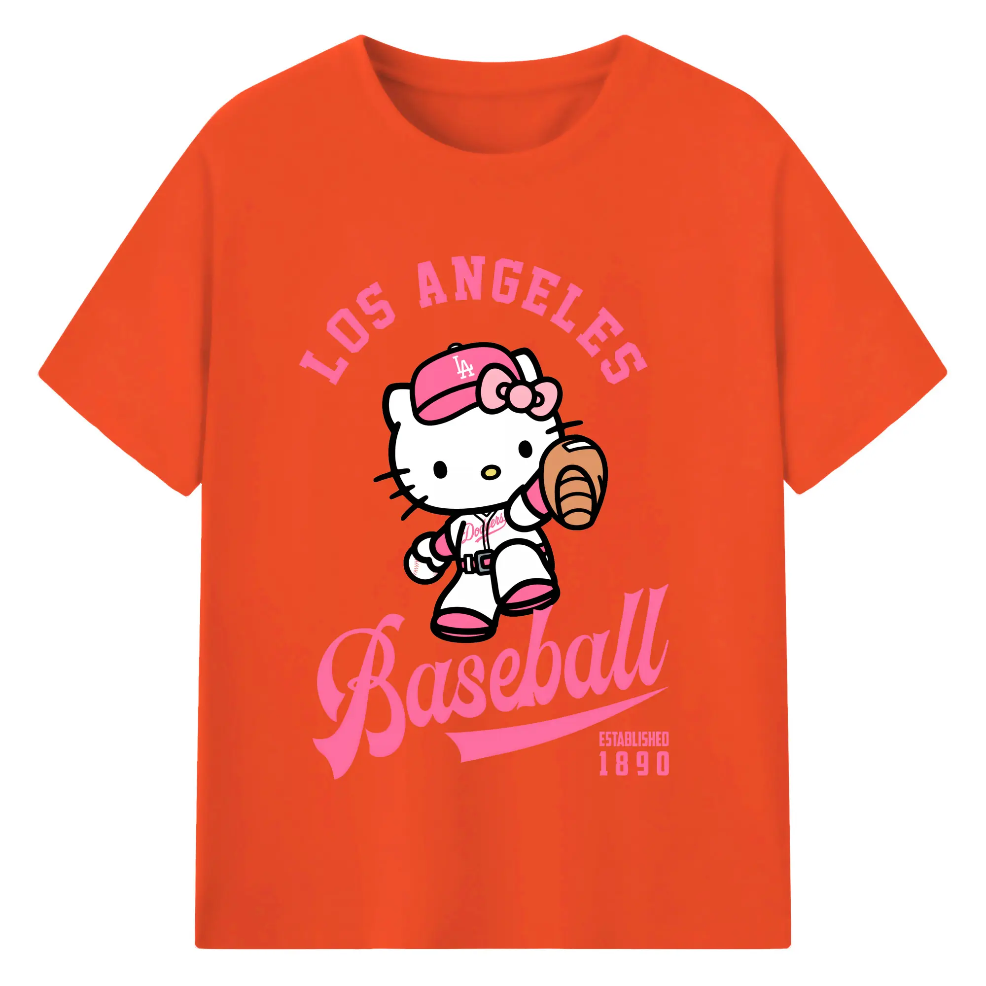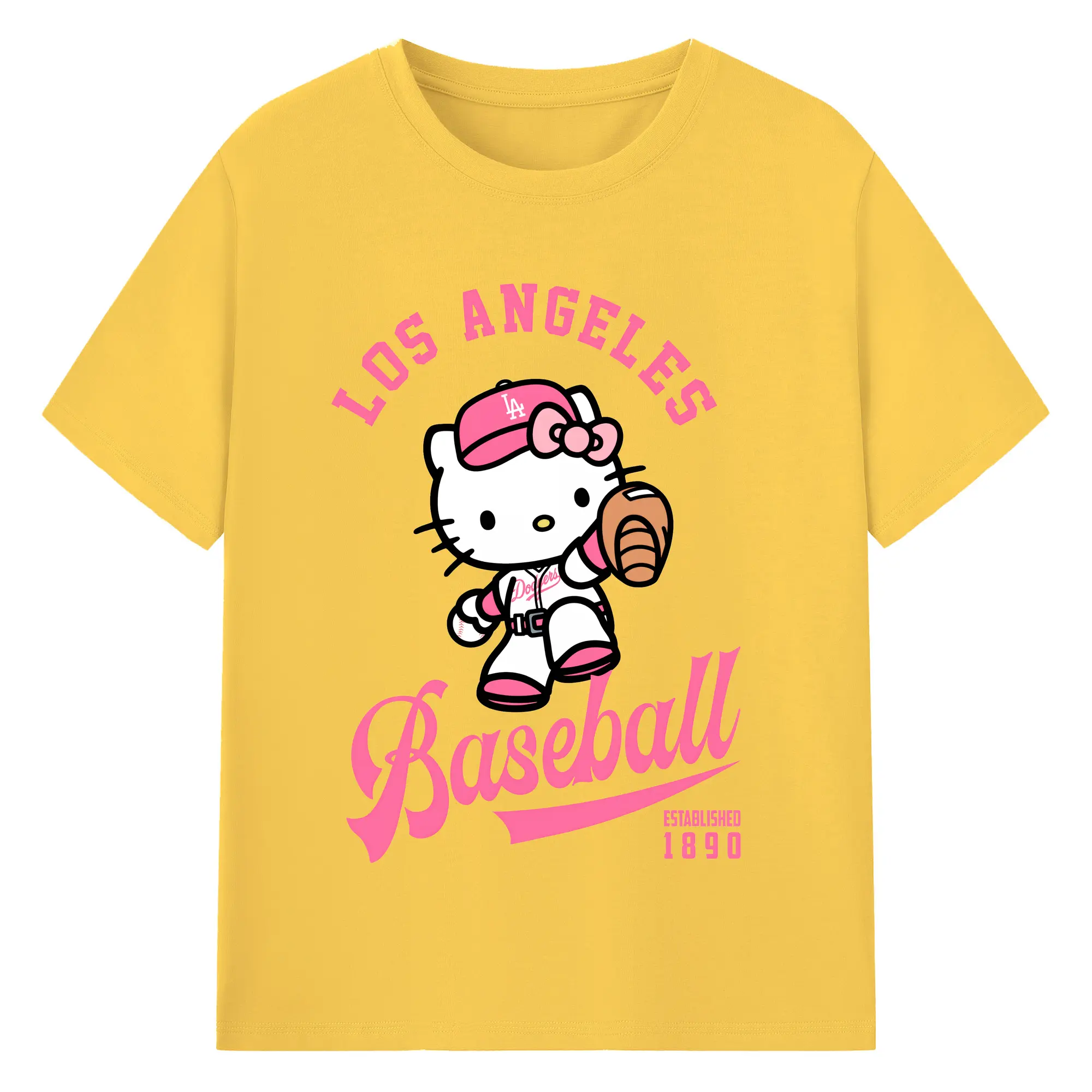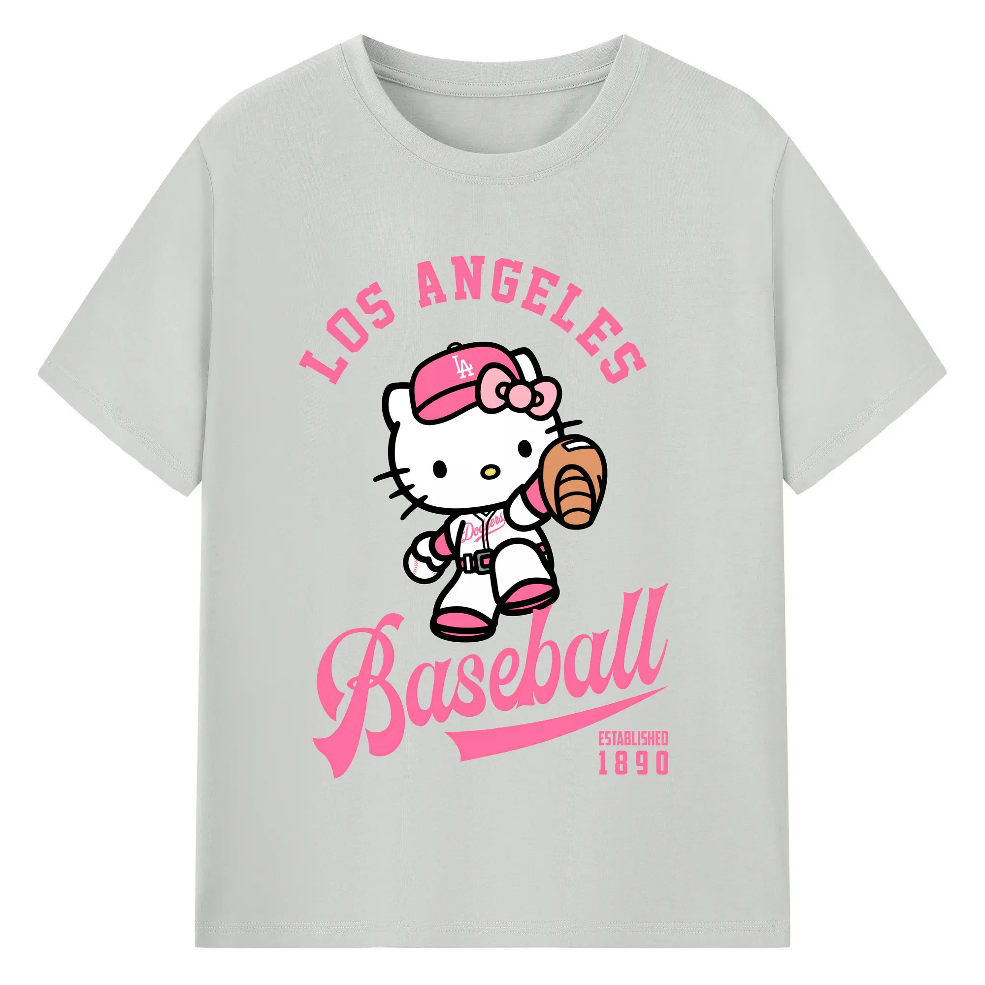 Los Angeles Baseball Hello Kitty - Combed Cotton T-Shirt 180g With Front Heat Transfer Print – Soft, Lightweight, Fitted Design – Stylish Casual Wear For Sports & Everyday Use
