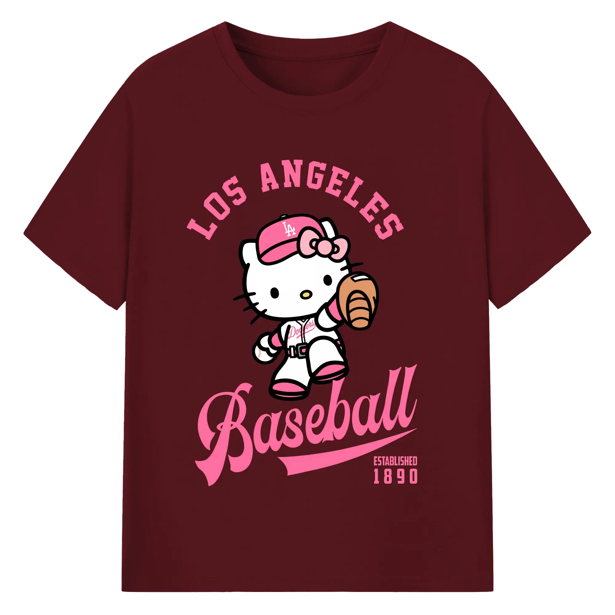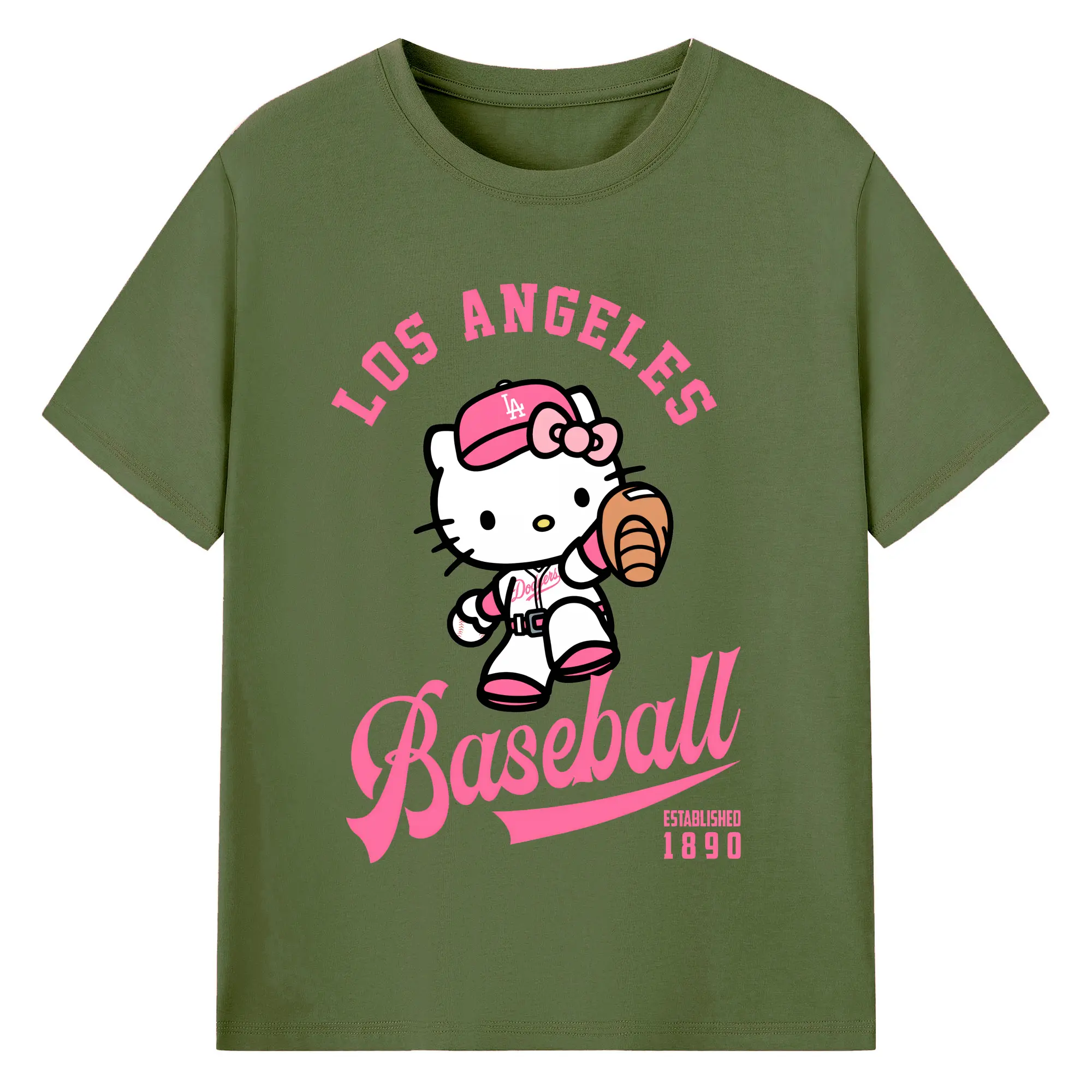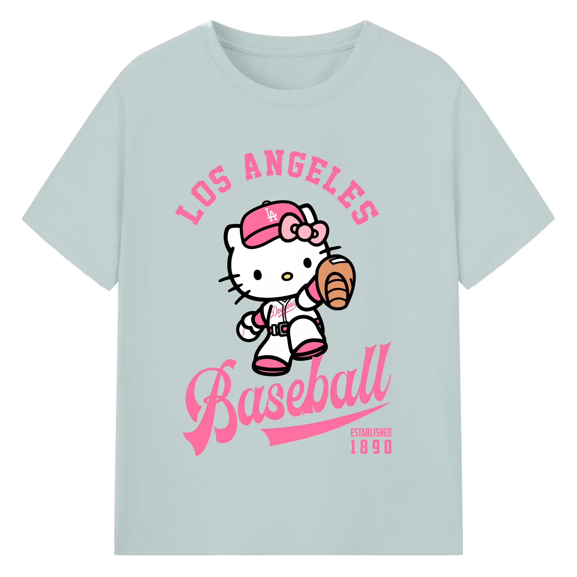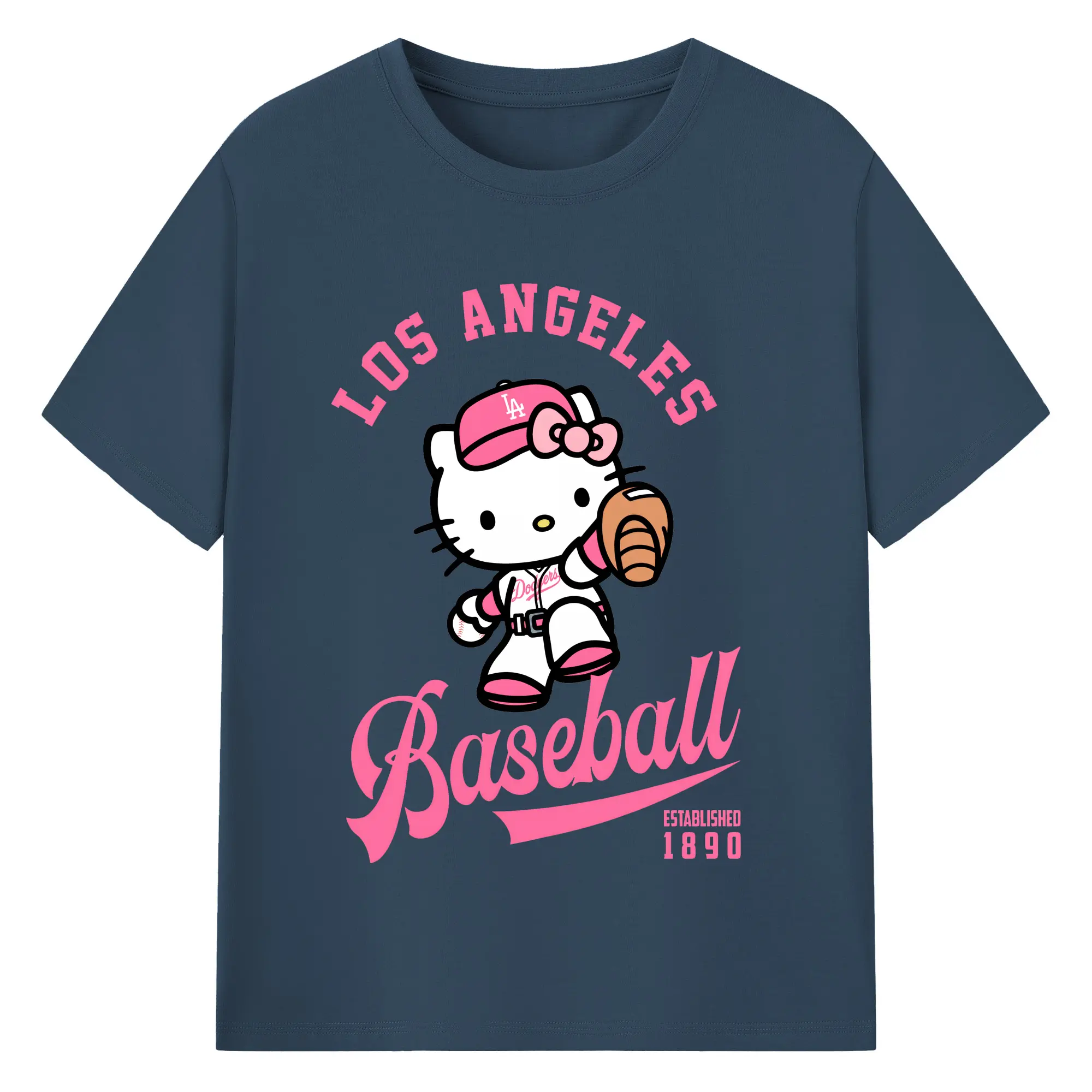 Los Angeles Baseball Hello Kitty - Combed Cotton T-Shirt 180g With Front Heat Transfer Print – Soft, Lightweight, Fitted Design – Stylish Casual Wear For Sports & Everyday Use