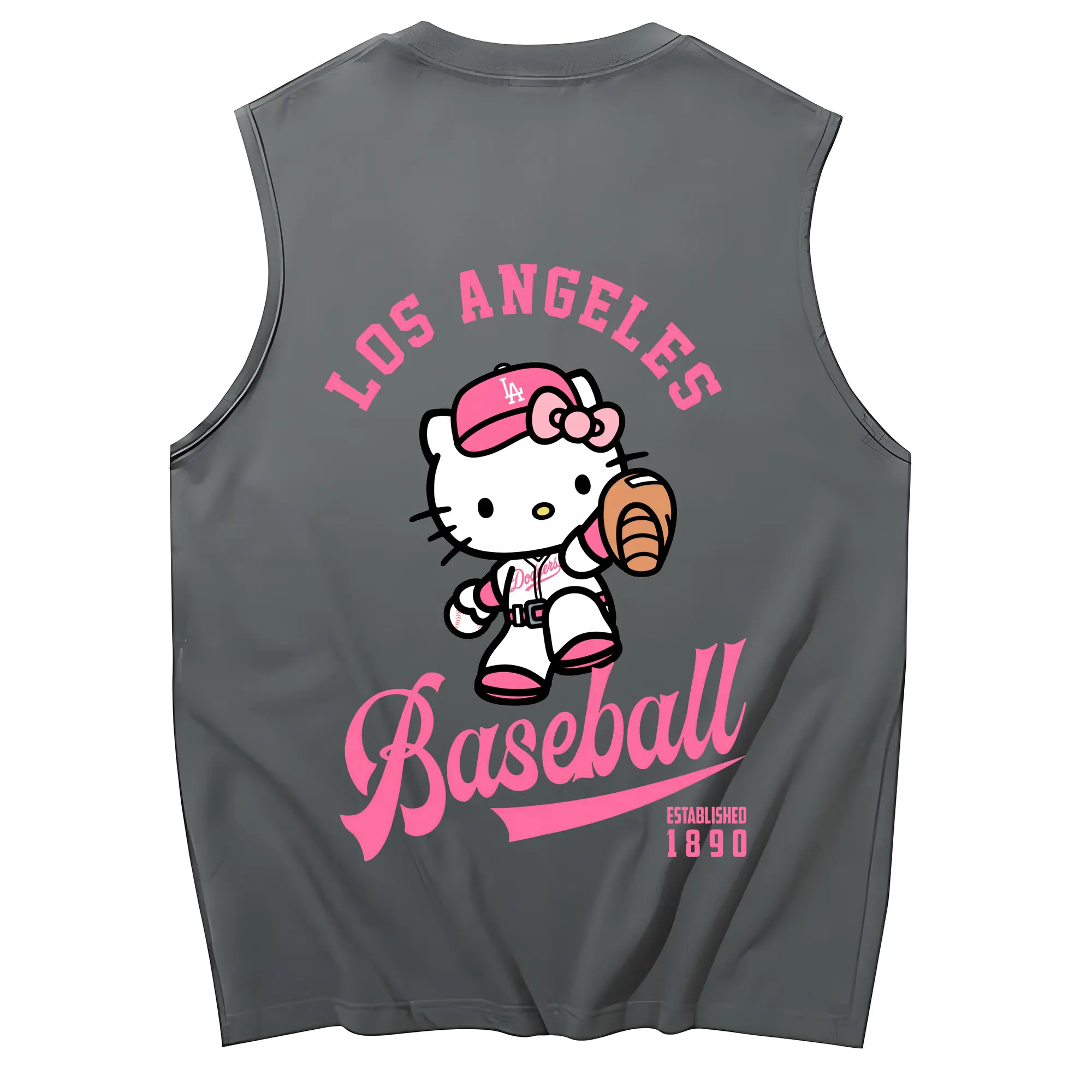 Los Angeles Baseball Hello Kitty - 230g Pure Cotton Tank Top With Back Heat Transfer Print – Soft, Lightweight, Fitted Design – Stylish & Comfortable Casual Wear For Sports & Everyday Use