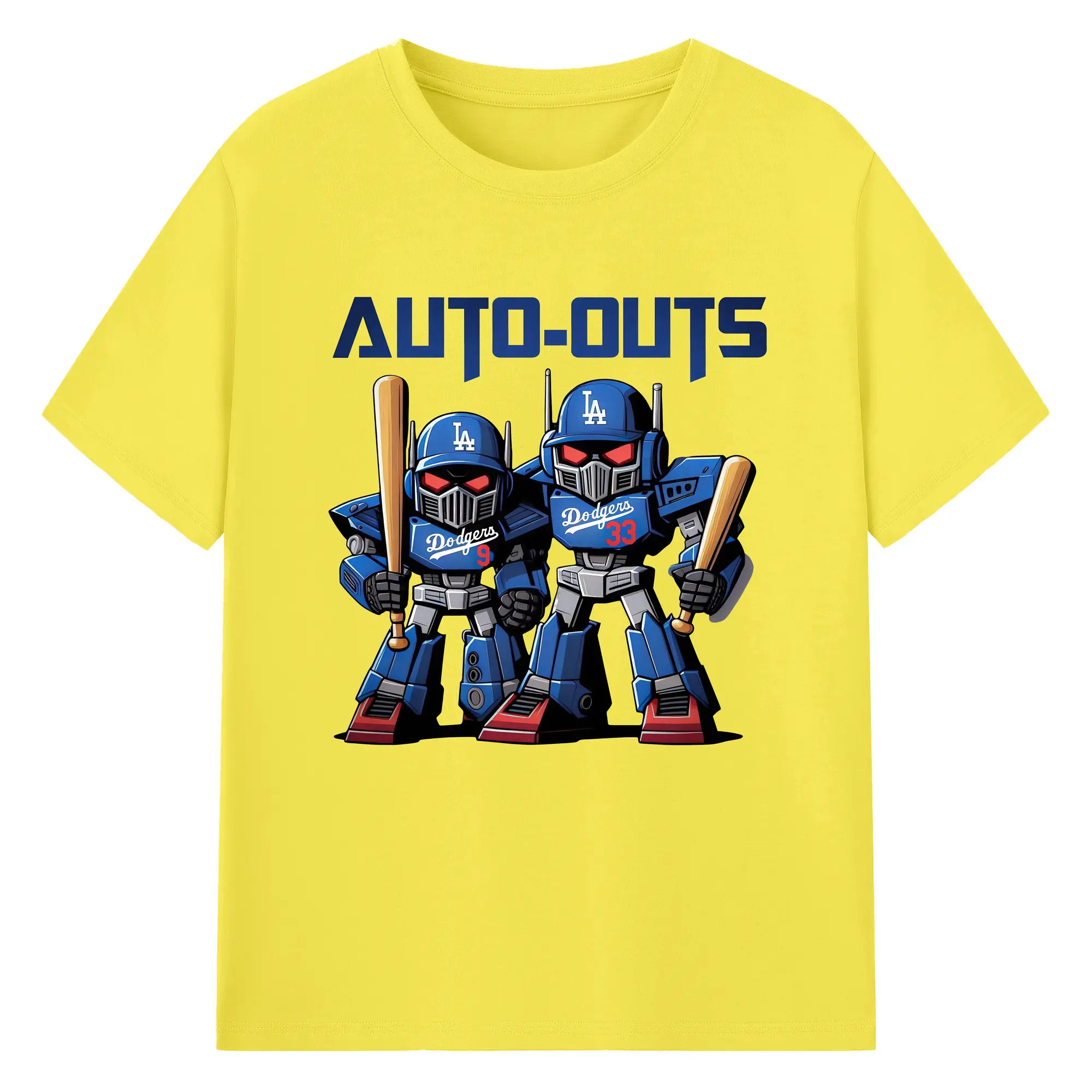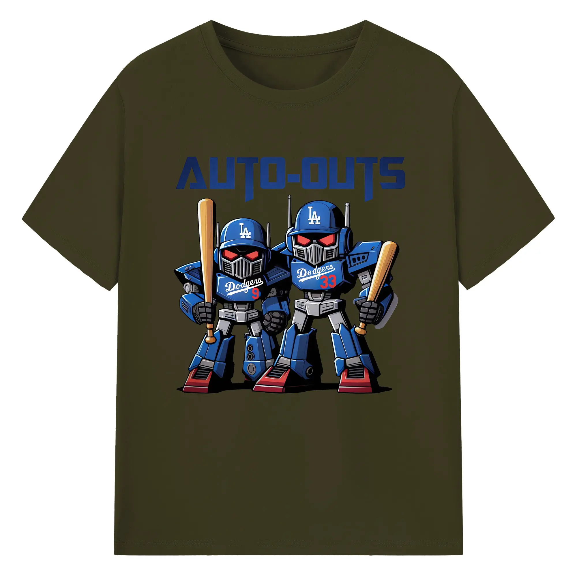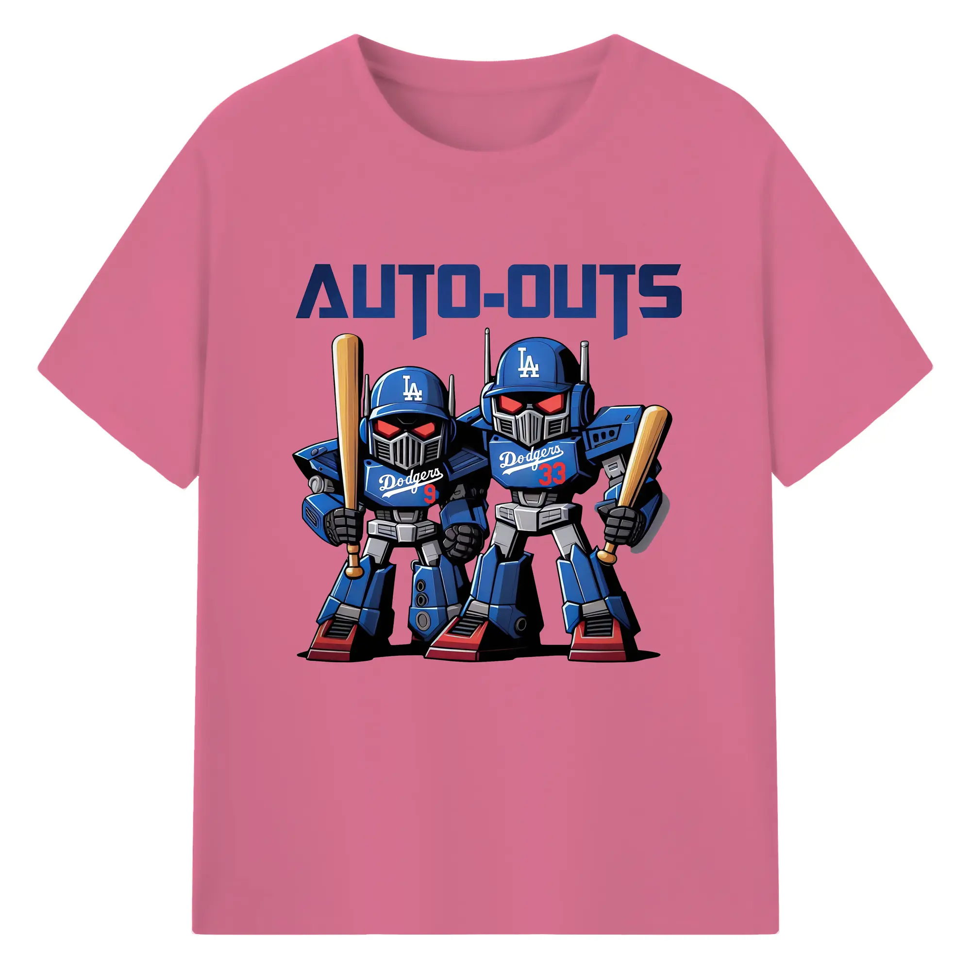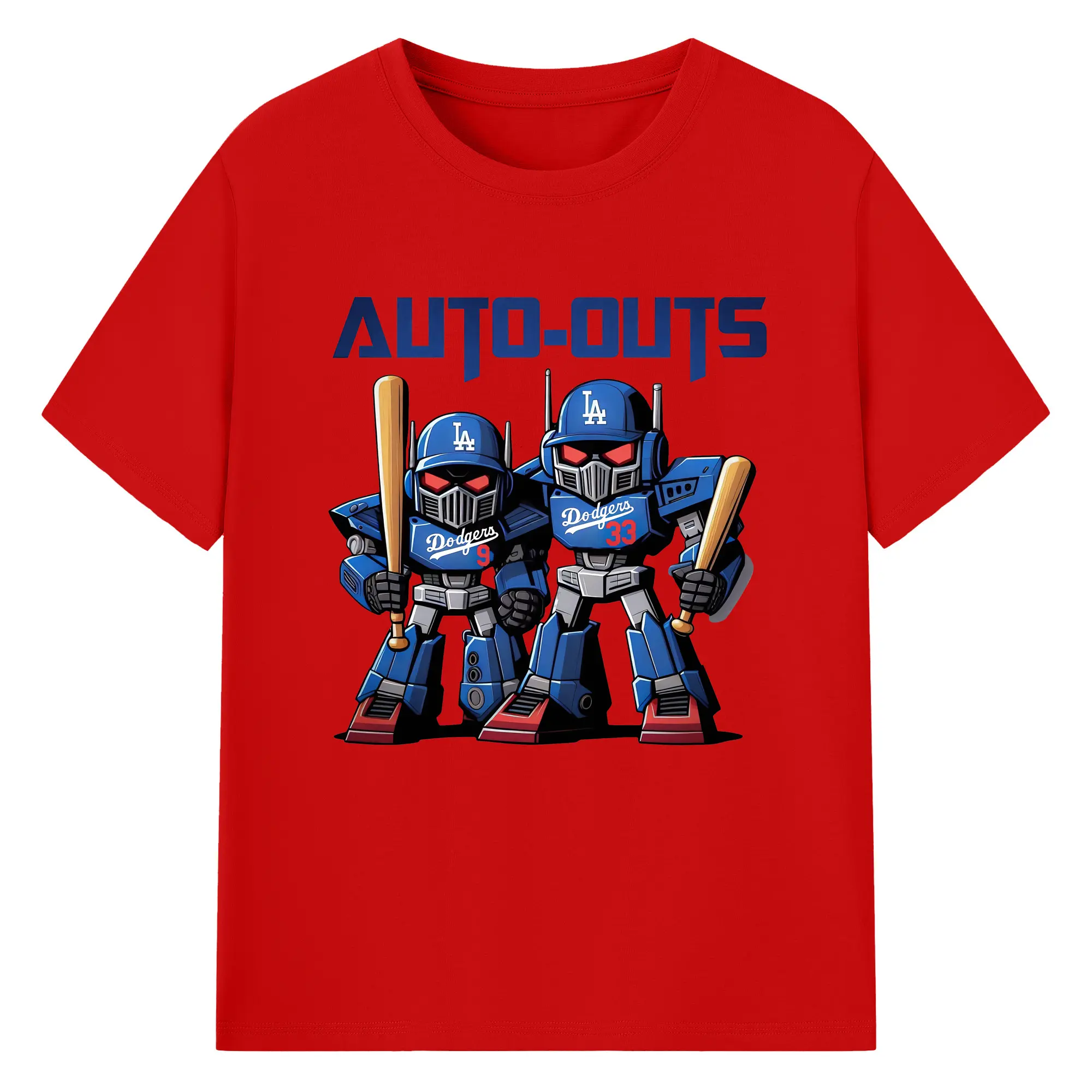 Los Angeles Dodgers Baseball Auto Outs - 180g Cotton T-Shirt With Front Heat Transfer Print – Soft, Lightweight, Fitted Design – Comfortable Casual Wear For Sports & Everyday Use
