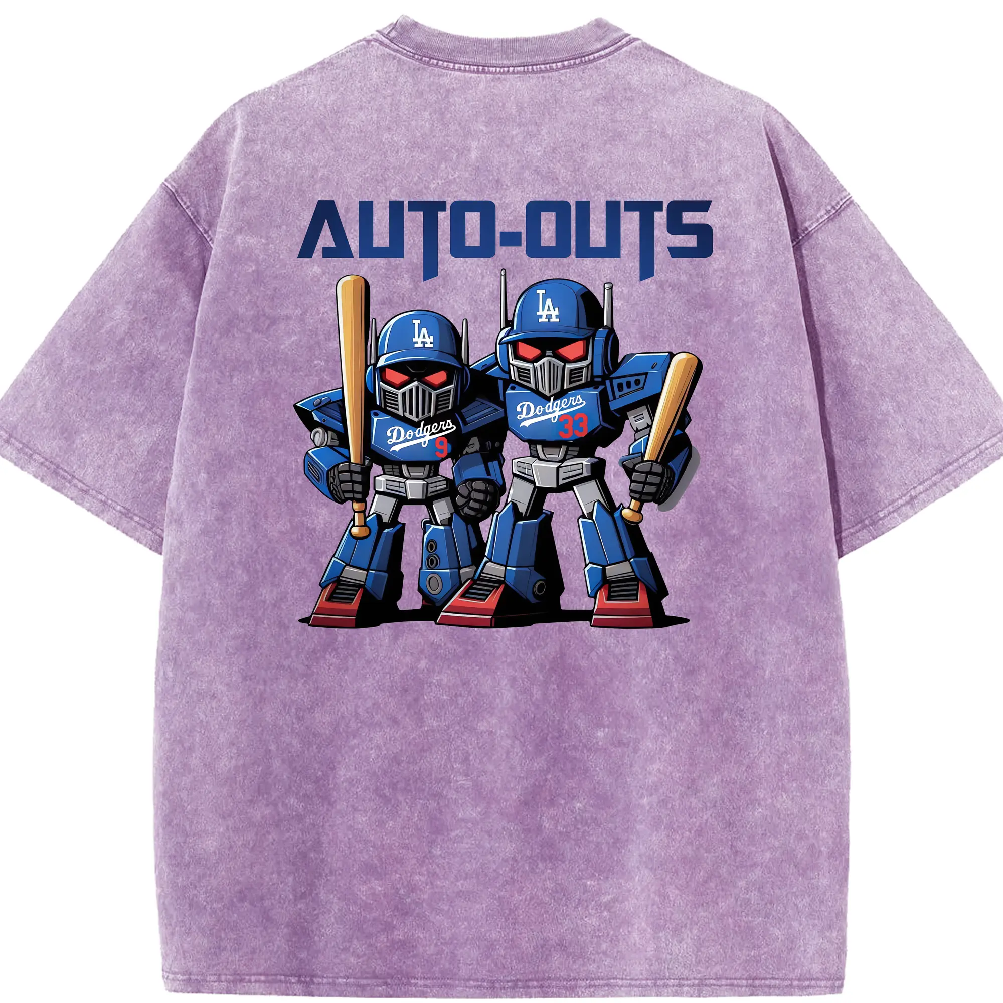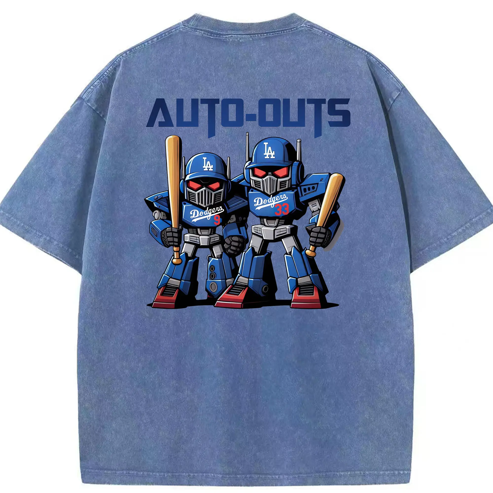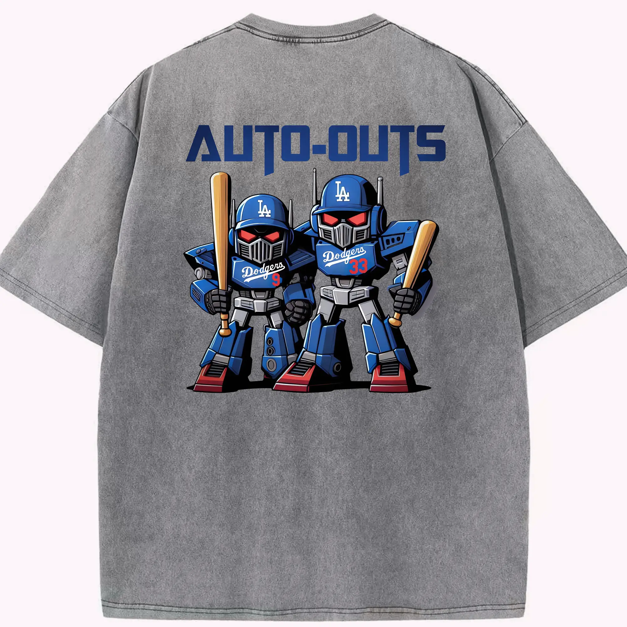 Los Angeles Dodgers Baseball Auto Outs - Washed Vintage 230g Cotton Oversized T-Shirt With Back Heat Transfer Print – Soft, Lightweight & Stylish – Comfortable Casual Wear For Sports & Everyday Use