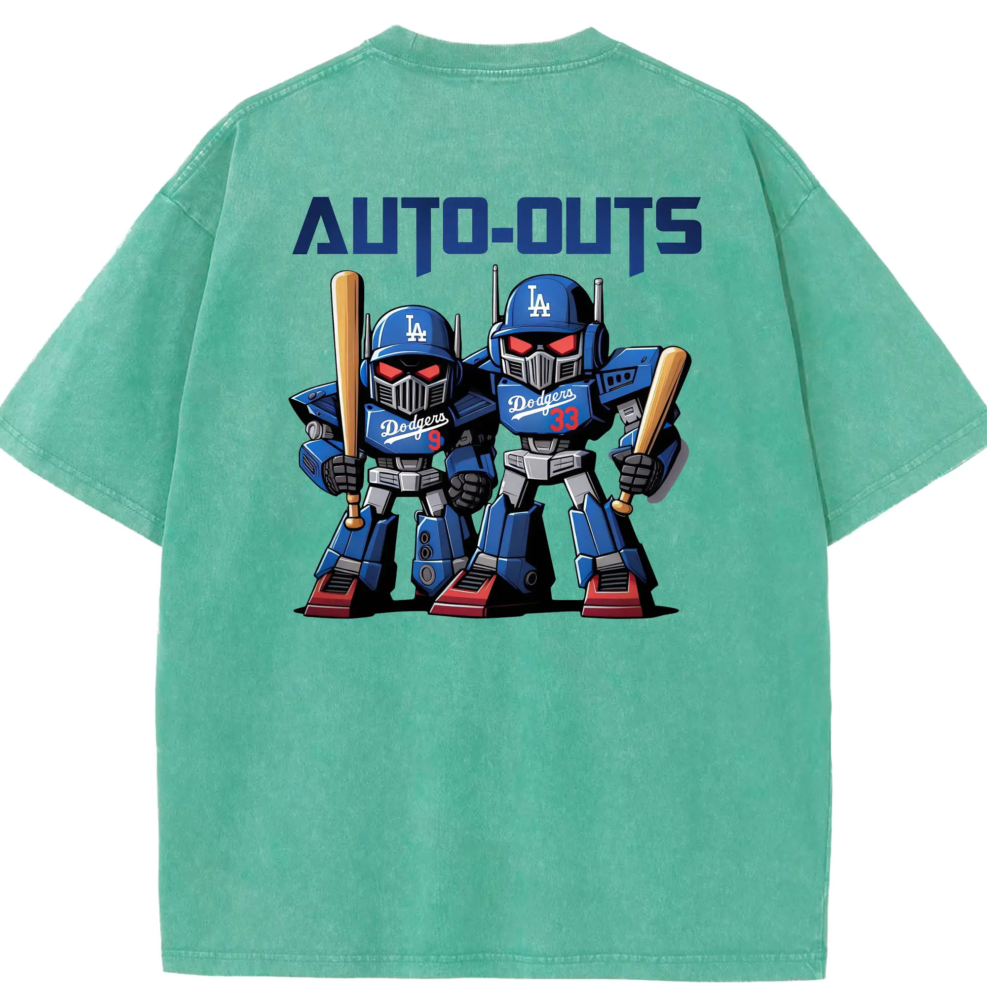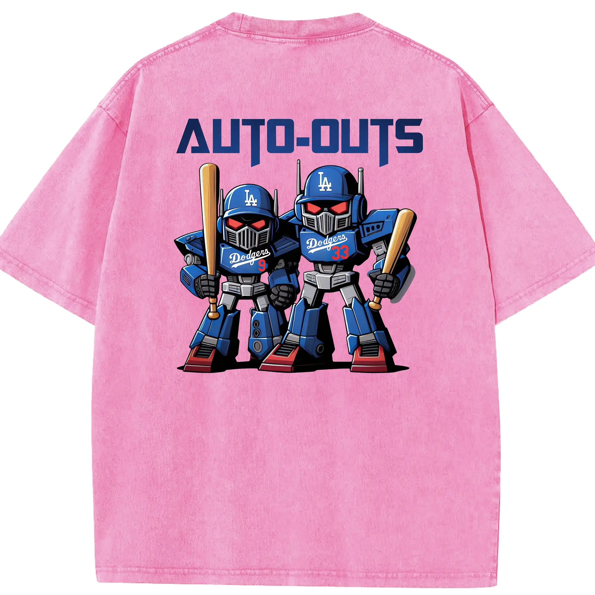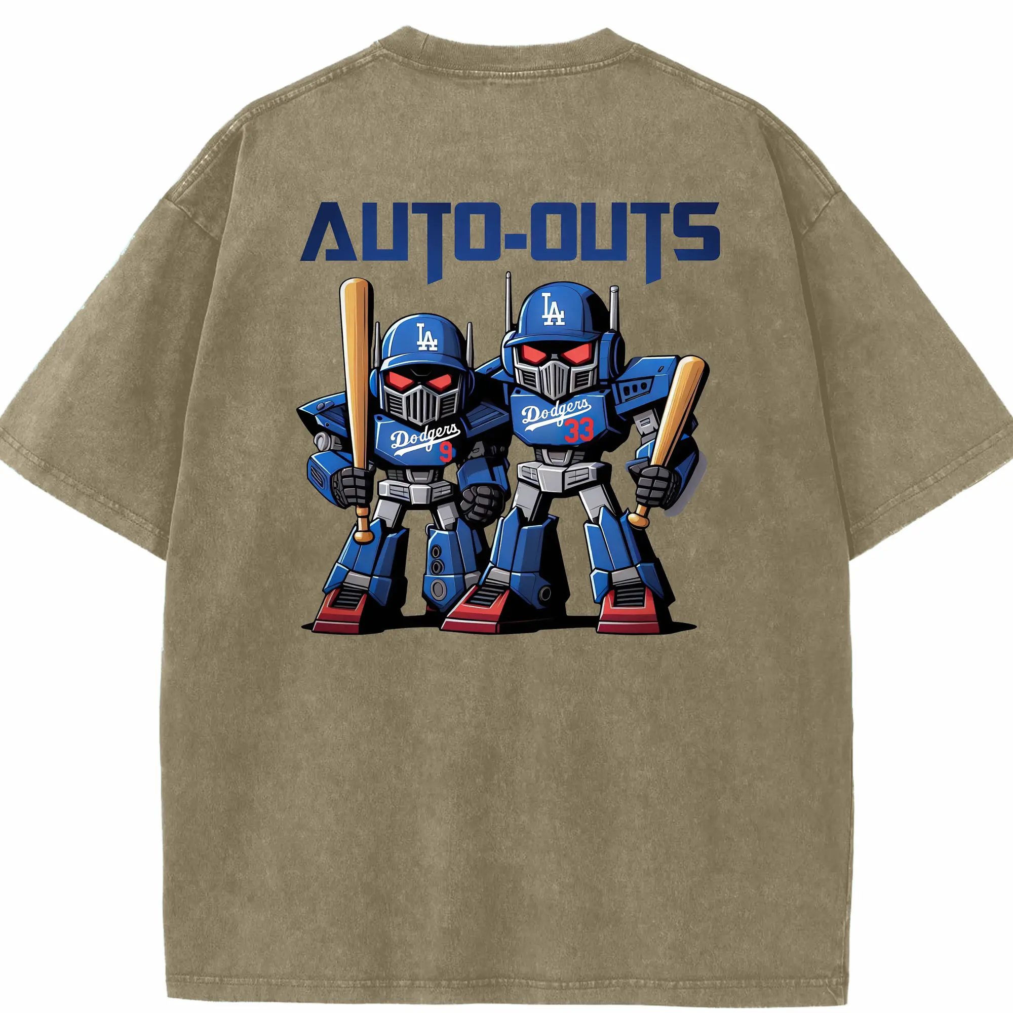 Los Angeles Dodgers Baseball Auto Outs - Washed Vintage 230g Cotton Oversized T-Shirt With Back Heat Transfer Print – Soft, Lightweight & Stylish – Comfortable Casual Wear For Sports & Everyday Use
