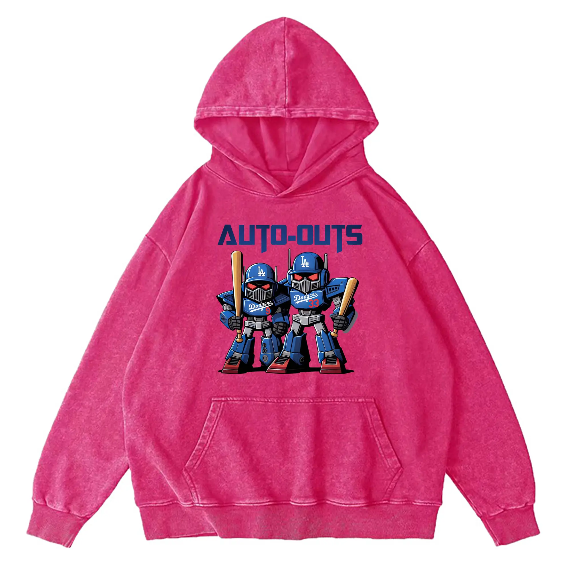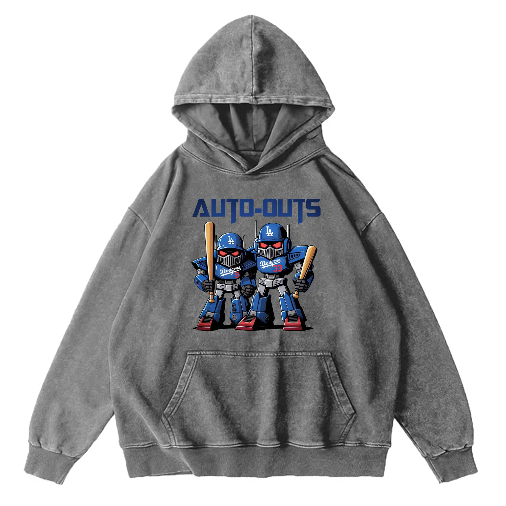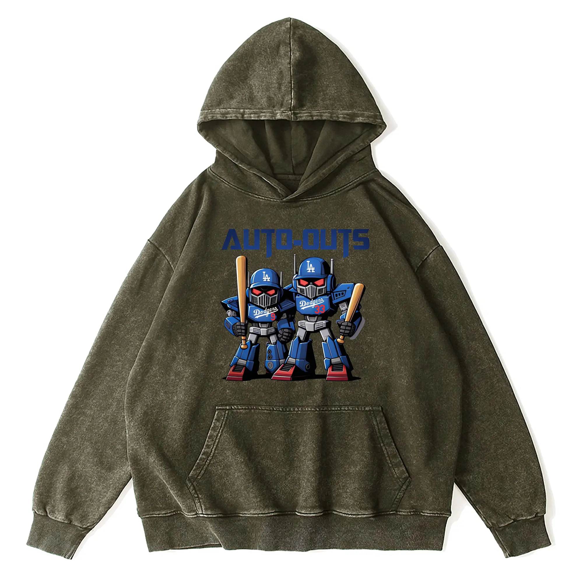 Los Angeles Dodgers Baseball Auto Outs - Vintage Washed Wax-Dyed Hoodie – 80% Cotton, 20% Polyester – Soft, Durable & Stylish – Perfect For Sports, Casual & Everyday Wear