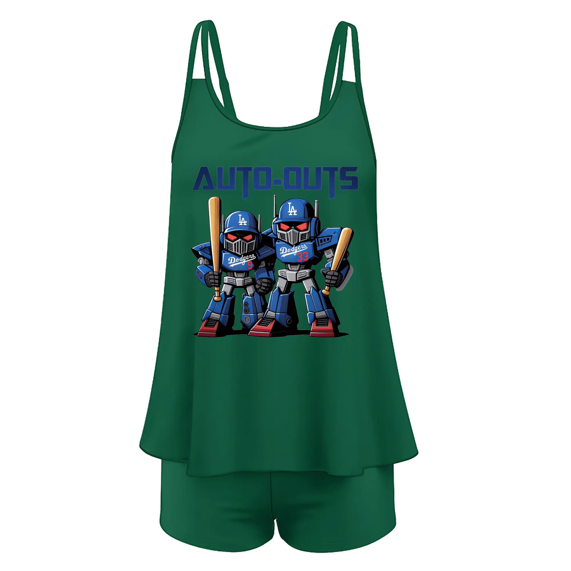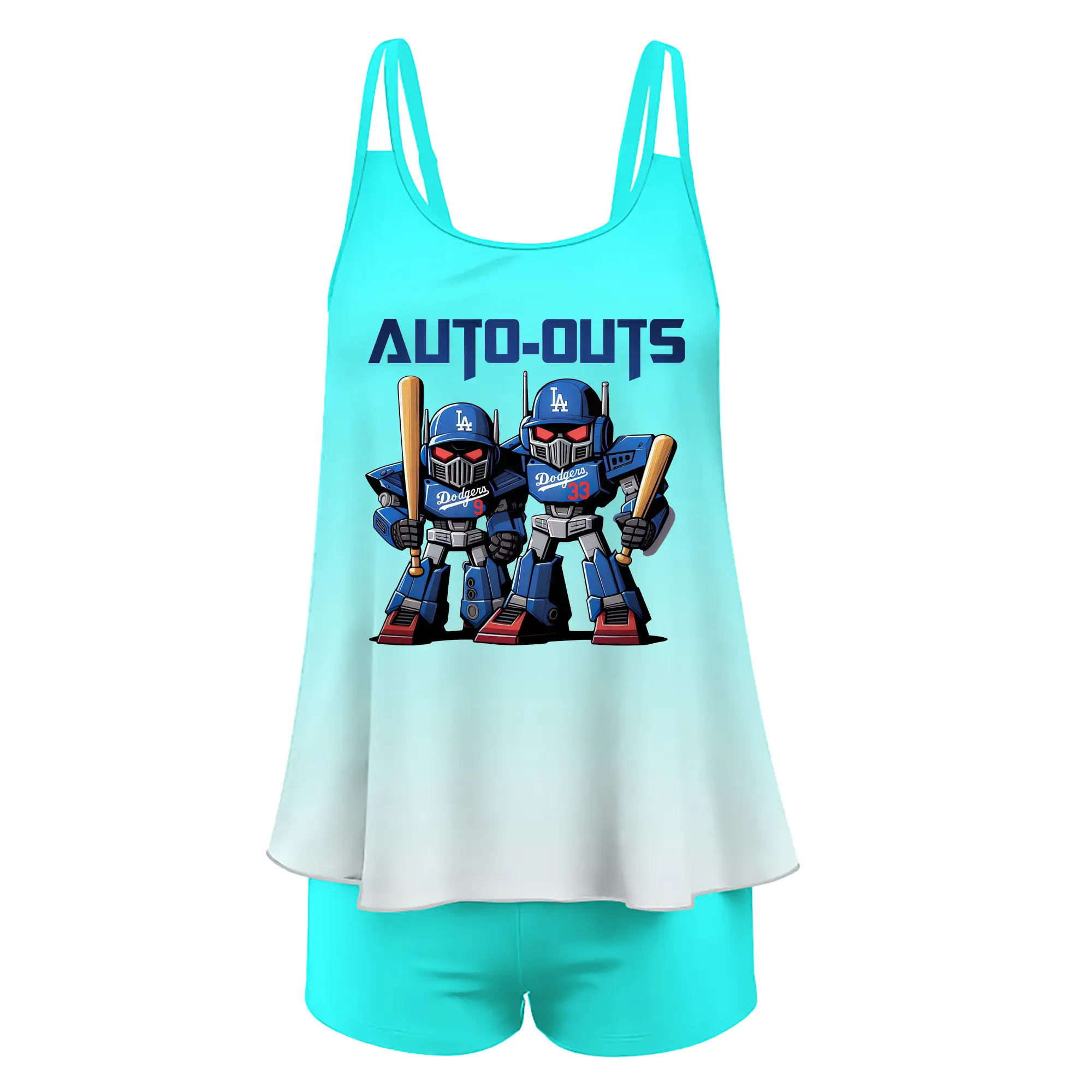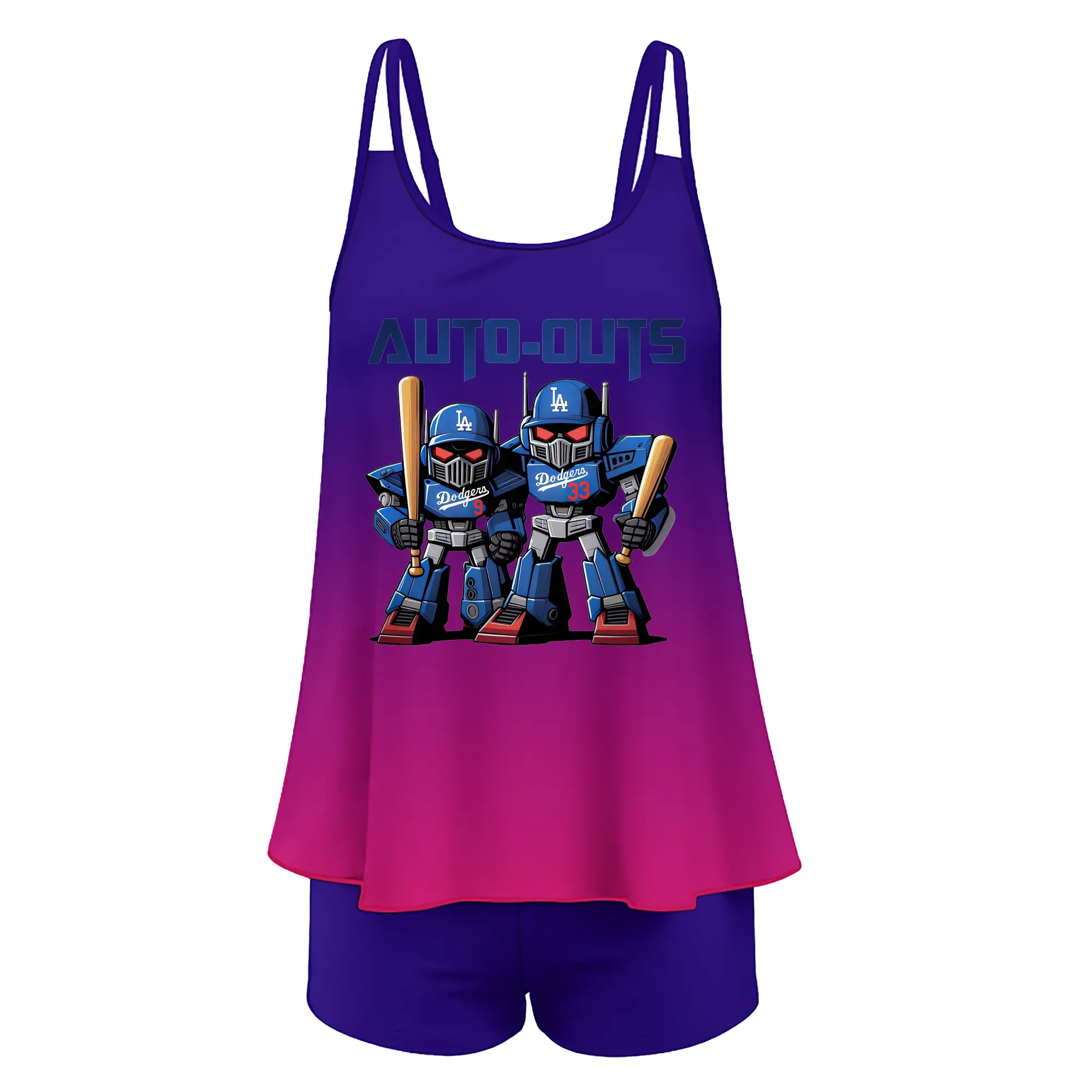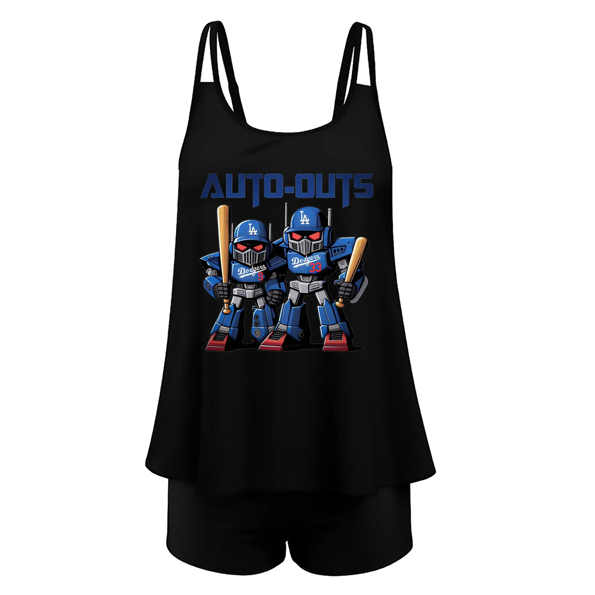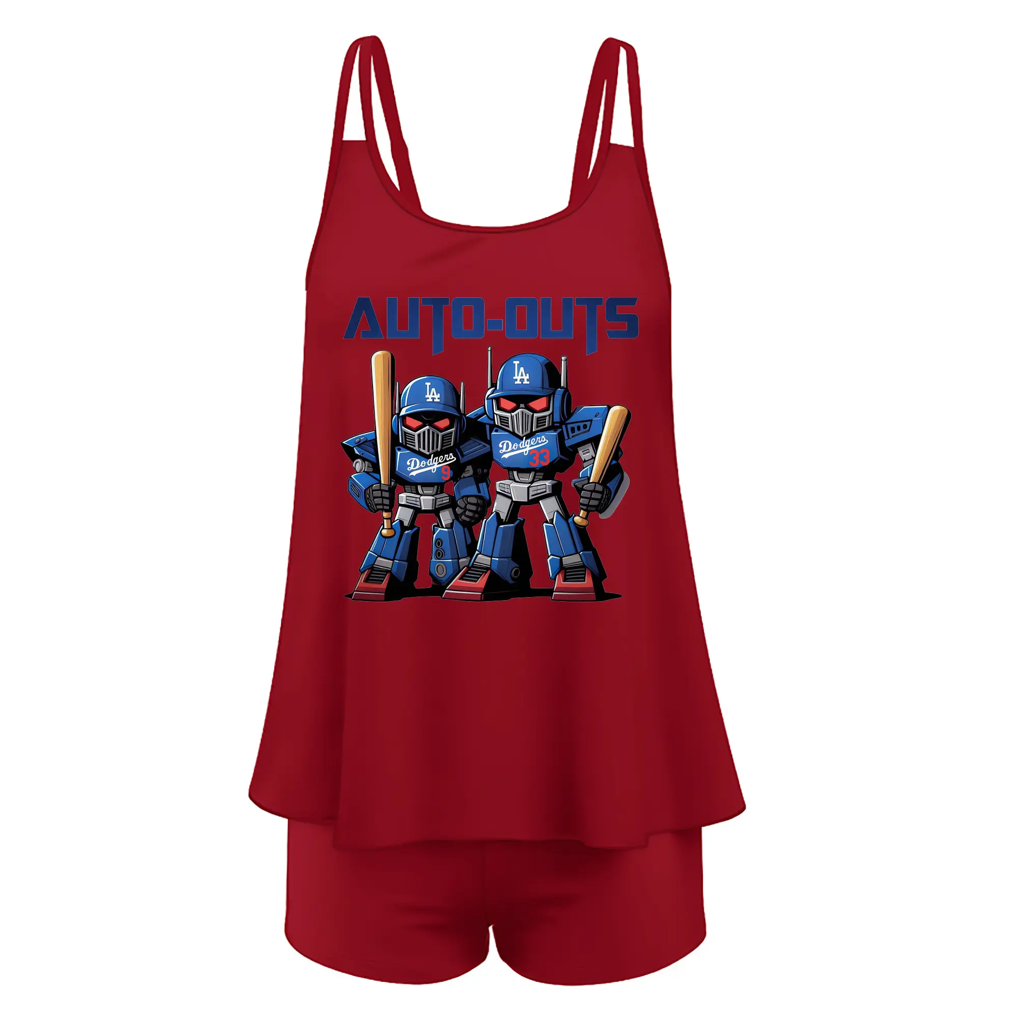 Los Angeles Dodgers Baseball Auto Outs - Women’s Heat Transfer Printed Two-Piece Swimsuit Set – Sexy Double Strap Bandeau Top & Boyshort Bottoms, Soft Nylon-Spandex – Perfect for Beach, Pool & Vacation
